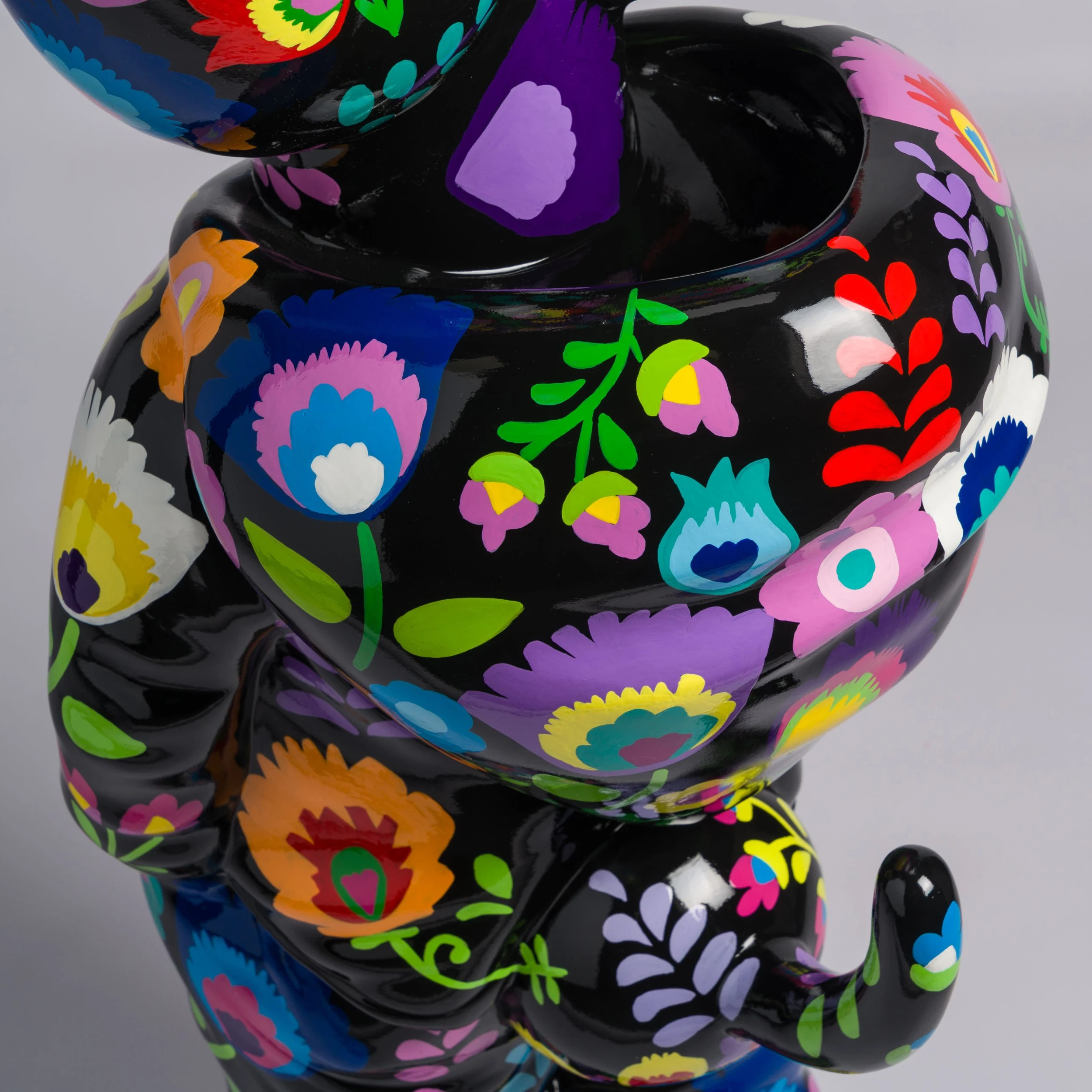 A bold and bright commentary on modern life and pop culture, this sculpture by elusive artist Whatshisname is the perfect addition to add a pop of colour to any space. In this piece, the artist has intertwined his traditional Polish style, heaped in tradition, with his modernist take of social culture, creating this beautiful statement sculpture. The world of traditional Polish crafts, with strong ties to traditional folk life and culturally meaningful, combines striking floral designs, delicate patterns, and symbolic imagery. The flower pattern in this piece is a symbol of the artist’s Polish heritage.