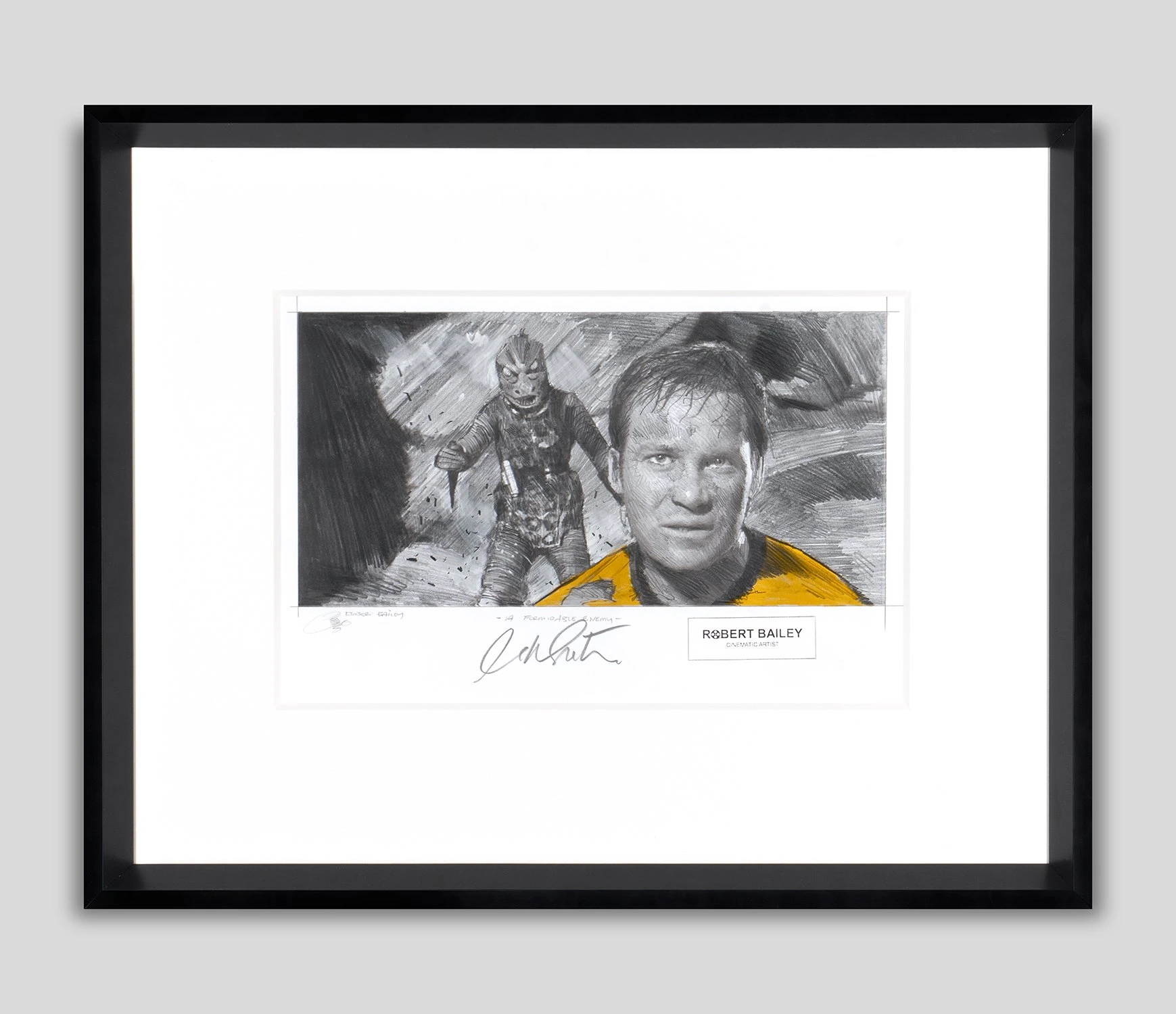 Hand-signed by William Shatner himself, who has since been into real space, this original artwork by Robert Bailey will add a touch of space-age magic into your home through a bold and bright colour palette and bespoke black wooden frame. View our full Robert Bailey portfolio .