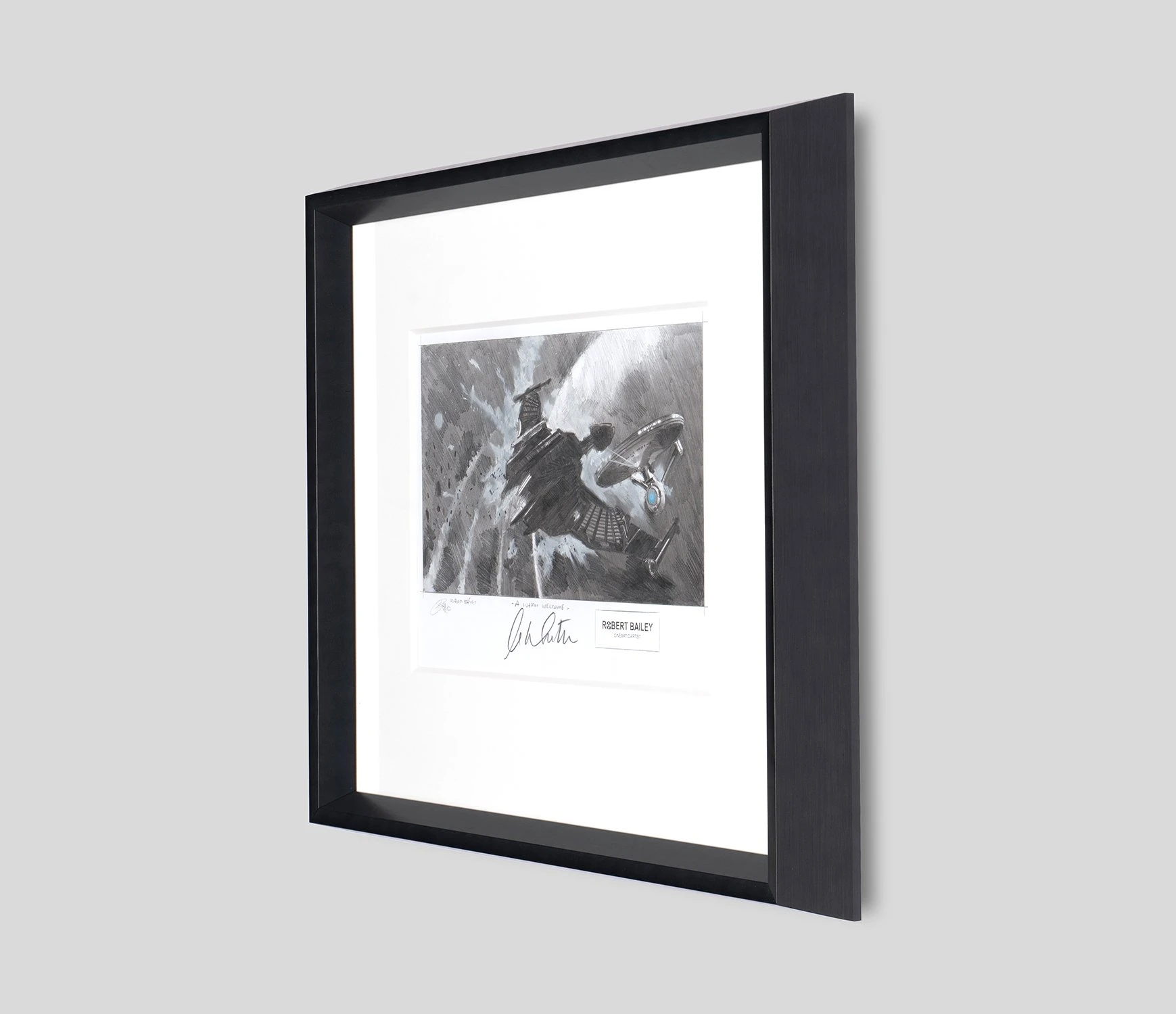 Hand-signed by William Shatner himself, who has since been into real space, this original artwork by Robert Bailey will add a touch of space-age magic into your home through a bold and bright colour palette and bespoke black wooden frame. View our full Robert Bailey portfolio .
