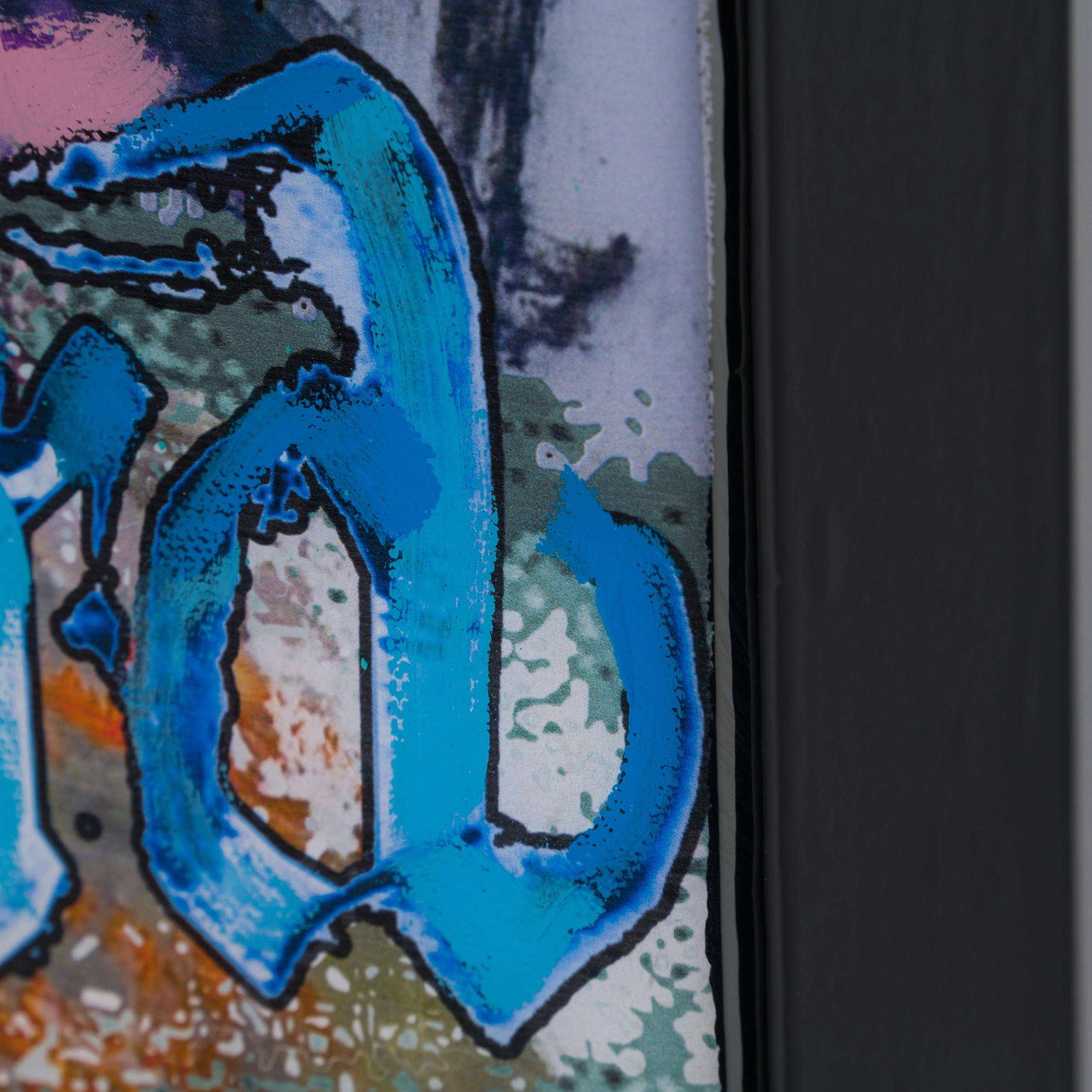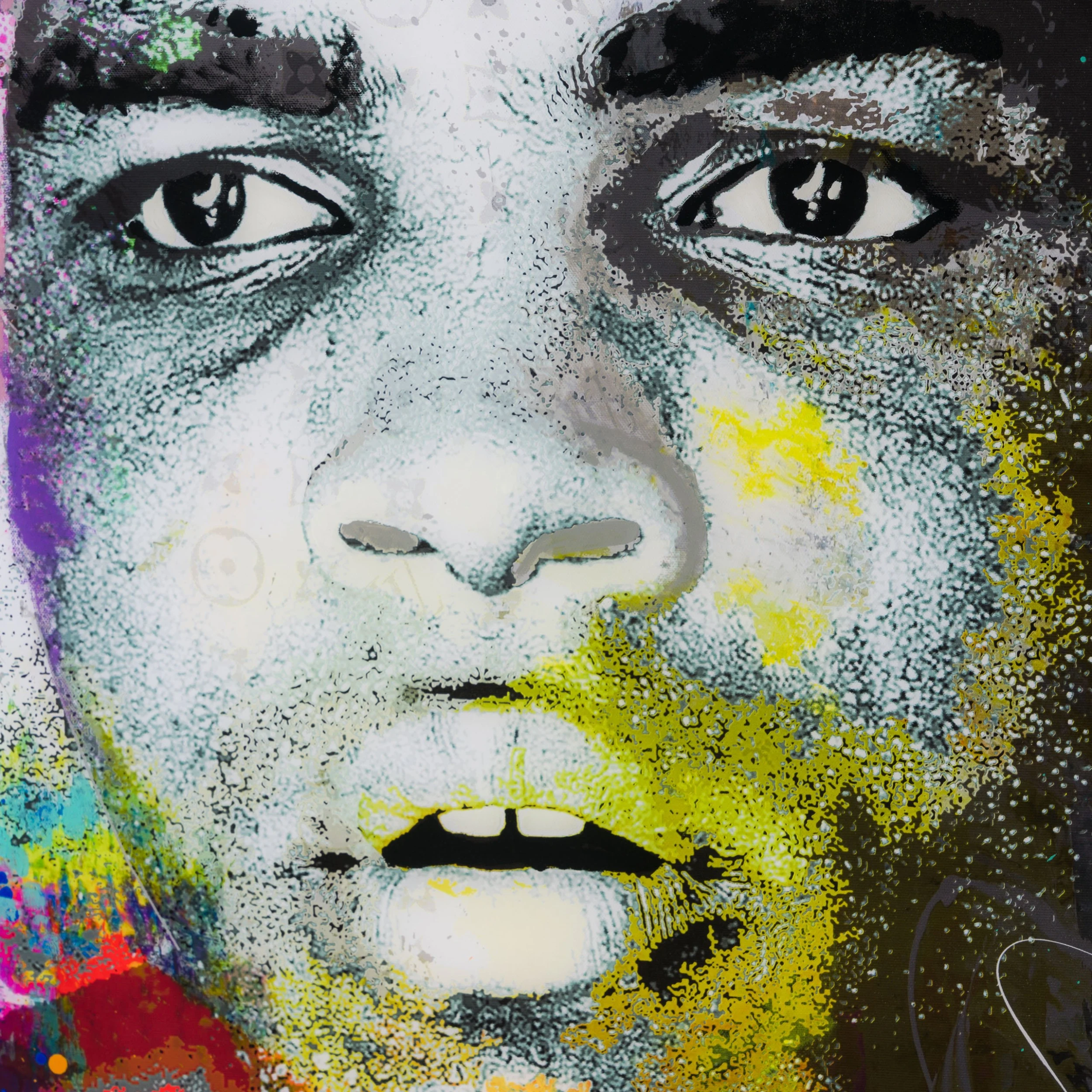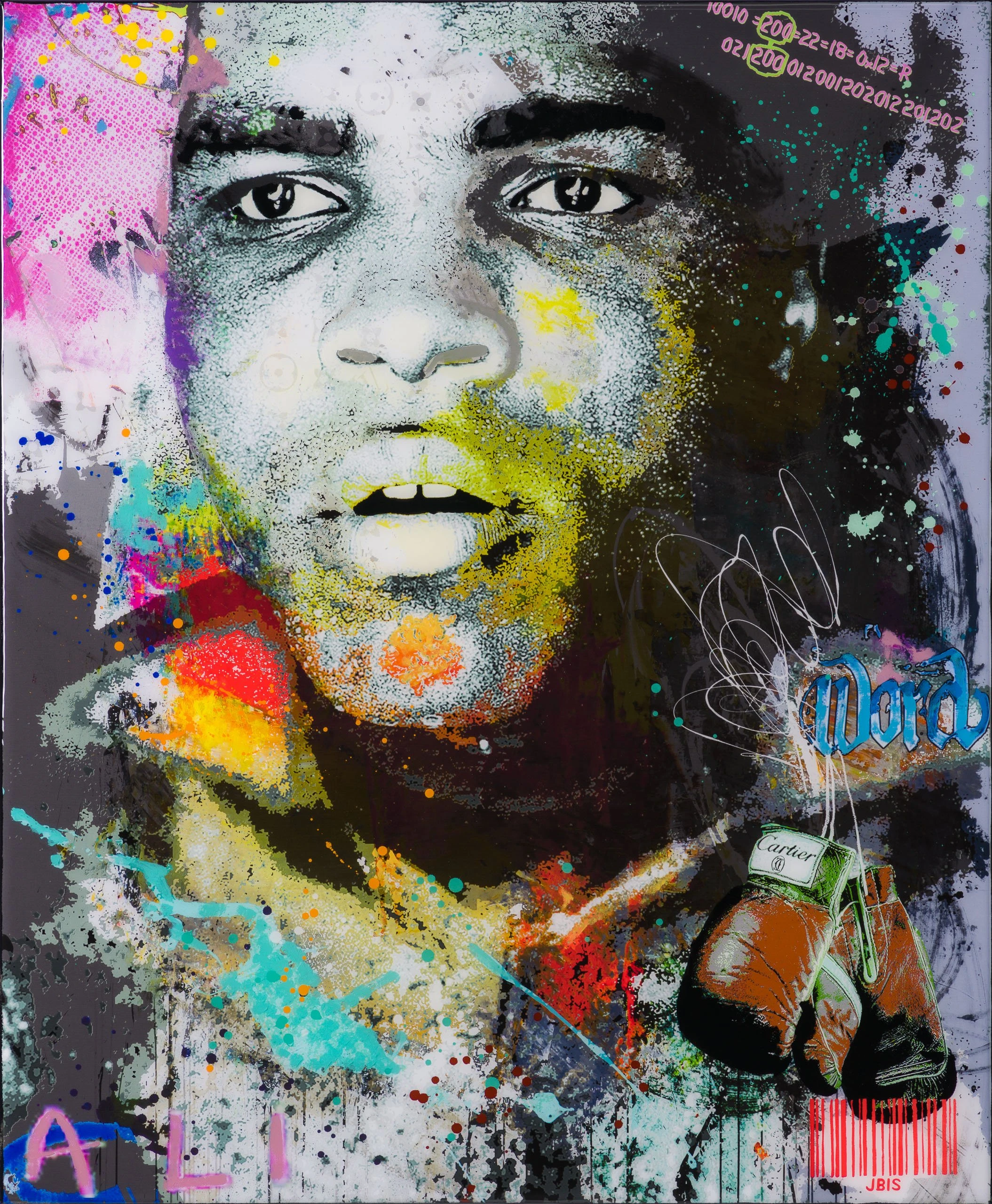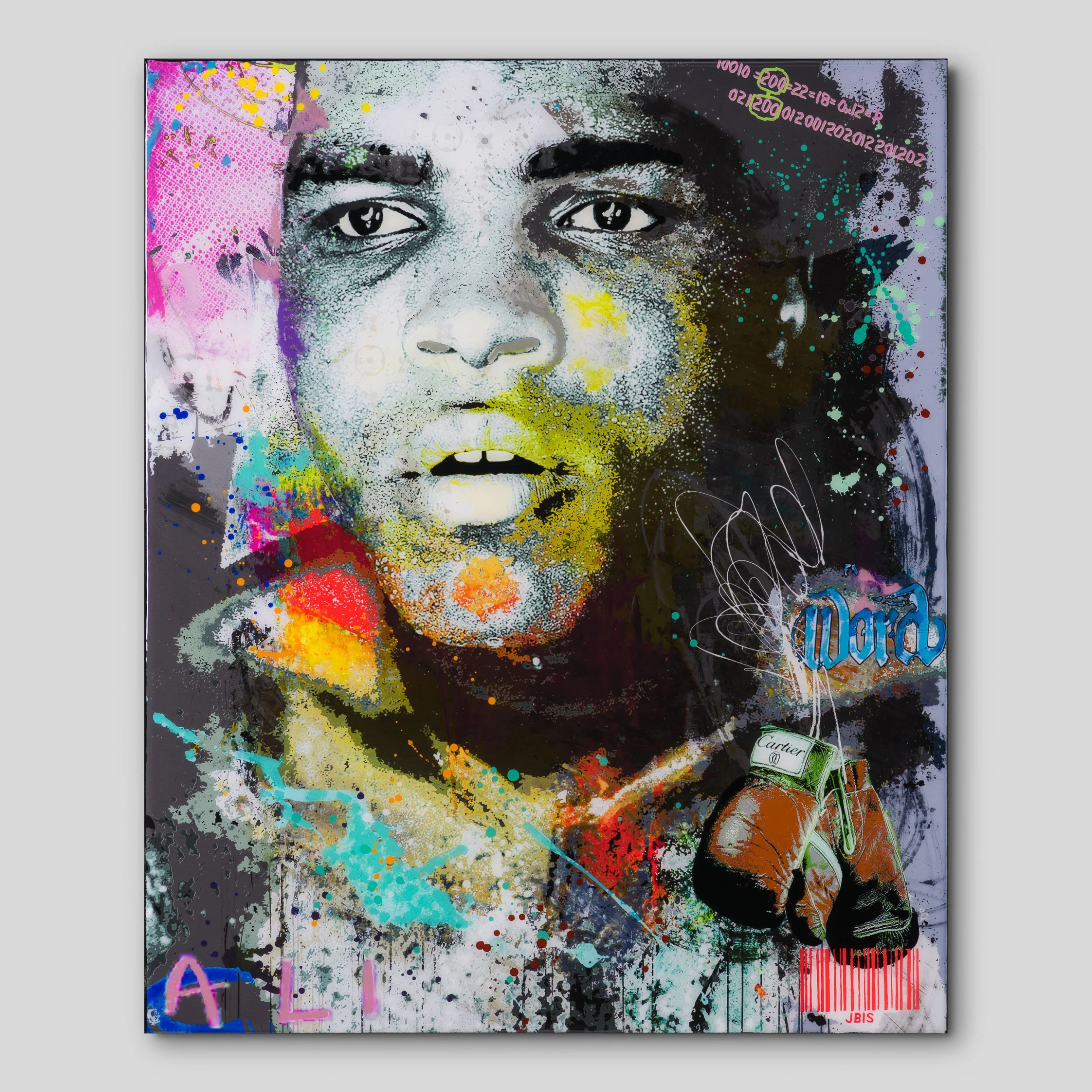 Epitomising the Bisaillon Brothers’ interest in mid-20th century pop culture and 21st century technology, this artwork sees the duo combine their techniques and philosophies in a vibrant mosaic of different mediums. These include: resin, acrylic paint, graphic design and code; all of which feature in the above original. The latter involves Michael Bisaillon’s own trinary code which he applies as a comment on the conflict between digital and analogue in contemporary society.