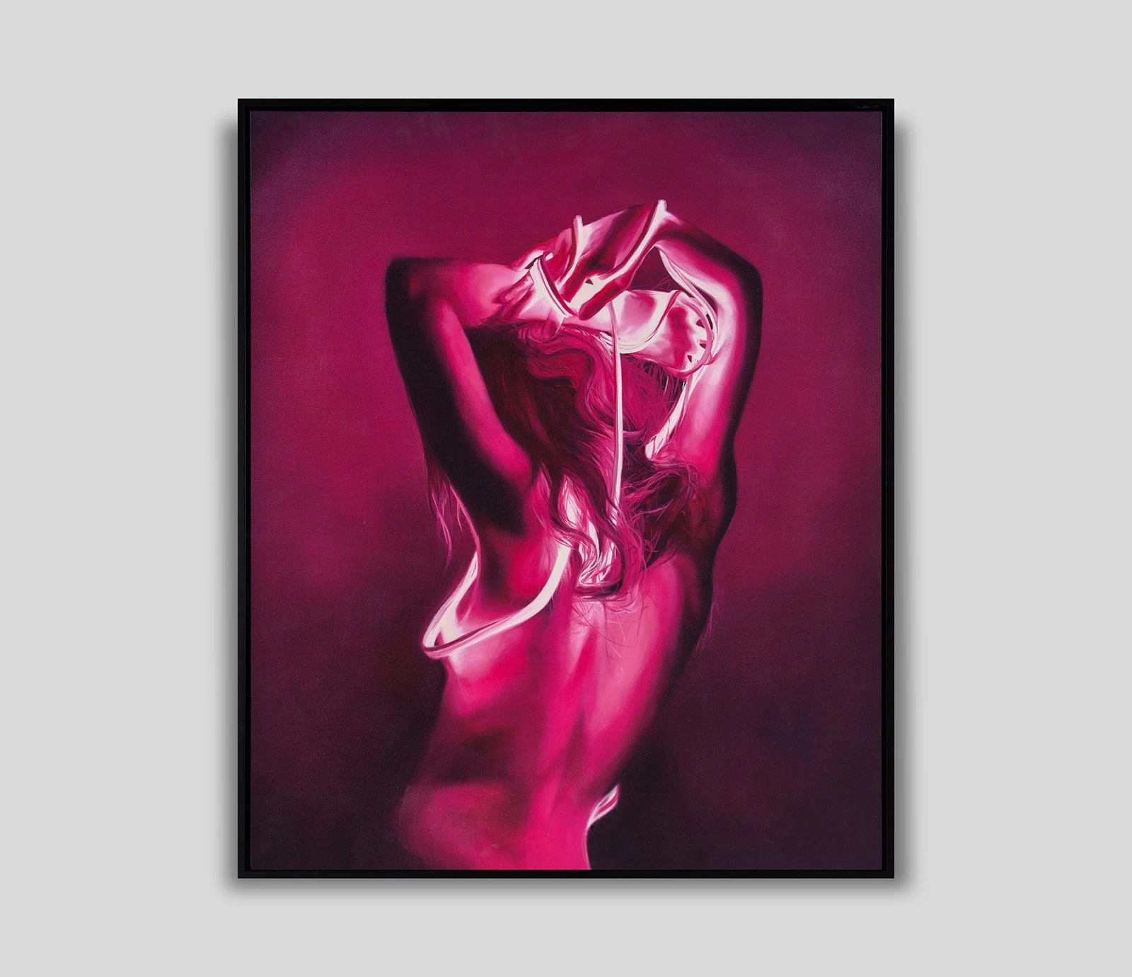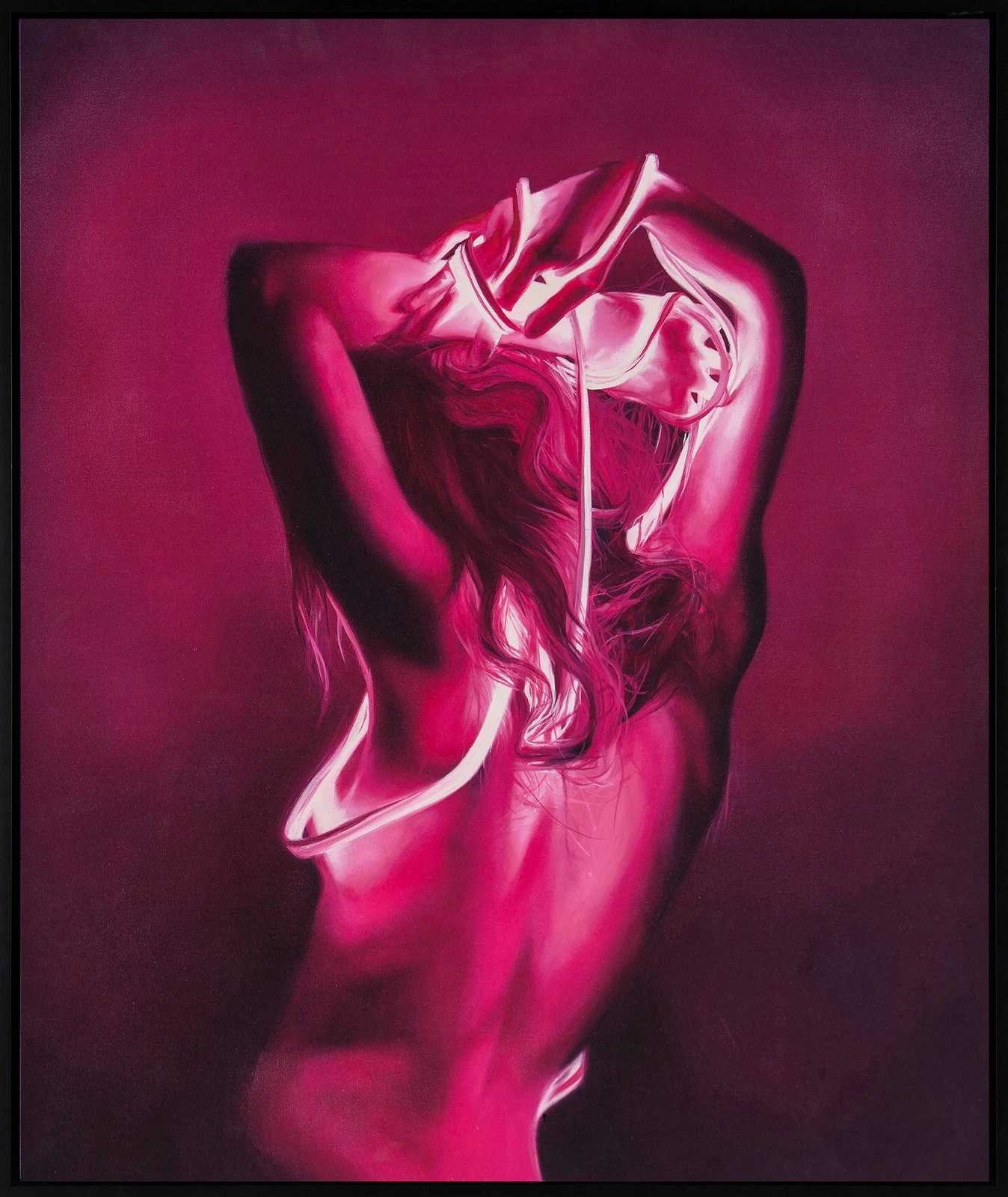 Sharing its name with an elegant Italian musical term, this electric original artwork by Emma-Leone Palmer emerges from her critical Ékstasis collection. Titled after the Greek word for ‘ecstasy’, Ékstasis is defined as a union with the divine or, the experience of an inner god. Connoting feelings of power, independence, passion and peace, this evocative artwork will represent different experiences to every viewer. To the artist, one of the many meanings of this collection is the feeling of listening to music with your friends in the kitchen, ‘somewhere in the singing and dancing you forget yourself and are somewhere in a perfect realm, a rapture.’