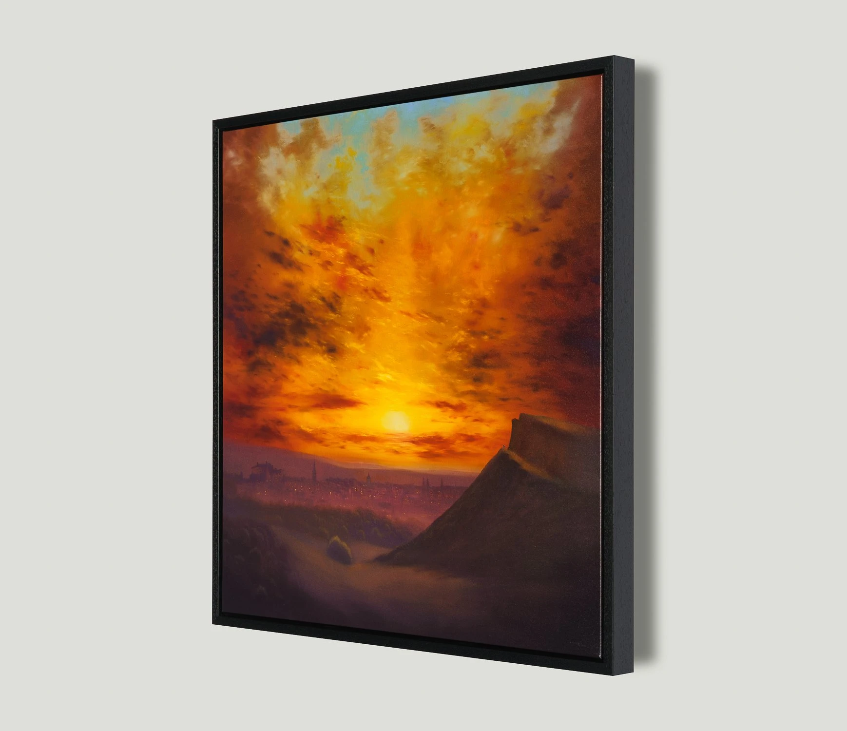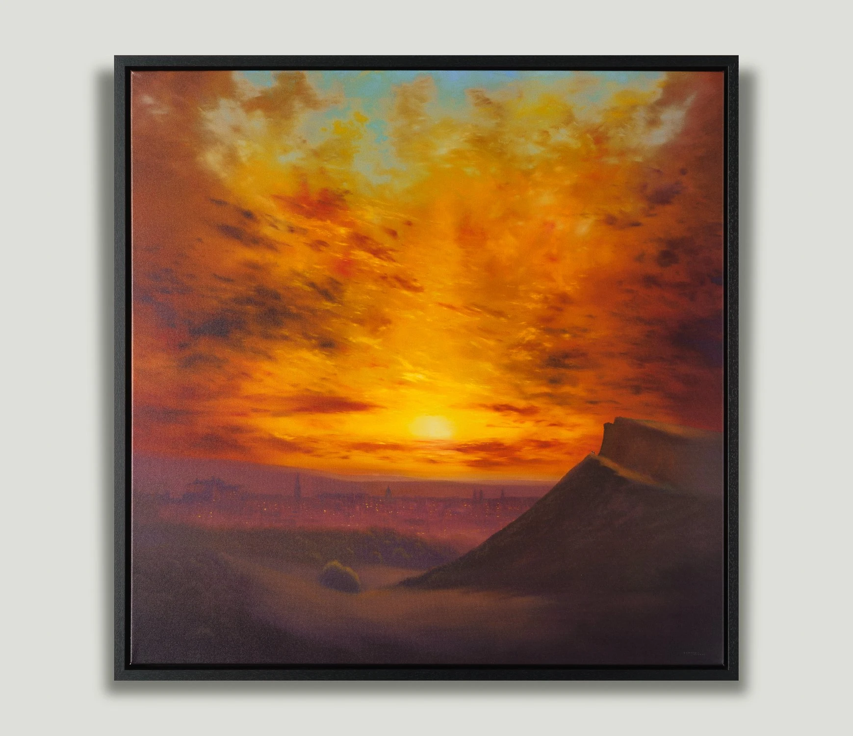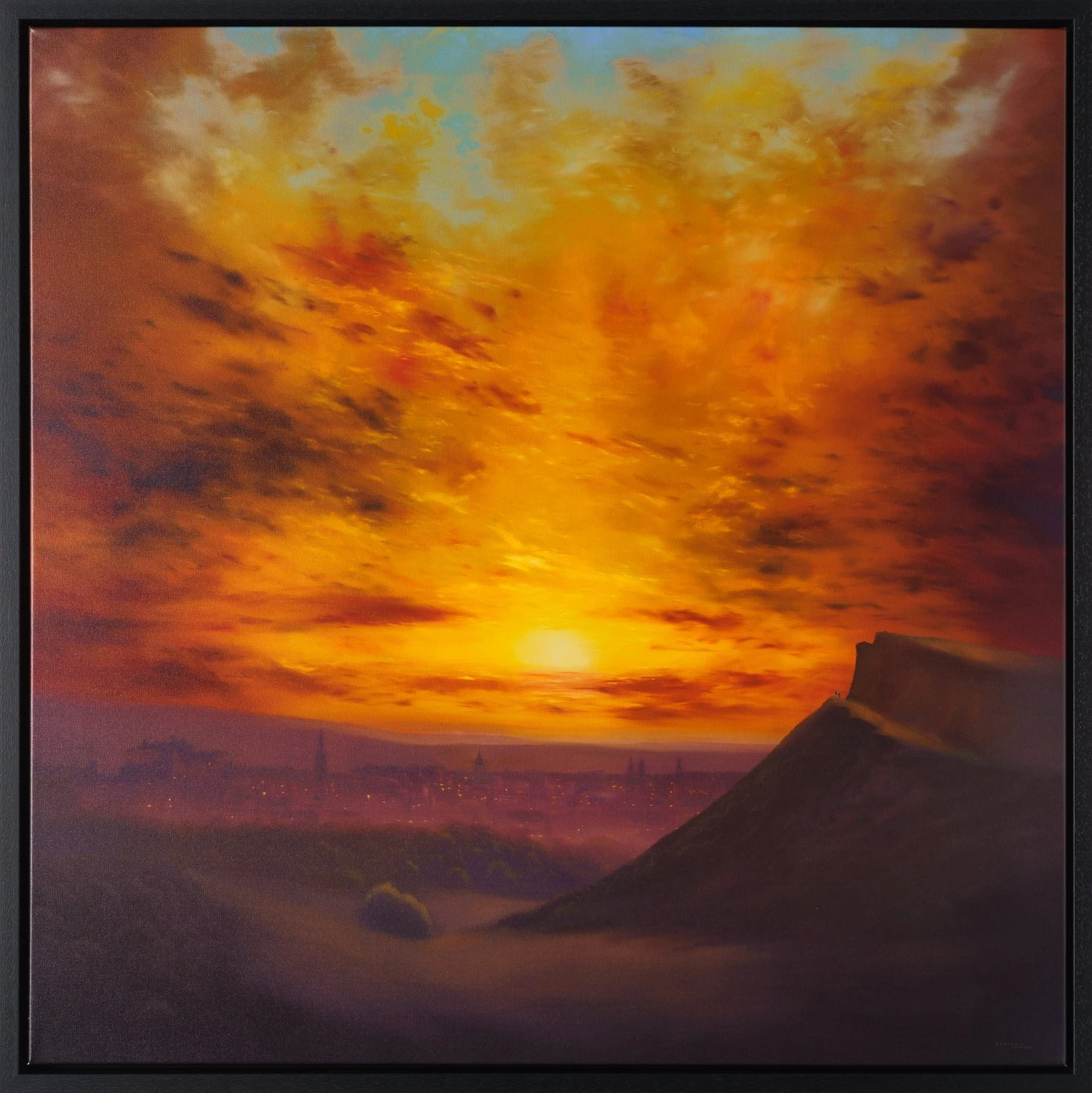 An exciting departure for the artist, this moody yet warming limited edition artwork by Lawrence Coulson captures the iconic view of Edinburgh from the peak of Arthur’s Seat. The ancient volcano has been captured by artists for centuries but Lawrence has transformed the view with his romantic style that sets the sky alight with fiery colours and clouds.