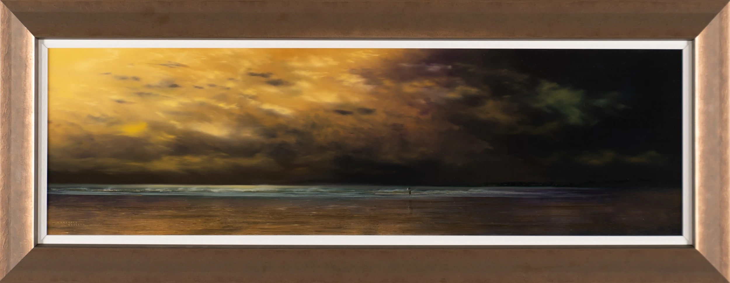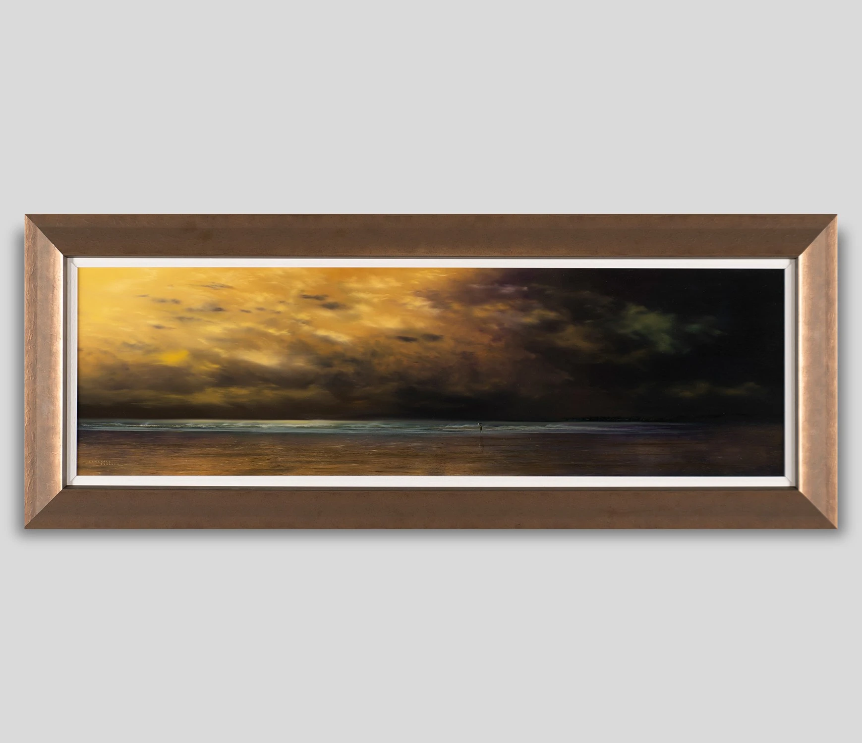 Perfect as a classical touch to any space, this original oil painting showcases Lawrence’s incredible talent and passion for the historical genre of landscape painting. Much like the romanticism landscape artists before him, Lawrence conveys the beauty and power of nature in his moving paintings through traditional materials.Â