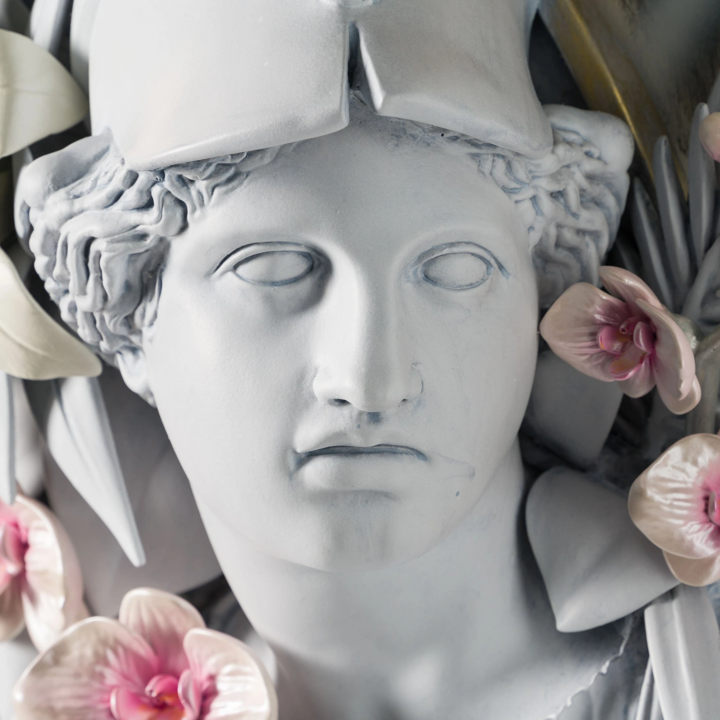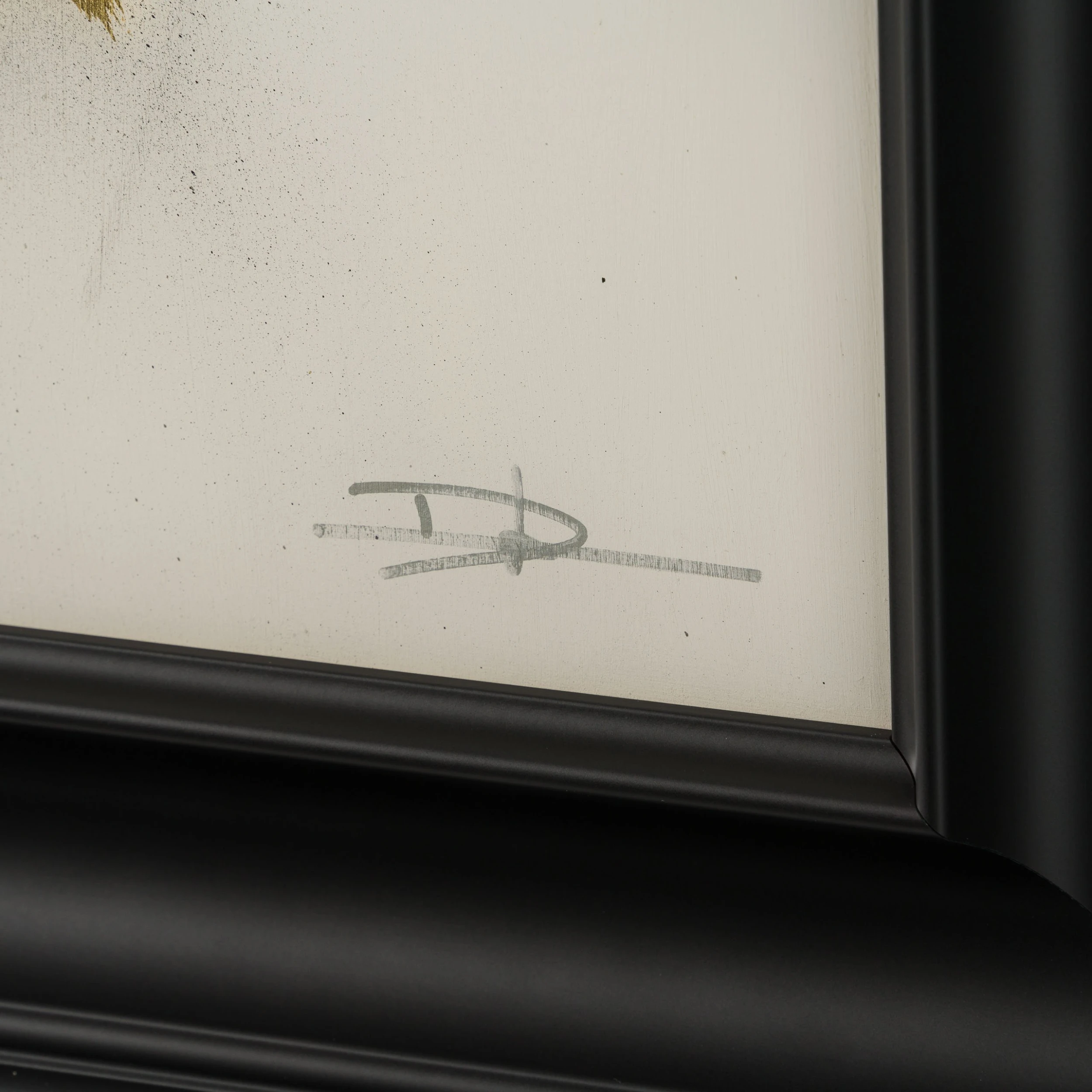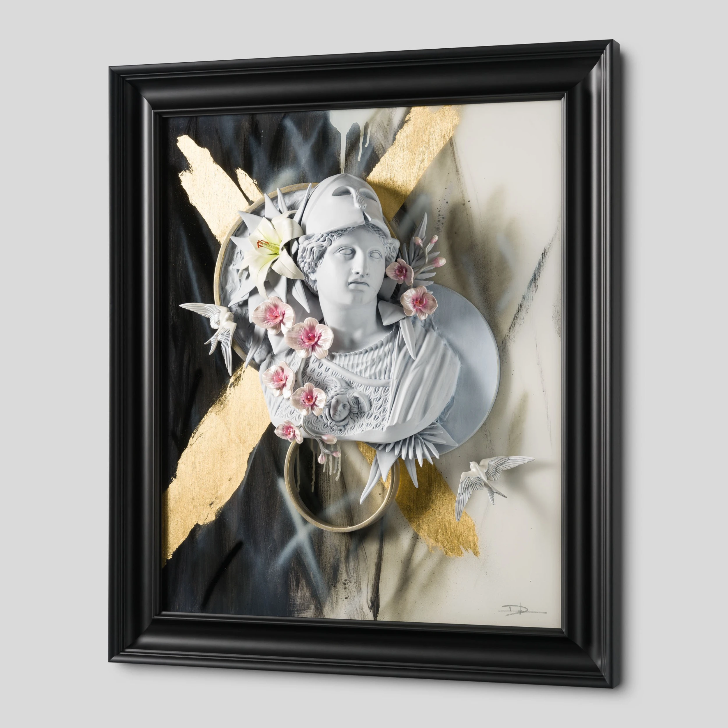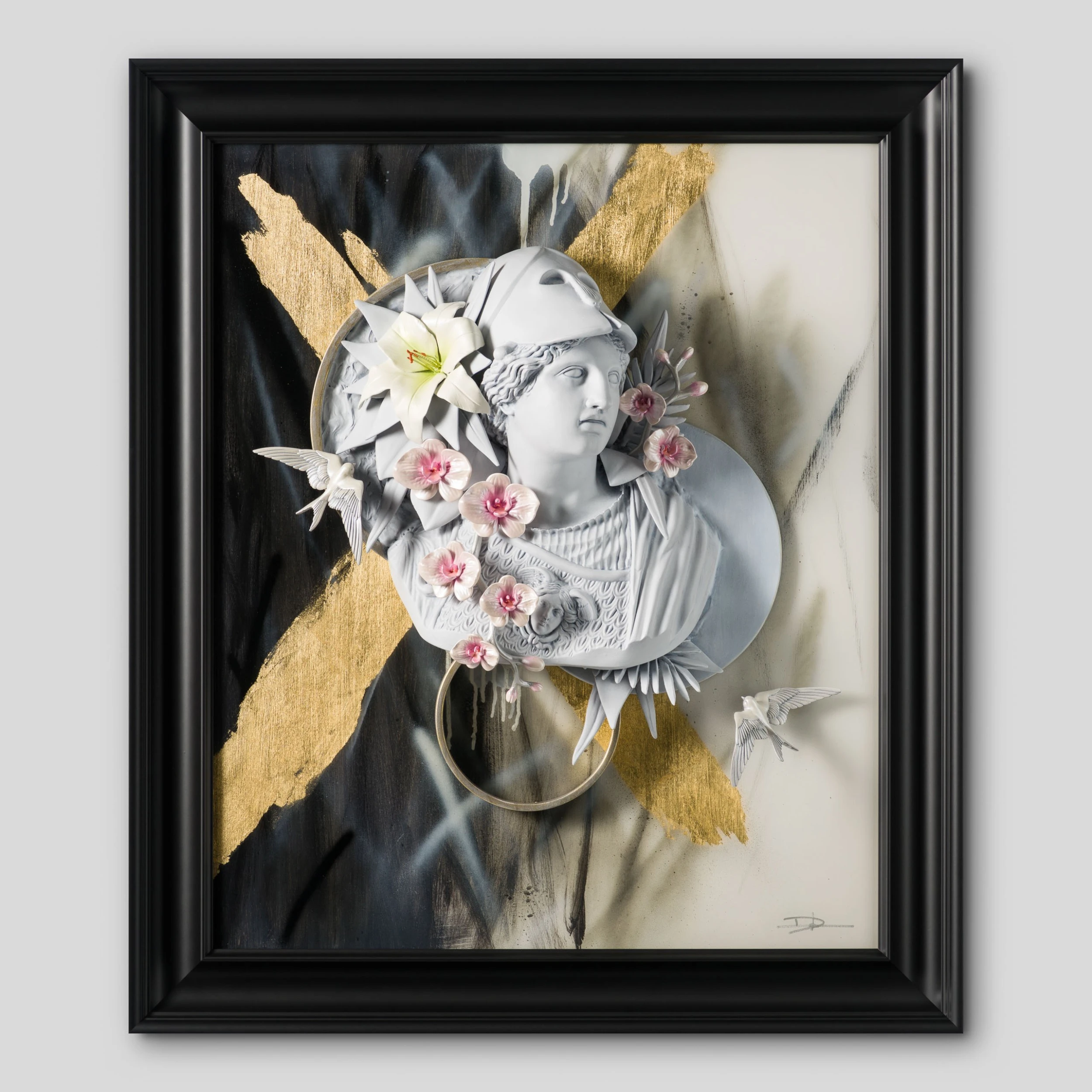 In this bold and luxurious original, Dan Lane revisits some of his beloved themes from his earlier work. In “Athena”, the artist fuses his classical baroque sculpture style and the drama they convey with his own style and its iconic elements. Whilst the piece is bold and dramatic, the title evokes an element of humbleness and simplicity. Named after the goddess of wisdom and military victory from Greek mythology, this original is a statement piece in any room.