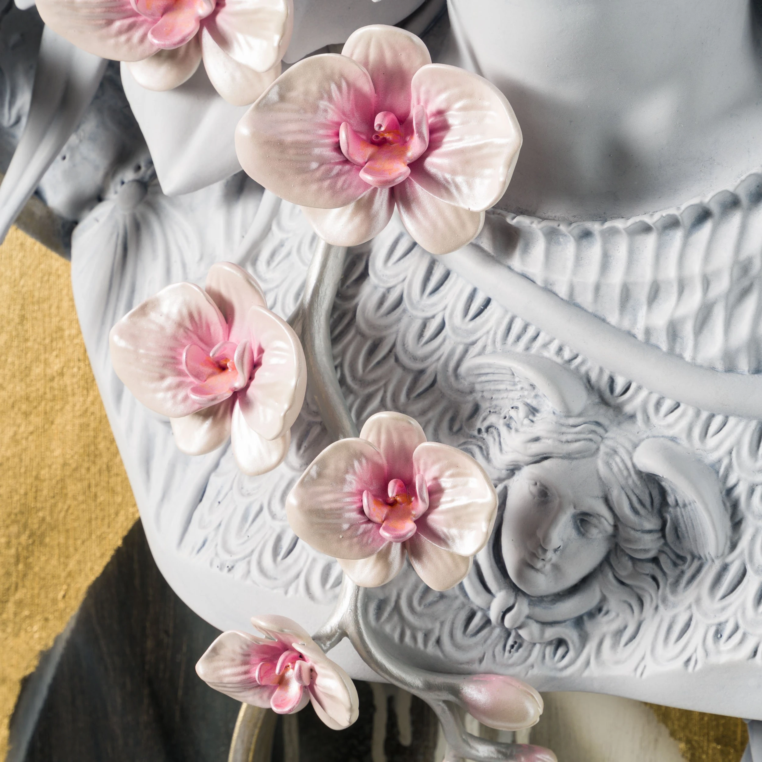 The wall sculpture resembles the portraits of some of the most classical works from Baroque and Renaissance masters whilst featuring the artist most popular symbols – the flowers, the hummingbird and the gold elements.