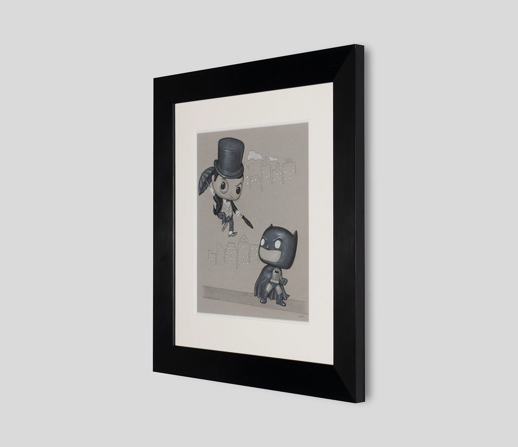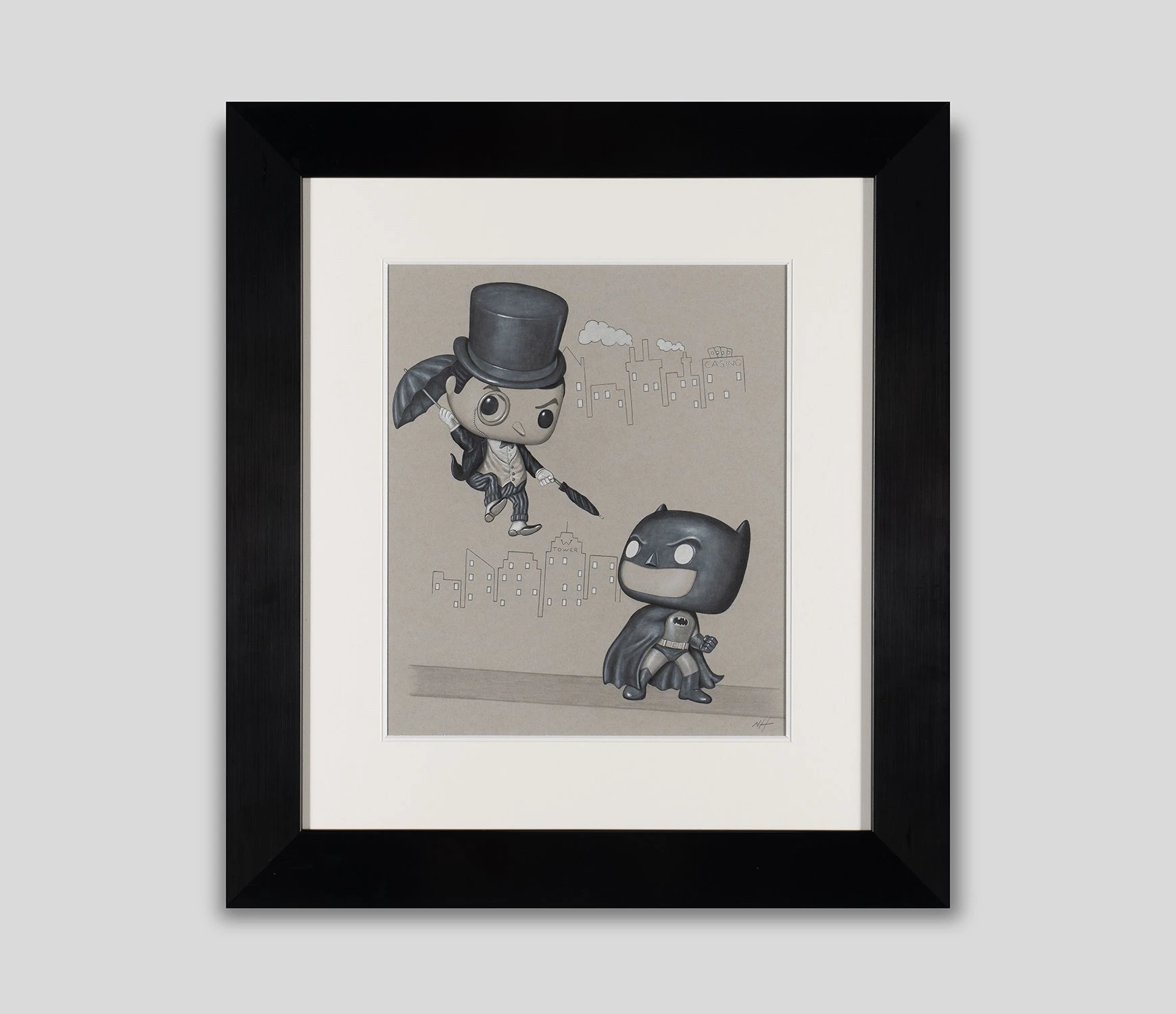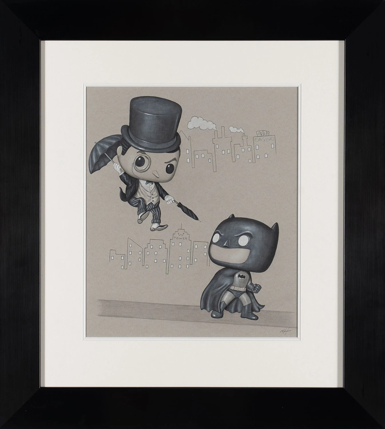 This iconic original artwork forms part of Nigel Humphries 2022 collection The Gotham Suite which sees the successful artist capture characters from the Batman saga across the many adaptations over the years. From the earliest images of Batman in the comics, to some of the saga’s best known character interpretations in film, this unique collection is sure to dazzle and thrill fans and collectors.Â