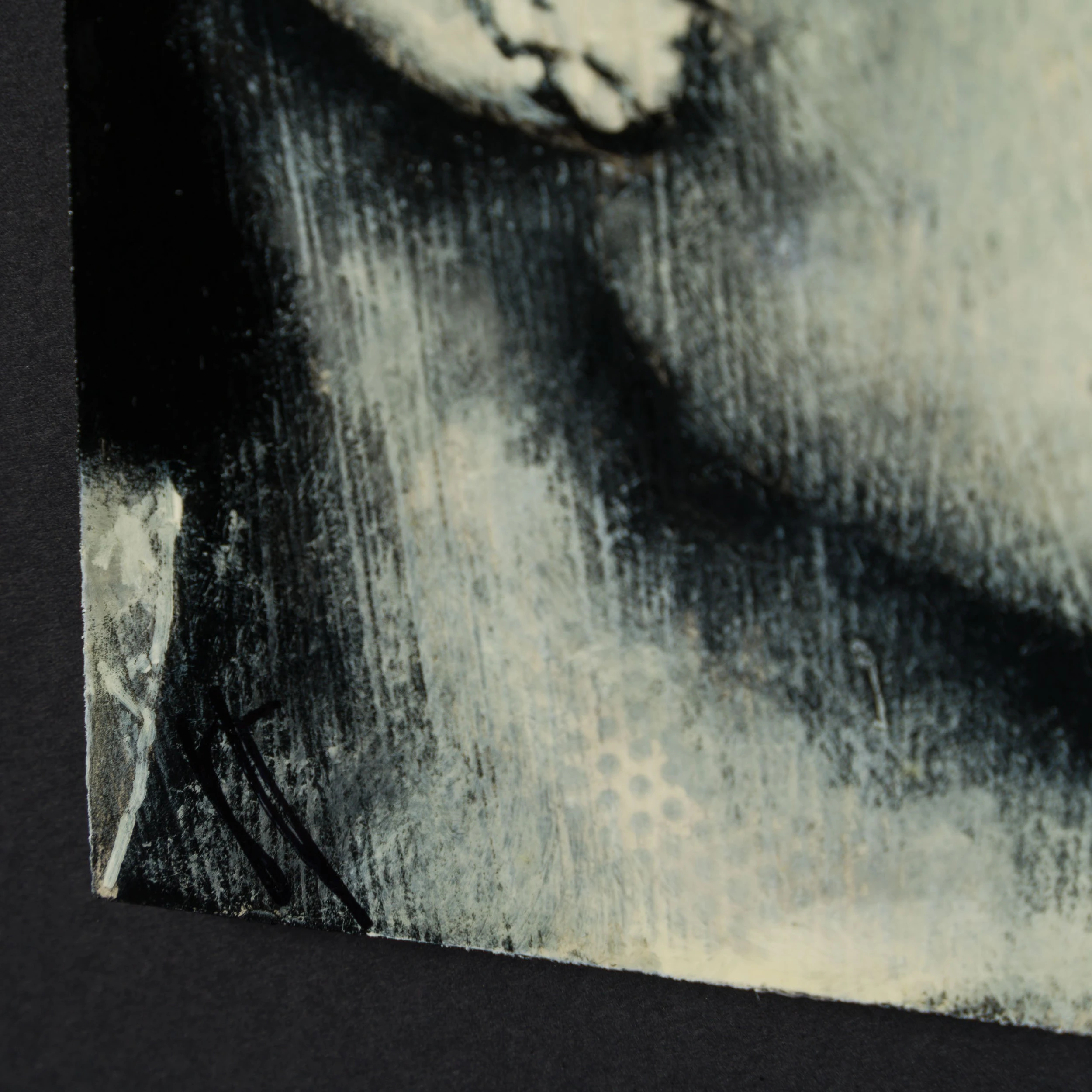 Using conflicting tones of cream white, black and grey to create a highly atmospheric figurative artwork with an essence of realism capturing a monochrome scene. The deep swathes of black paint are skilfully blended and contrasted with white accents to create detailed and moving masterpieces.