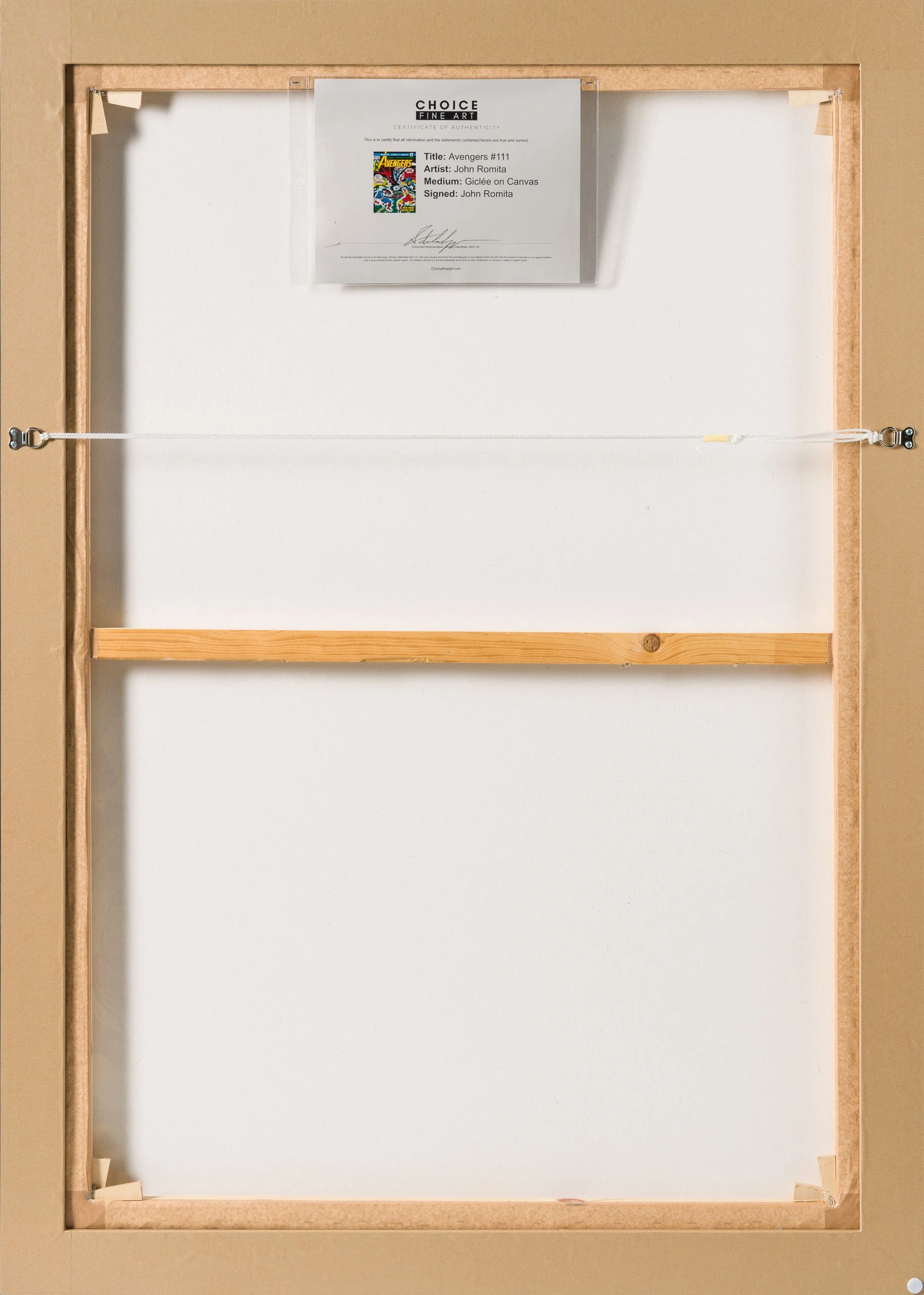 Published in 1973, “Avengers #111” is a Marvel Superhero unique edition of the issue’s cover, hand-signed by John Romita Sr.