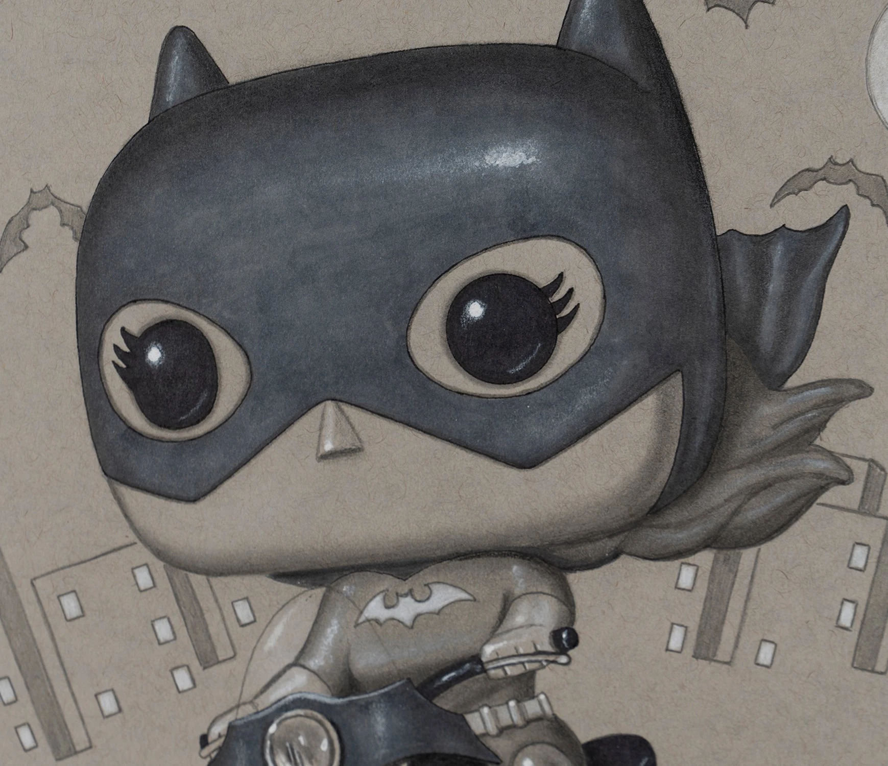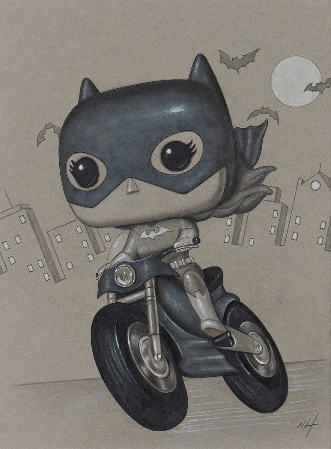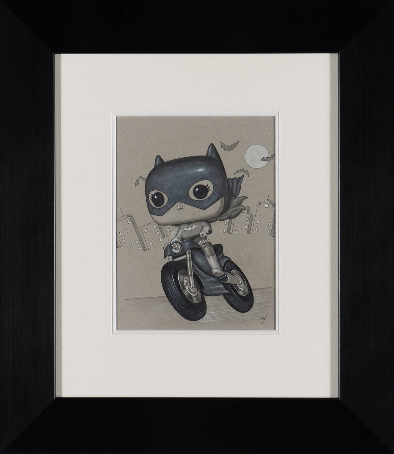 This iconic original artwork forms part of Nigel Humphries 2022 collection The Gotham Suite which sees the successful artist capture characters from the Batman saga across the many adaptations over the years. From the earliest images of Batman in the comics, to some of the saga’s best known character interpretations in film, this unique collection is sure to dazzle and thrill fans and collectors.Â