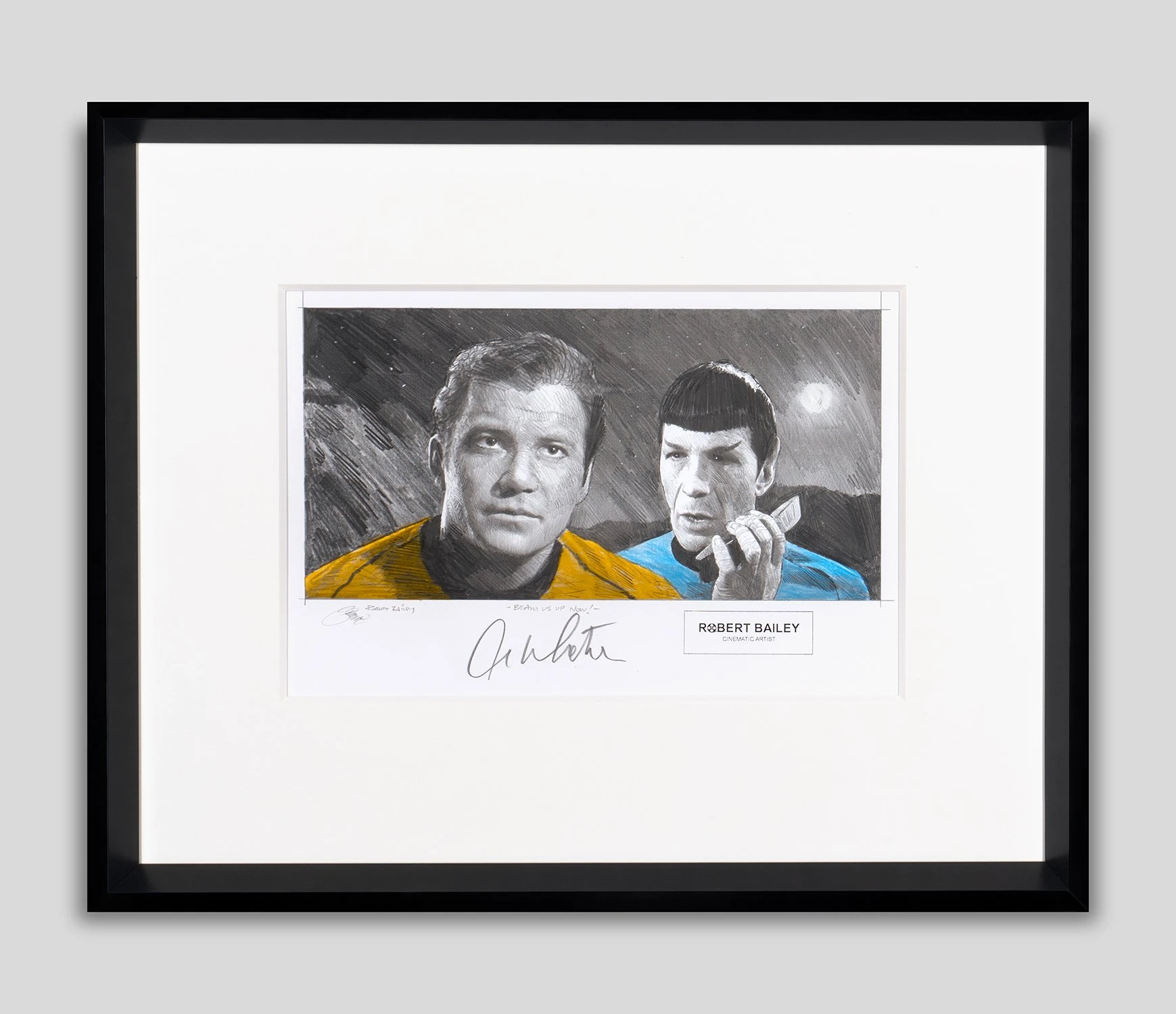 Hand-signed by William Shatner himself, who has since been into real space, this original artwork by Robert Bailey will add a touch of space-age magic into your home through a bold and bright colour palette and bespoke black wooden frame. View our full Robert Bailey portfolio .