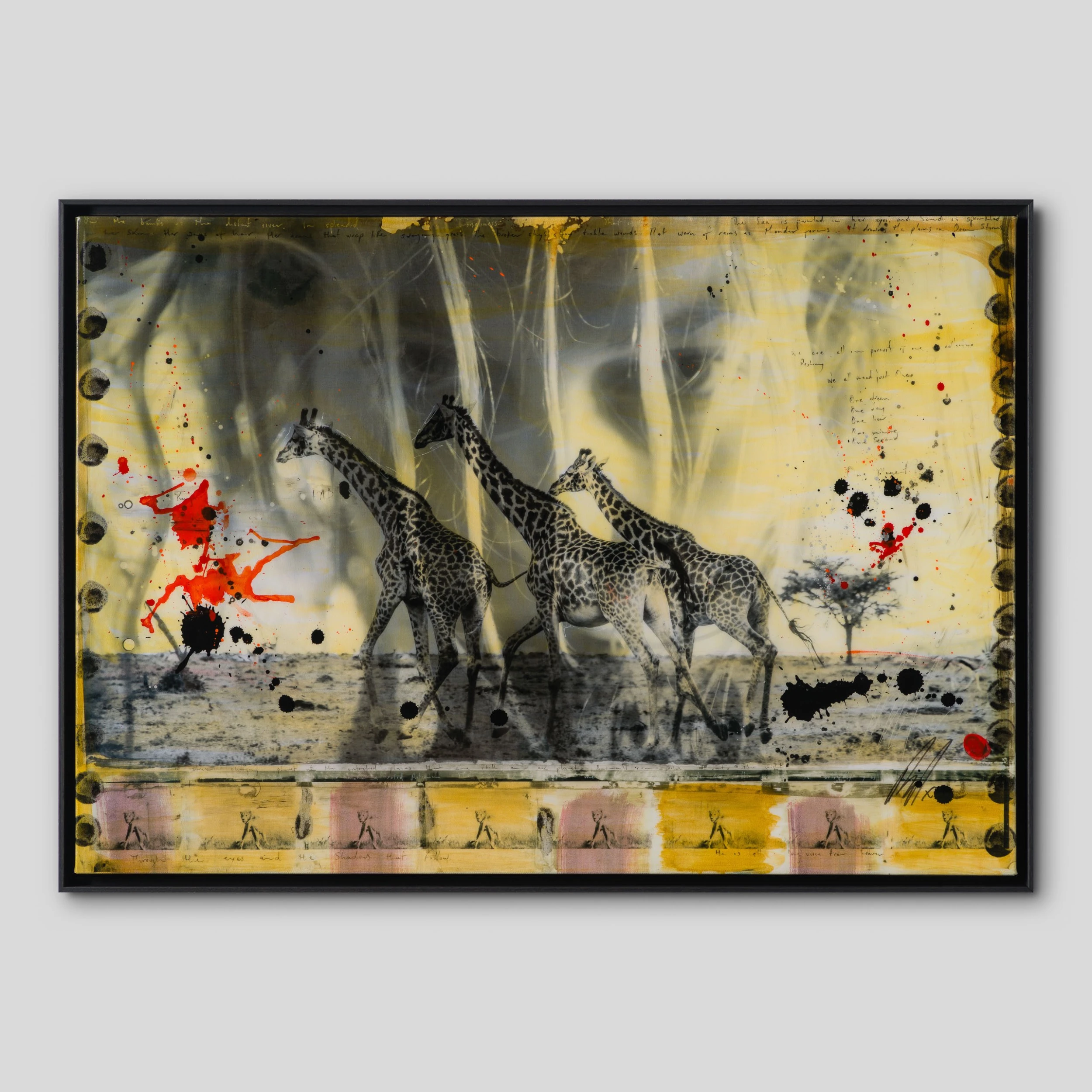Characterised by the juxtaposition between wildlife and cultural photography, this incredible piece forms part of his introspective collection Grass Roots 2023. Using locally sourced pigments and spices to enhance the monochromatic grasslands of The Maasari Mara, Raphael’s internationally acclaimed photography takes on new life in these artworks with organic and indigenous tones and subjects.