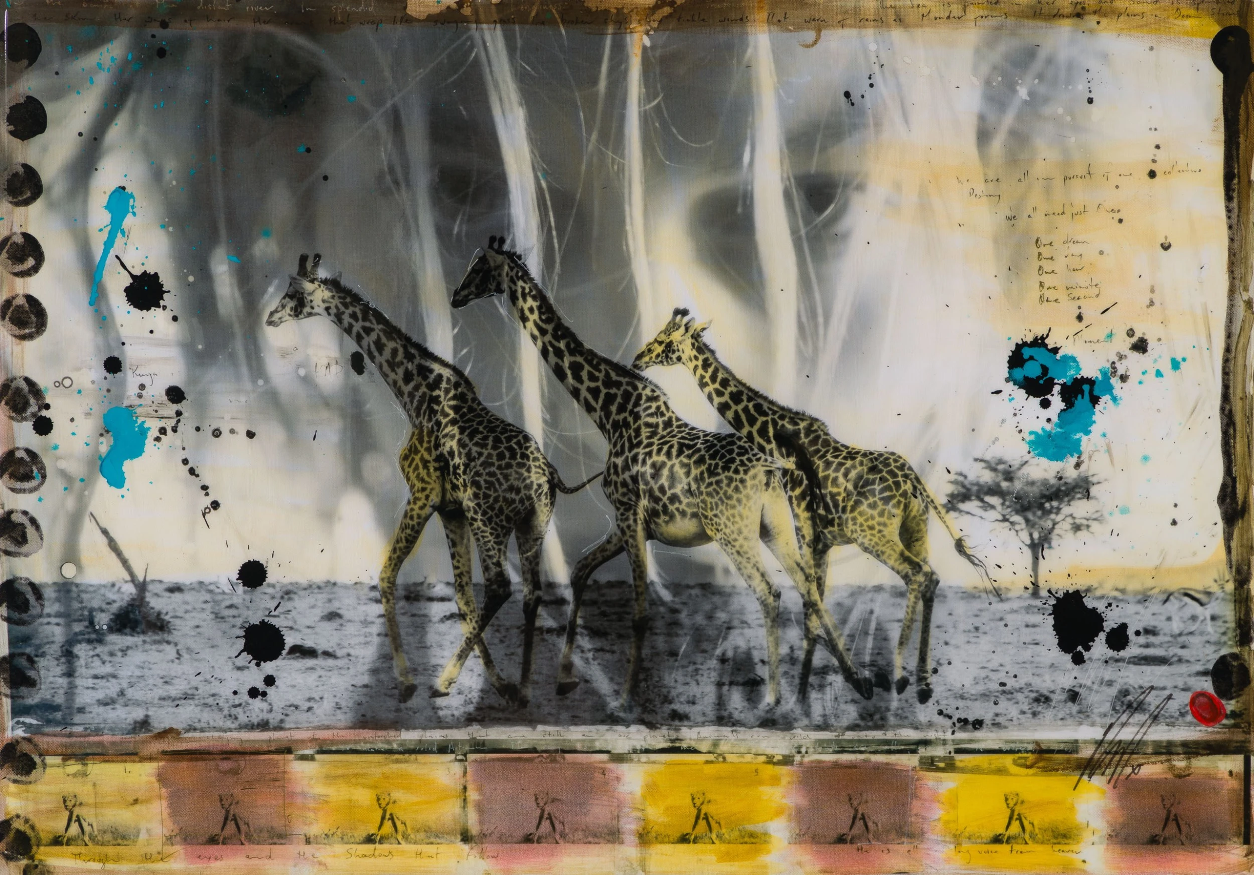 Mazzucco’s visual narrative captures the human form against a backdrop of startling landscapes that span the continents, from Icelandic glaciers to African and Brazilian wildlife. By layering paint, photography, resin and hand-lettered text, the globally acclaimed photographer and sell-out takes viewers on a documentary-style journey through geographic and emotional terrains. “Beauty layered with natural elements has always been my recipe. Nothing we create can compare to the perfect beauty of nature.”