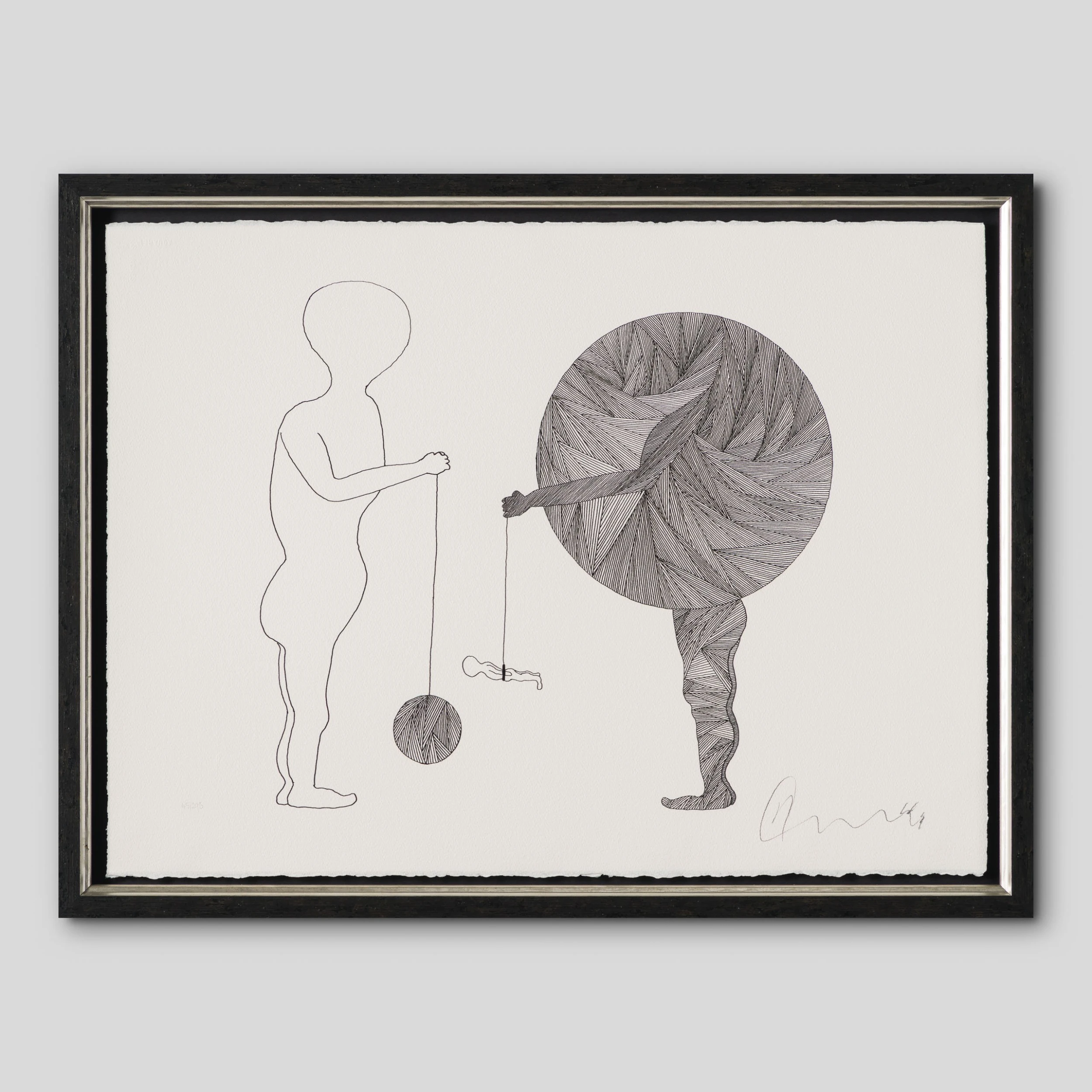 The world-famous musician and comedian’s iconic artworks have no less impact than one of his legendary comedy sketches, with his humour communicated through shapes and lines rather than words. art is charmingly simplistic, his faceless figures possess an extraordinary self-awareness and humanity. Devoid of emotion or expression, their anonymity opens them up to individual interpretation, creating a unique bond with the viewer.