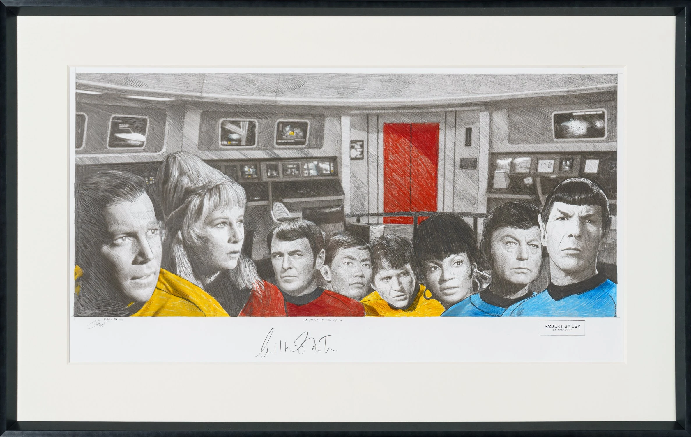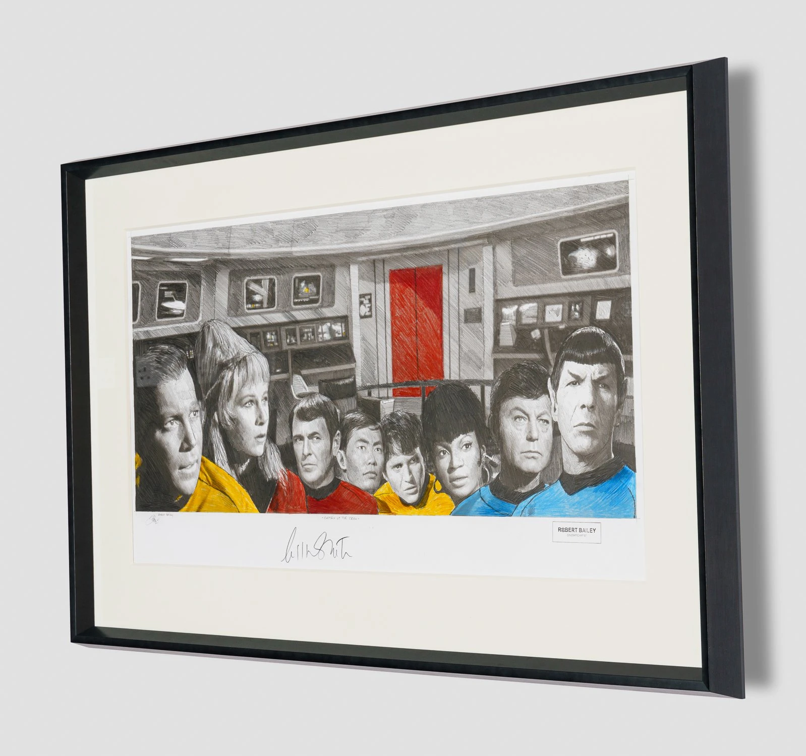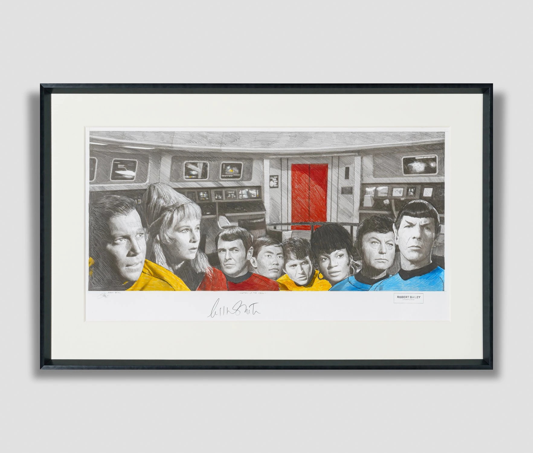 Hand-signed by William Shatner himself, who has since been into real space, this original artwork by Robert Bailey will add a touch of space-age magic into your home through a bold and bright colour palette and bespoke black wooden frame. View our full Robert Bailey portfolio .