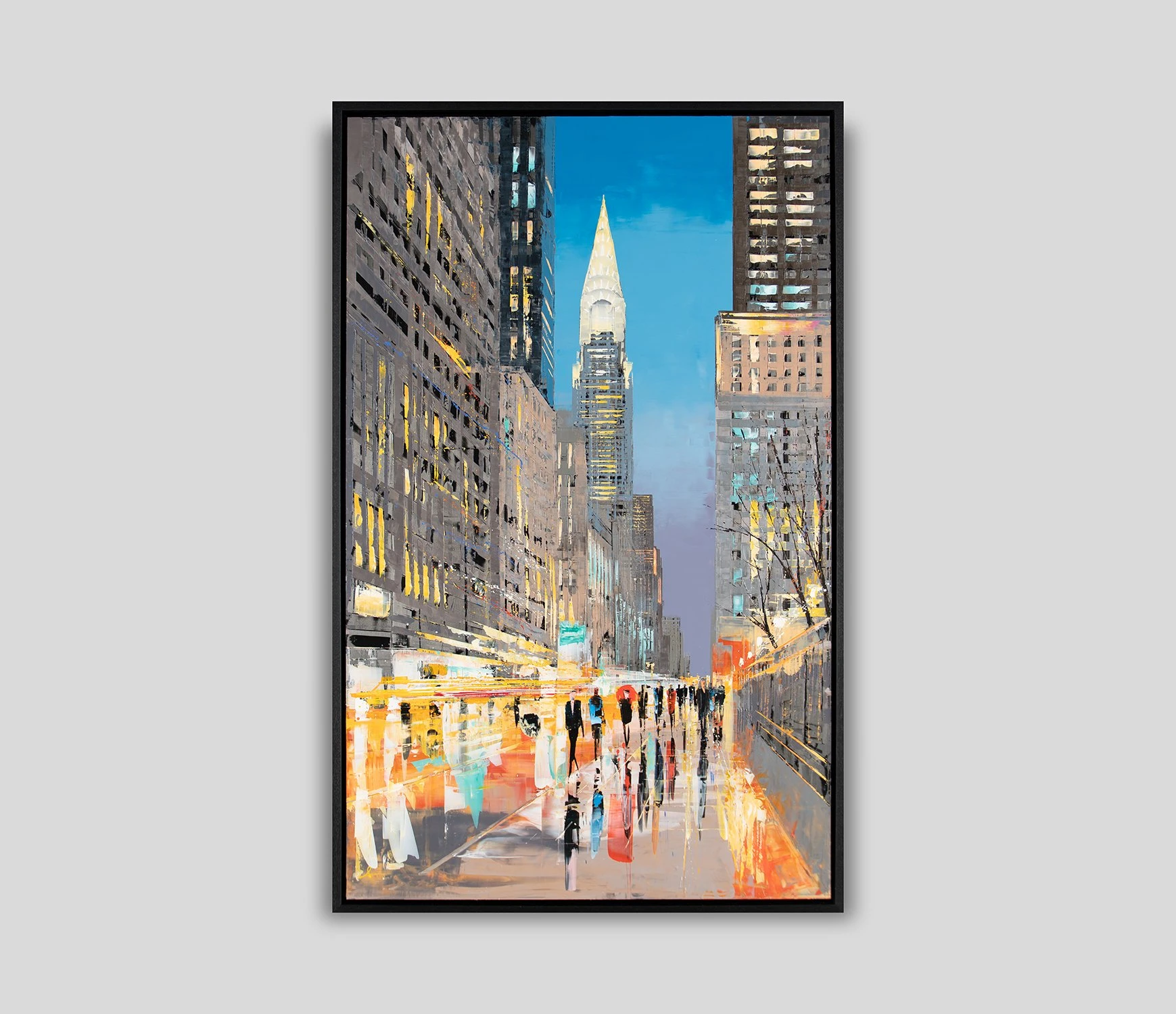 One of New York City’s most iconic buildings and one of the world’s Art Deco masterpieces is captured across a tall sheet of aluminium in this electric original painting by Paul Kenton. Cool tones of blue and bright yellow complement the unconventional texture of aluminium that will also reflect the light in the artwork’s setting. From the brightness of day to more warm and muted tones at dusk, this transformative masterpiece really brings the “Big Apple” to life in your home.