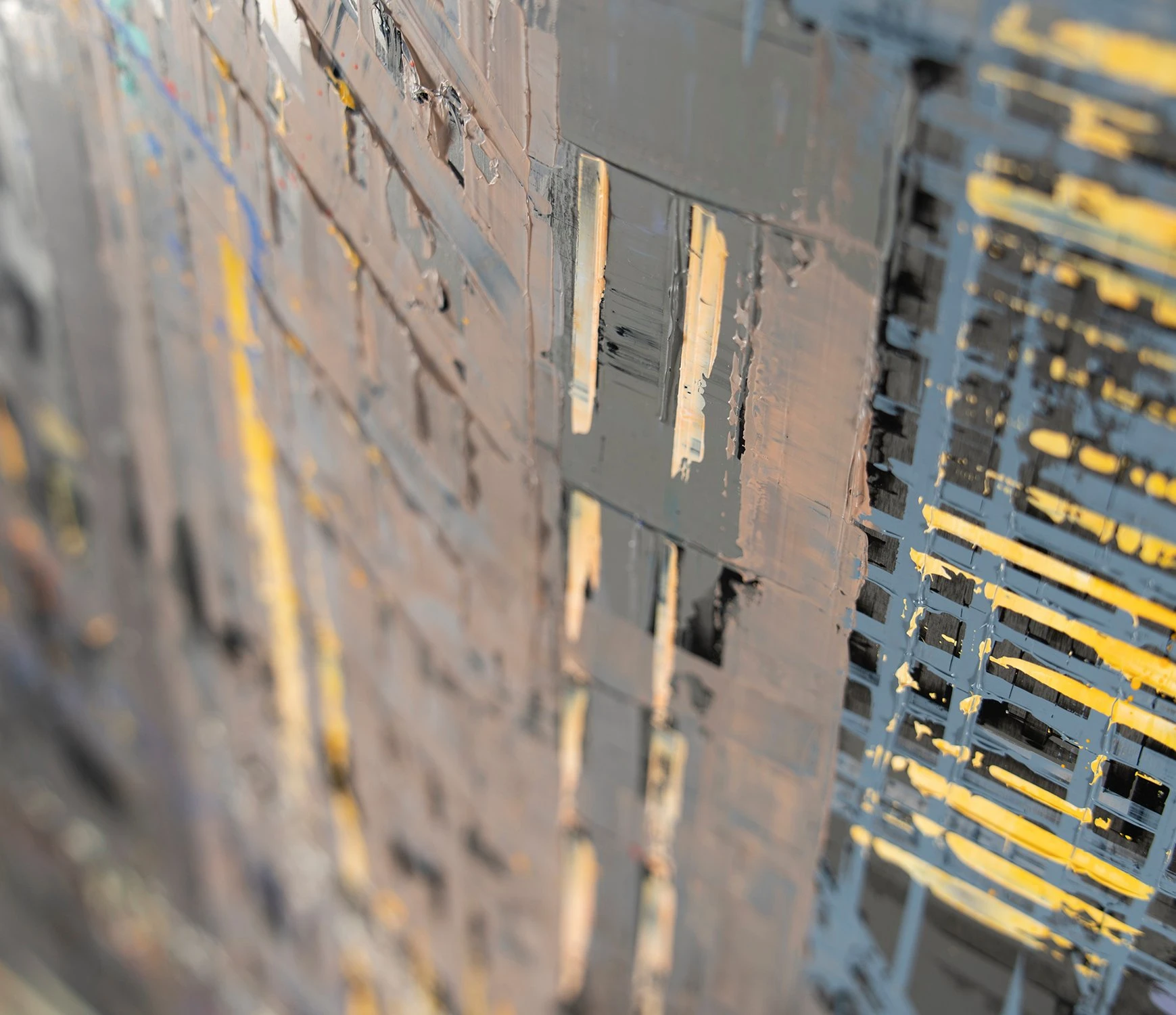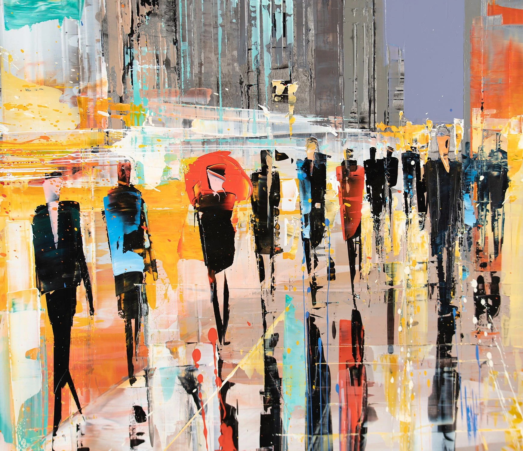 The genre of cityscapes in fine art was made famous by impressionist artists like Claude Monet and Camille Pissarro, although the genre can be traced back as early as the Middle Ages. Paul Kenton brings this genre into contemporary art through unconventional canvases, brushstrokes, tools and perspectives. The tall composition of this piece, for example, encourages us to consider the location from a unique perspective that focuses on a narrow view rather than a wide, expansive landscape; almost as if we are peering through a keyhole into a dream destination.