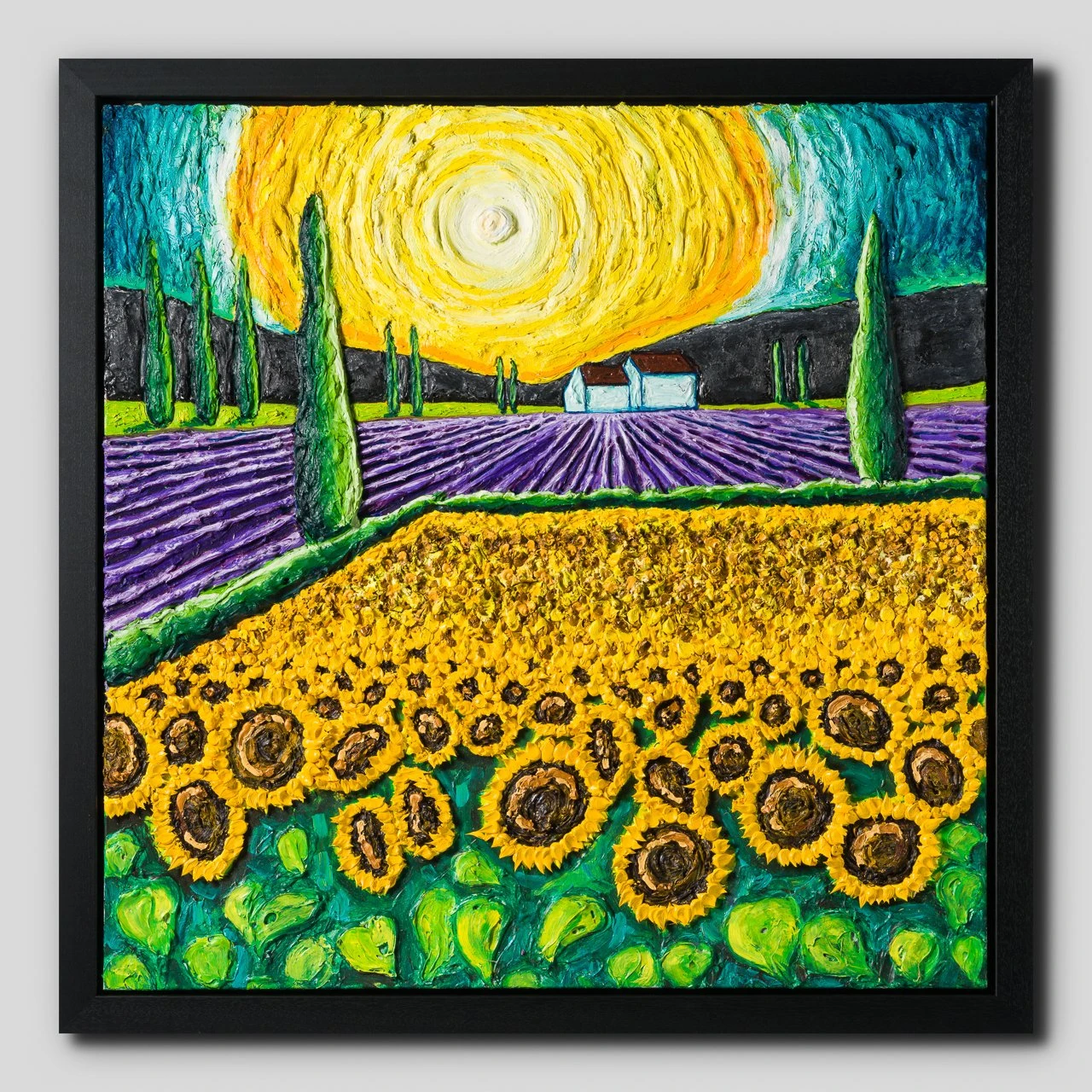 Bursting with bright colour and incredible texture, this beautiful original artwork by Scarlett Raven not only showcases her own signature style but, also the art historical genre of impasto painting.
