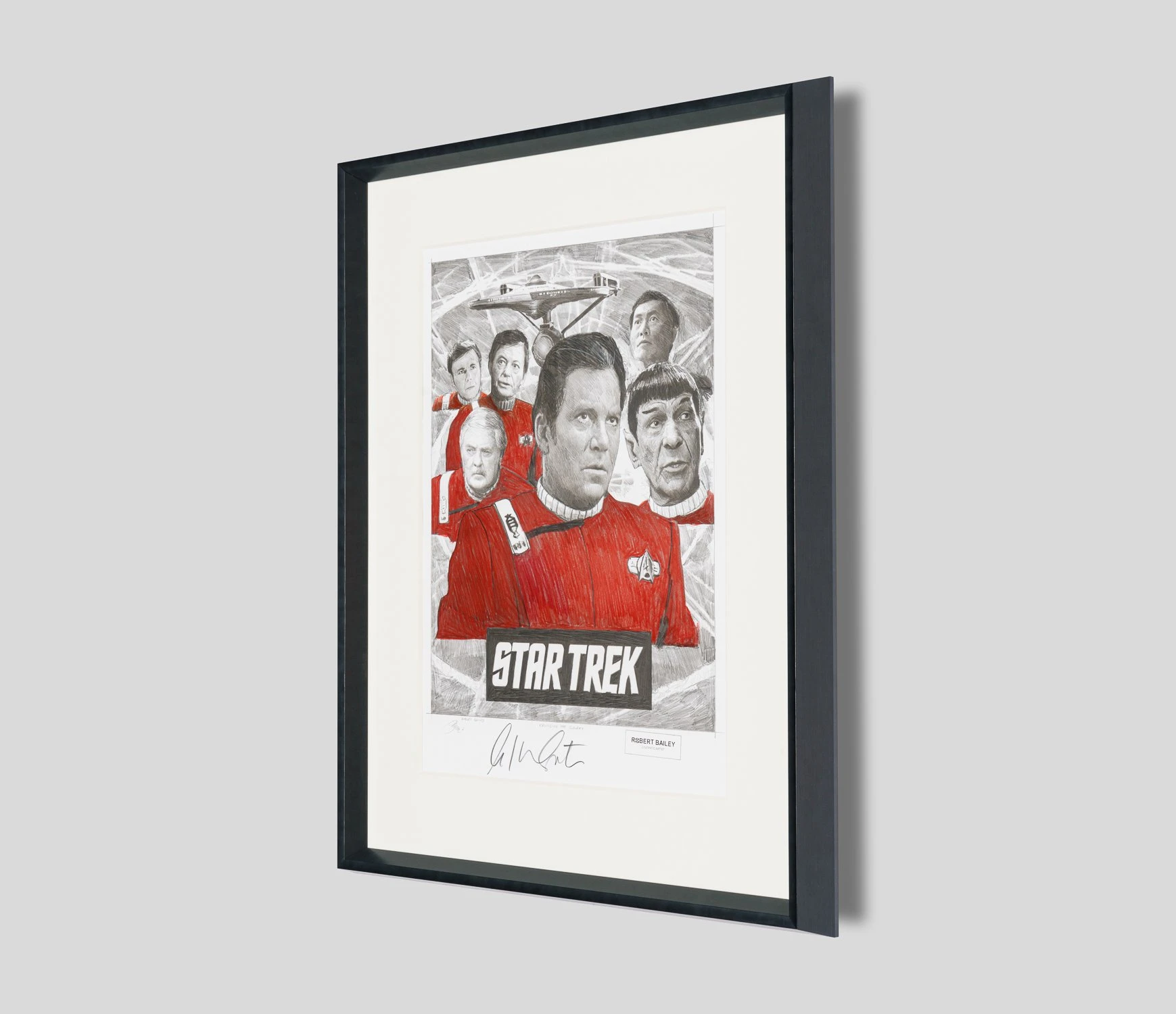 Hand-signed by William Shatner himself, who has since been into real space, this original artwork by Robert Bailey will add a touch of space-age magic into your home through a bold and bright colour palette and bespoke black wooden frame. View our full Robert Bailey portfolio .