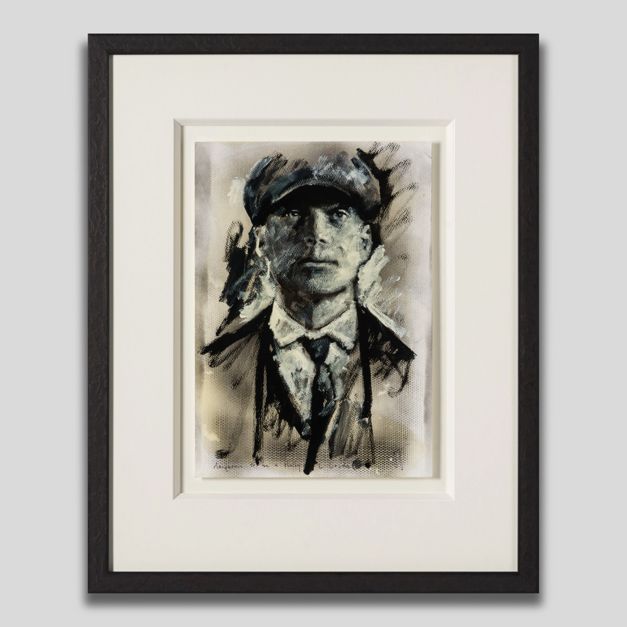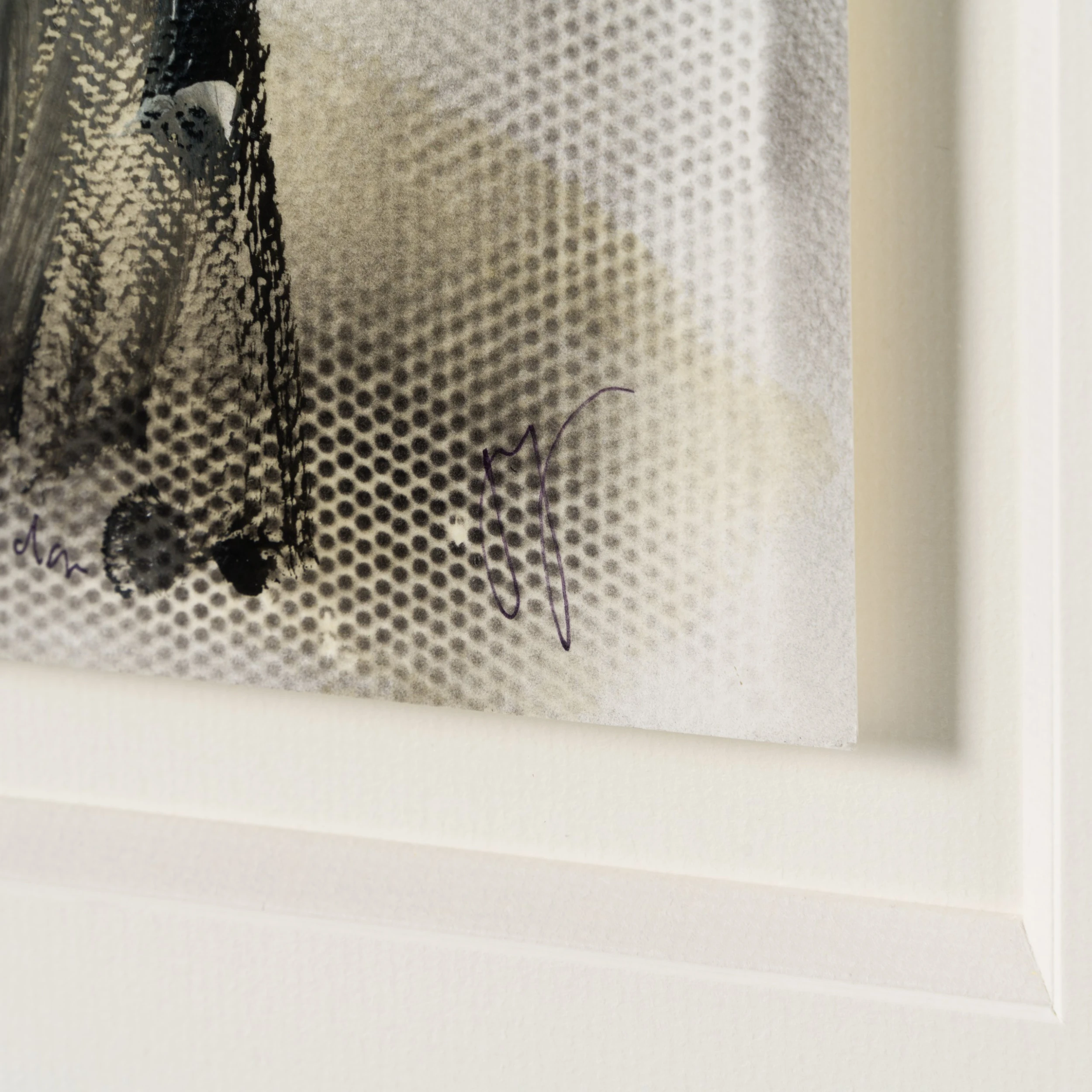 Deep swathes of black paint are skilfully blended and contrasted with white accents to create detailed and moving masterpieces. Bespoke framed and mounted in textured black radiata pine, this original painting will add a dark and sultry touch to any space while honouring a key aspect of British history.Â