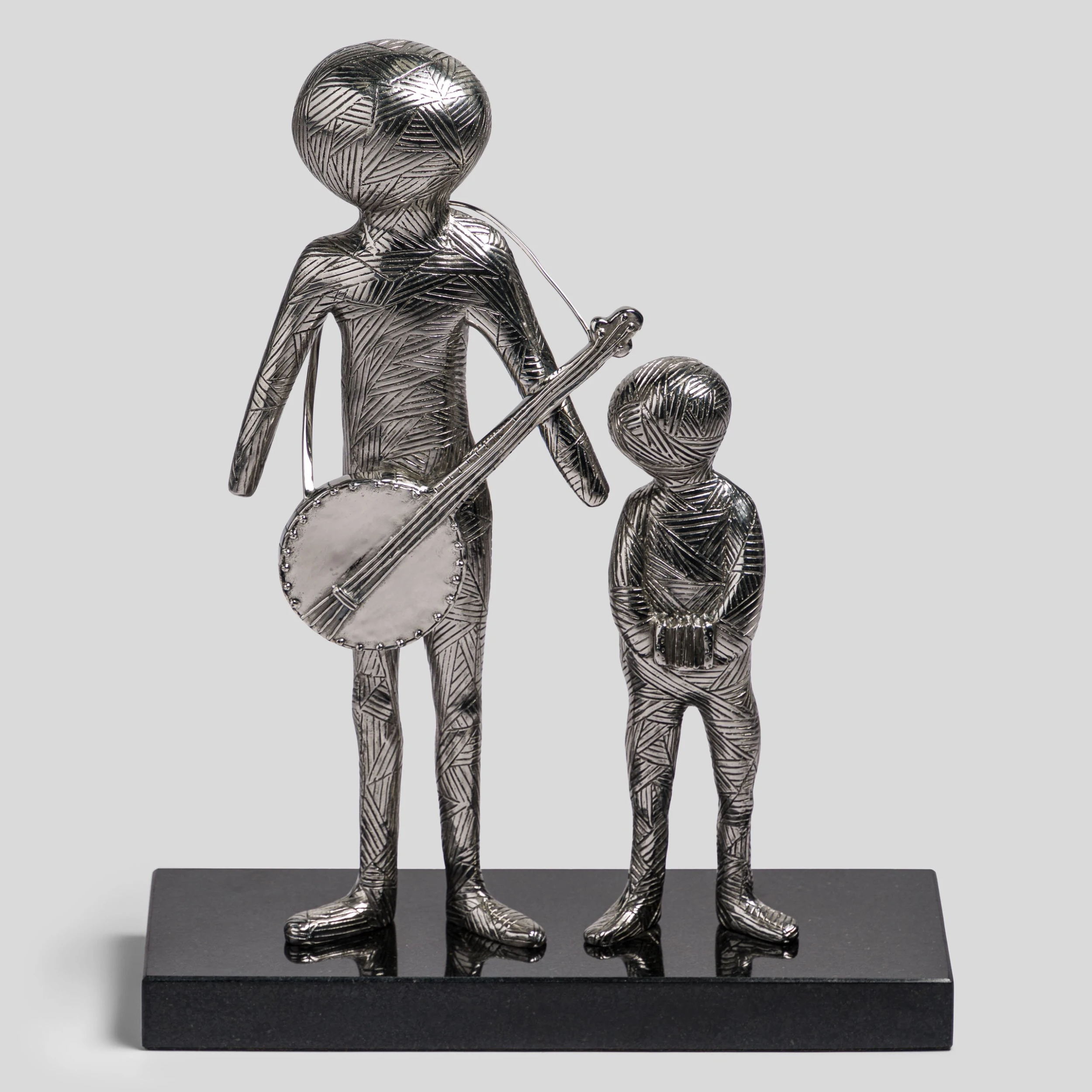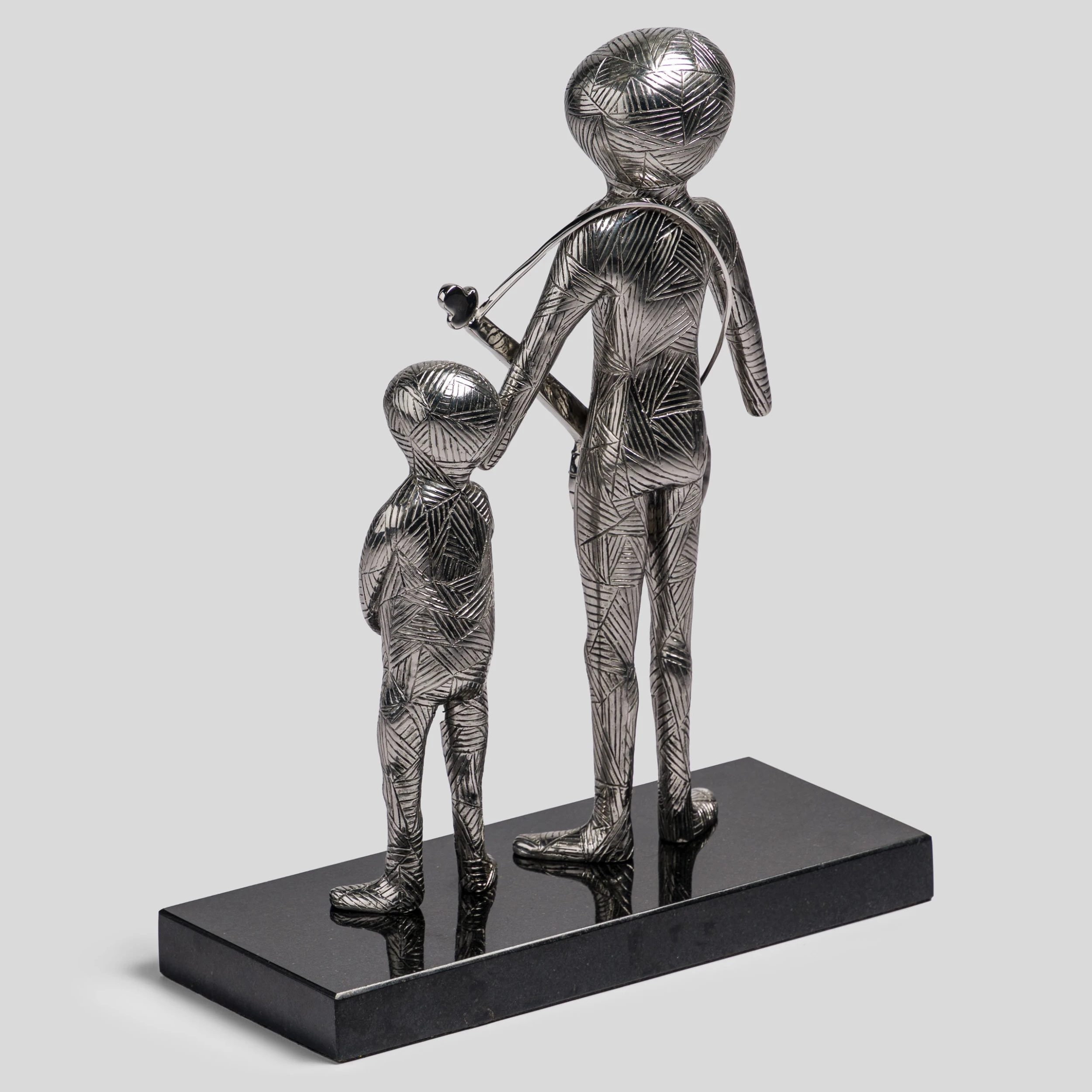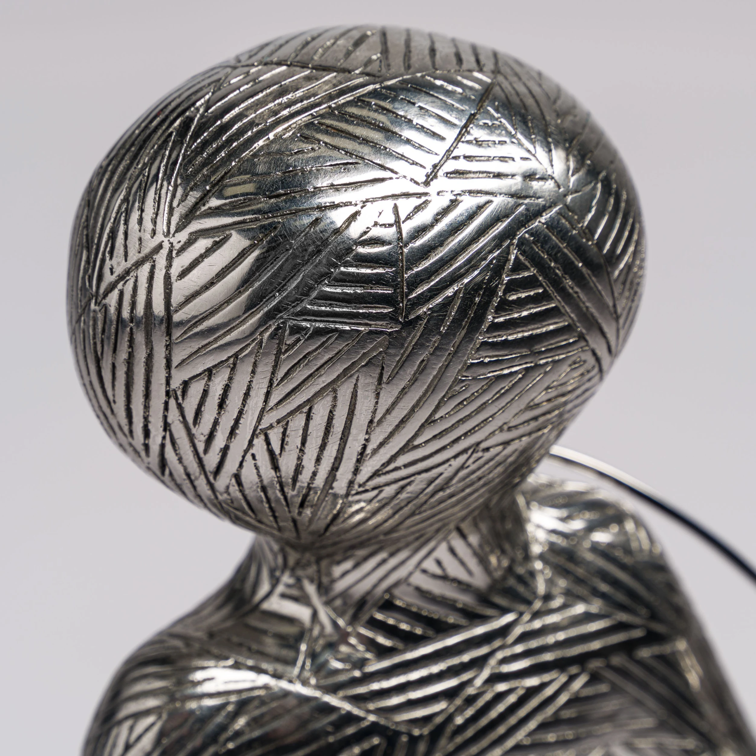 These thought provoking sculptural images are very dear to Billyโs heart. Formed first in clay to capture the detailed lines of his signature style, these sculptures are then cast in stainless steel, subtly referencing Billy’s time as a welder in the shipyards of Glasgow. Contrast is created between detailed and patterned areas through intricate texture and polishing to beautiful and dramatic effect. Timeless artworks from one of our timeโs most original thinkers.