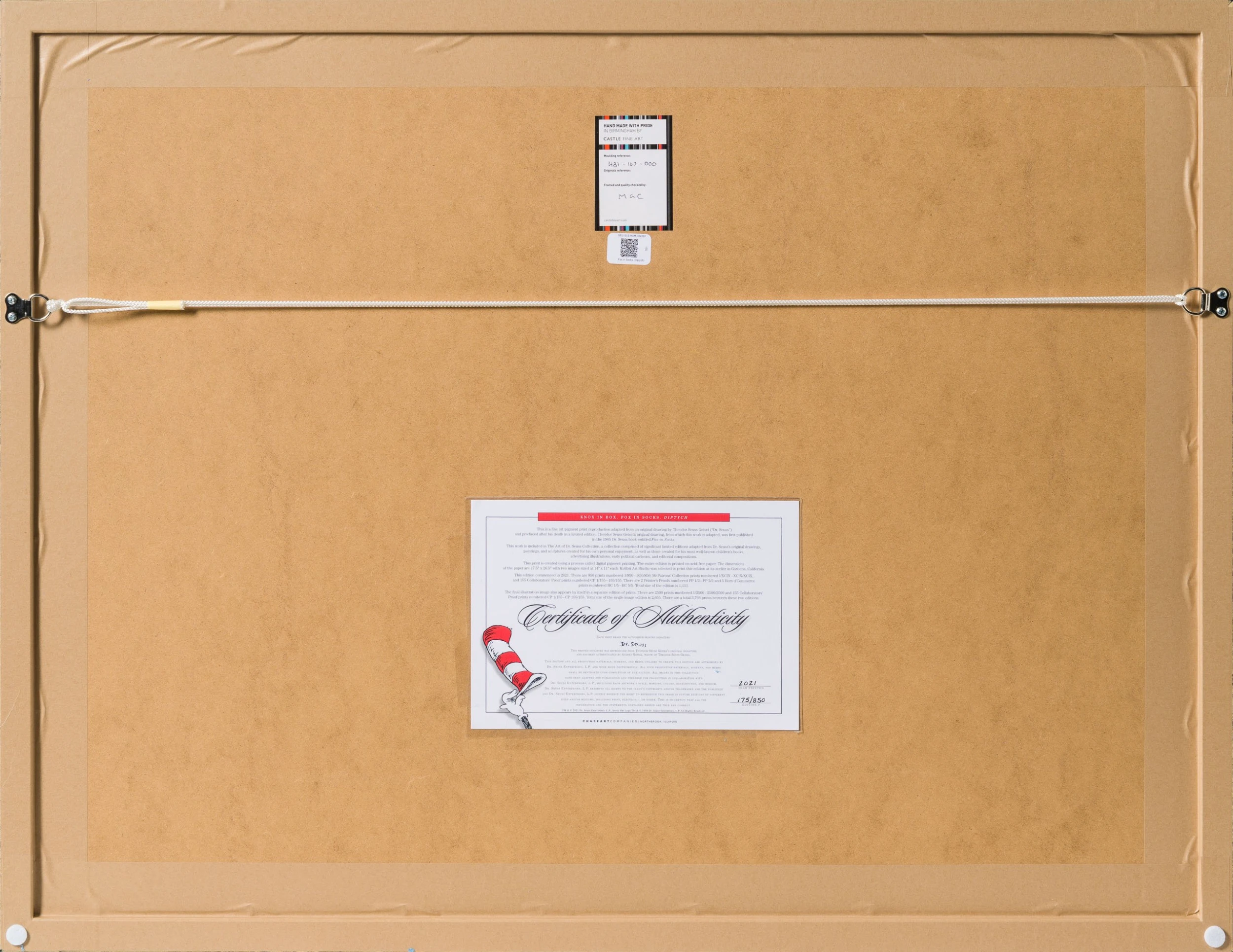 This piece is a Pigment Limited Edition on acid-free paper with an authorised printed signature by Dr. Seuss.