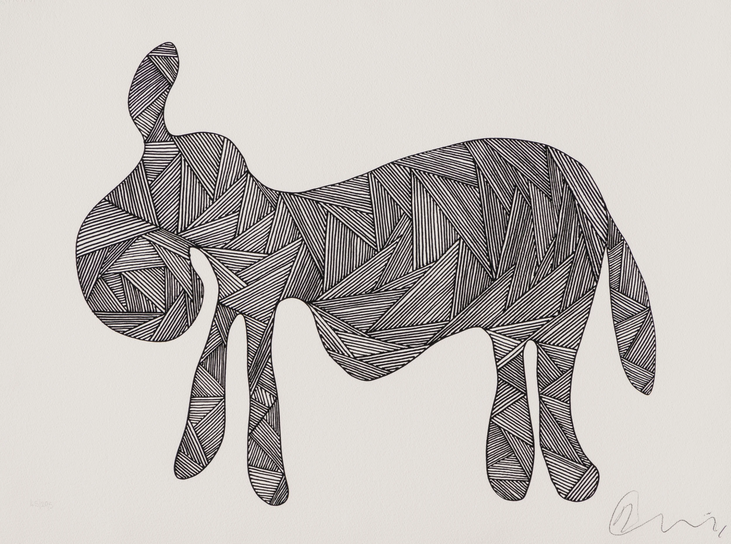 In his unmistakeable monochrome style, Connolly has revisited his own original style with the return of black and white drawings. While there’s pathos and darkness, the humour and wit reflected in “Drunk Donkey” is a true contemplation of Connolly’s character. Donkeys, which have been featured previously in Billy’s art, are “endearing kind of funny” according to the artist, who owned two donkeys when he lived in Scotland. Reminiscing of how they used to escape the garden and run down to the village, “Drunk Donkey” happened very naturally as Billy started drawing and it “just became a donkey”. “They’re lovely, they’re friendly, they’re like dogs. They cling to you; they’ve got a real tie to human beings. And I loved them”.