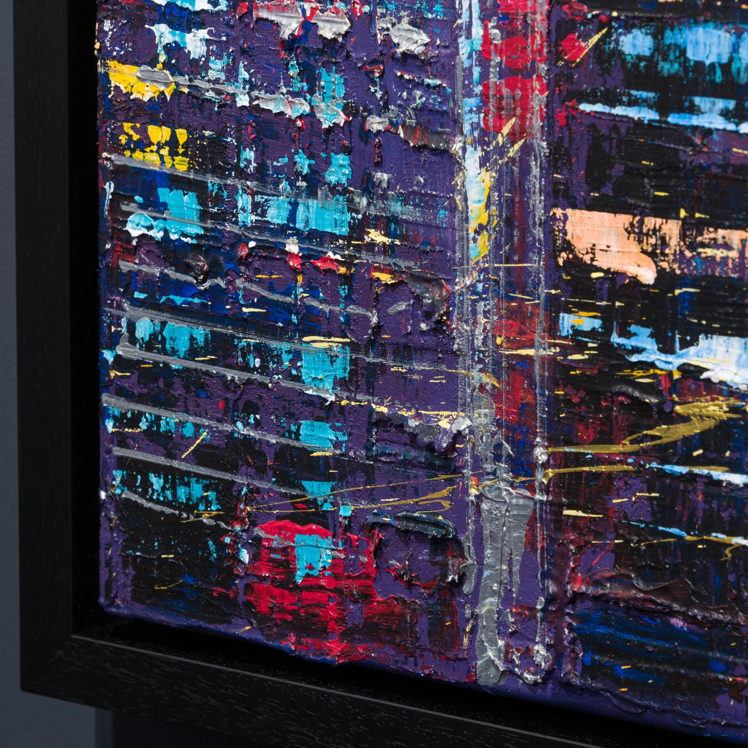 The energetic drips and the bold orange draw the eye towards the iconic Burj Khalifa, the tallest building in the world. Combining the busy traffic and electric streets with the serenity of the sunset, this monumental piece of the Dubai skyline comes alive with the lights and warm tones. The piece’s ability to make a statement is unmatched, allowing collectors to have a hypnotising escape in their house.
