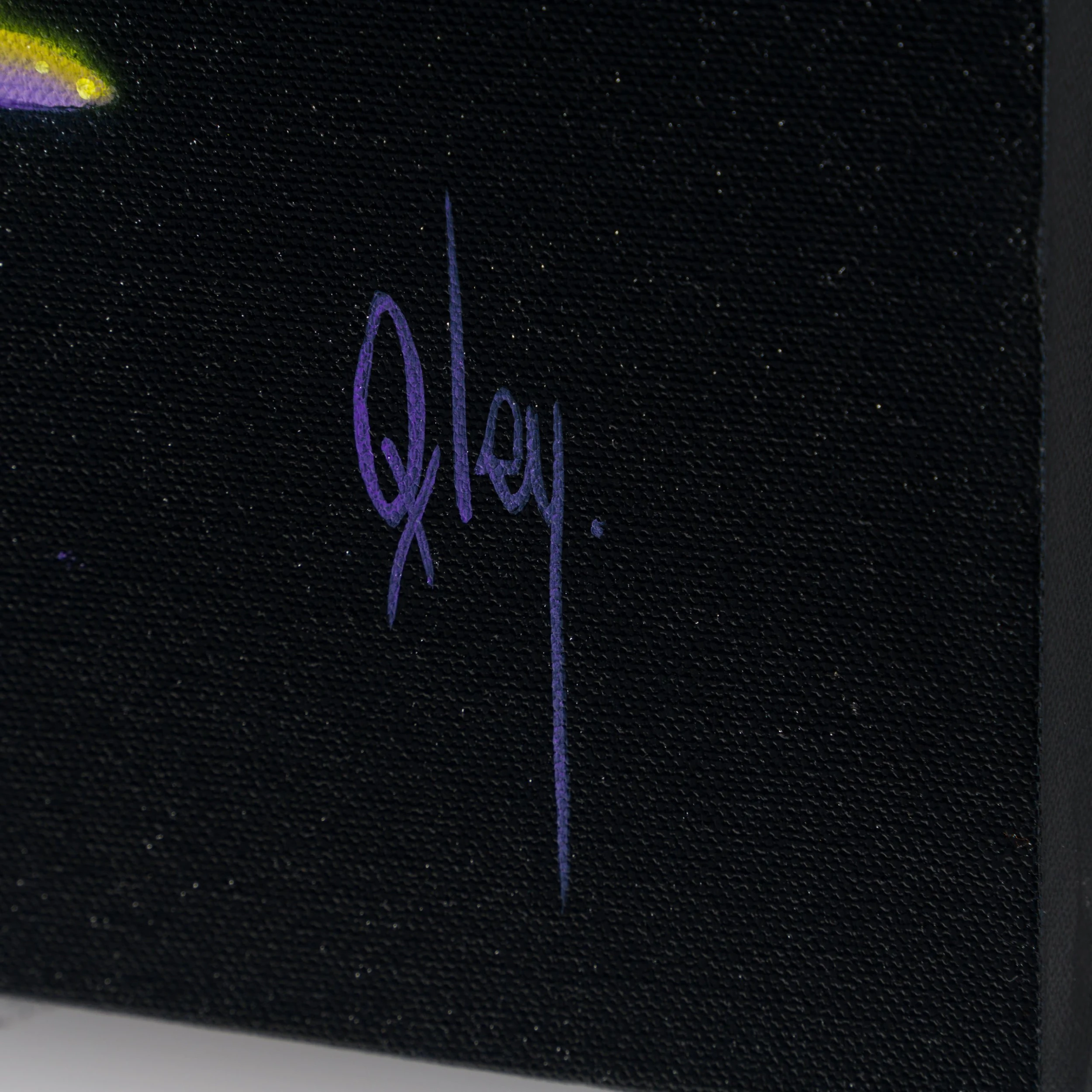 Many of Oxley’s pieces skilfully blend elements of surrealism and expressionism, infusing each piece with energy and emotion. His expressive brushwork is energetic and fluid, giving his paintings a sense of movement and spontaneity as his captivating portraits feature wild animals created through intense patterns and psychedelic colour. This loose style adds to the emotional impact of his artwork, giving life and movement to the wolf, while contrasting with the fixed stare of the eyes.