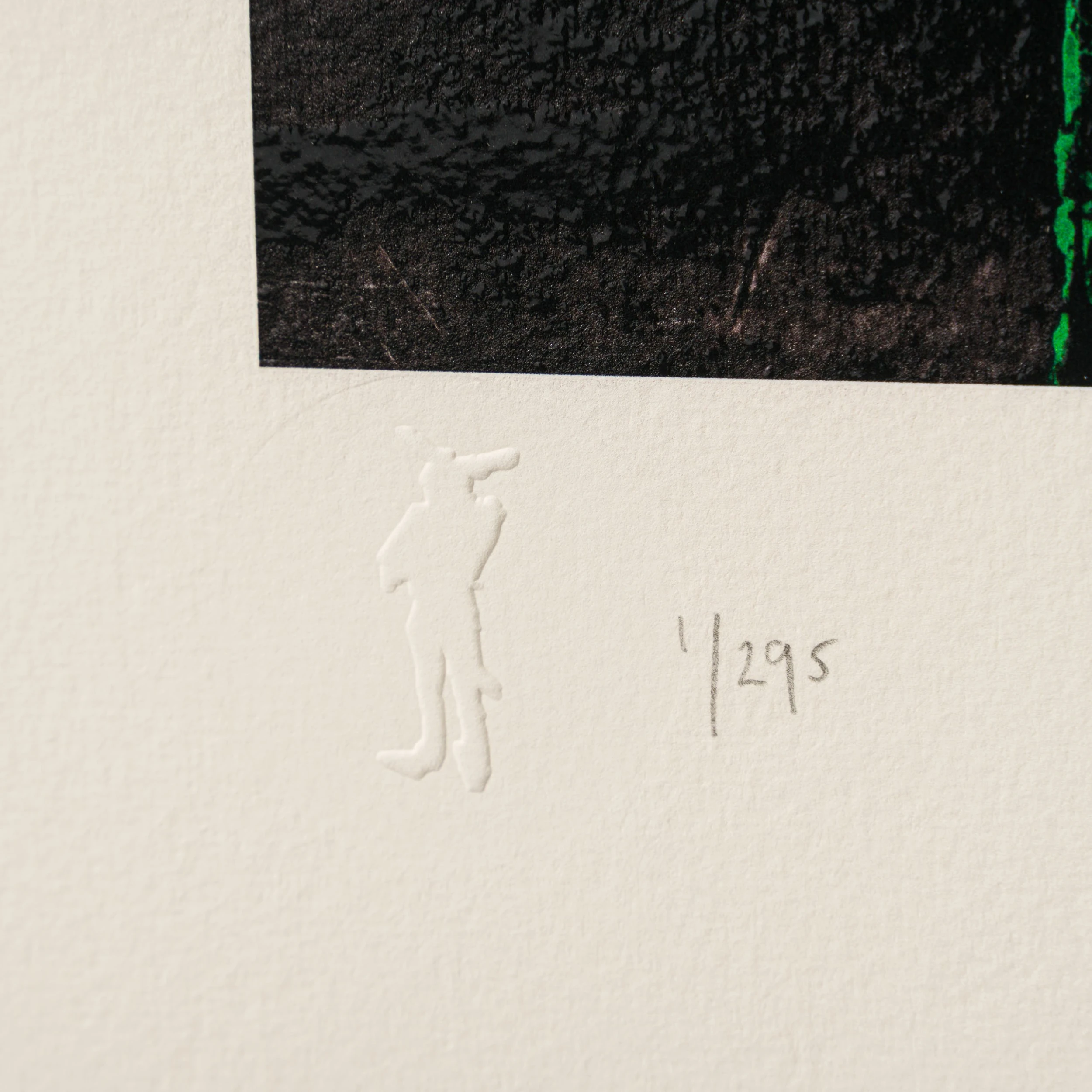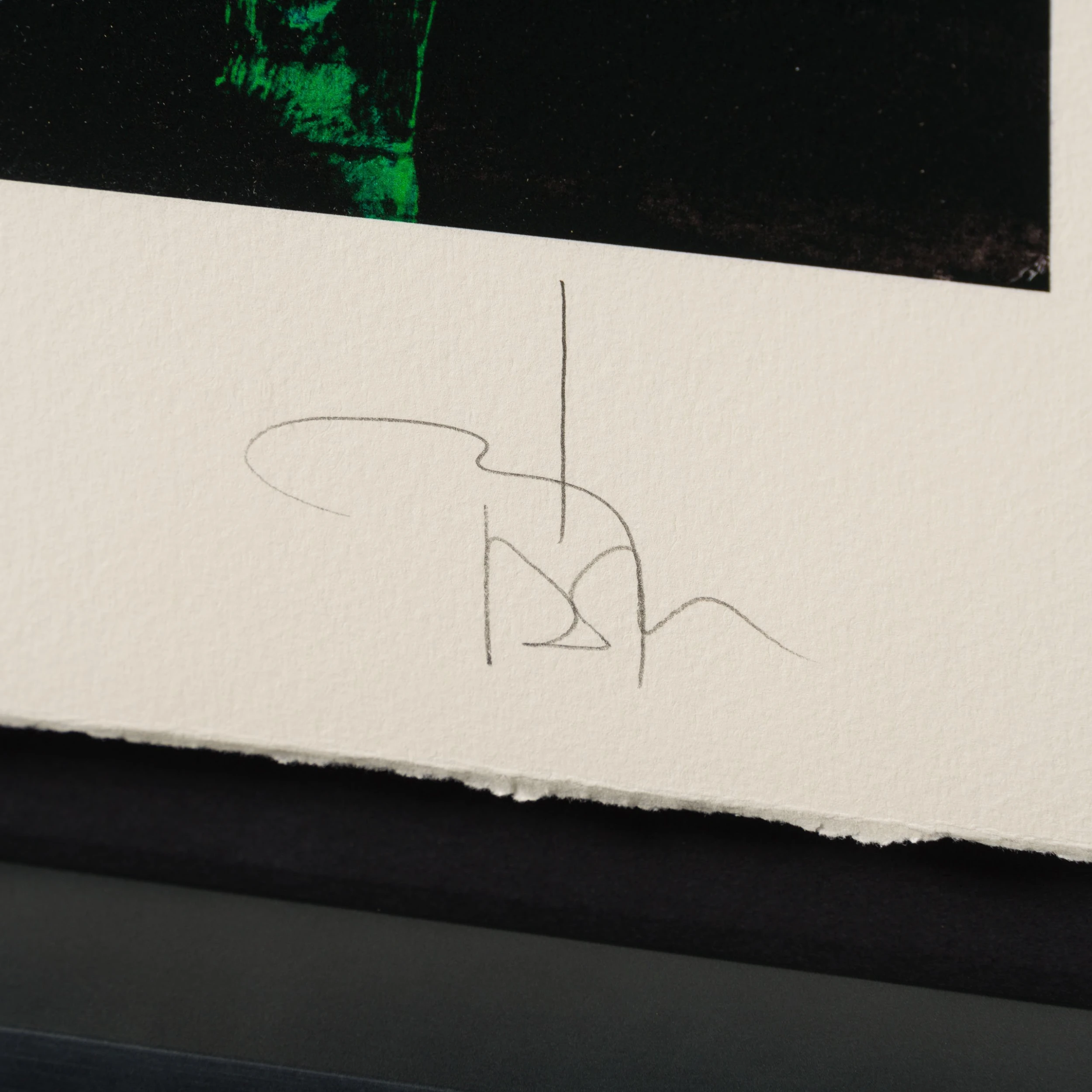 The hand-signed limited edition artwork is a Silkscreen and Archival Pigment with Gold Leaf on paper. Each artwork is printed on high-quality heavyweight 640gsm Waterford NOT paper with deckle edges, hand-signed by Johnny Depp and emboss stamped by hand with Johnny’s personal mark of authenticity, The Bunnyman.