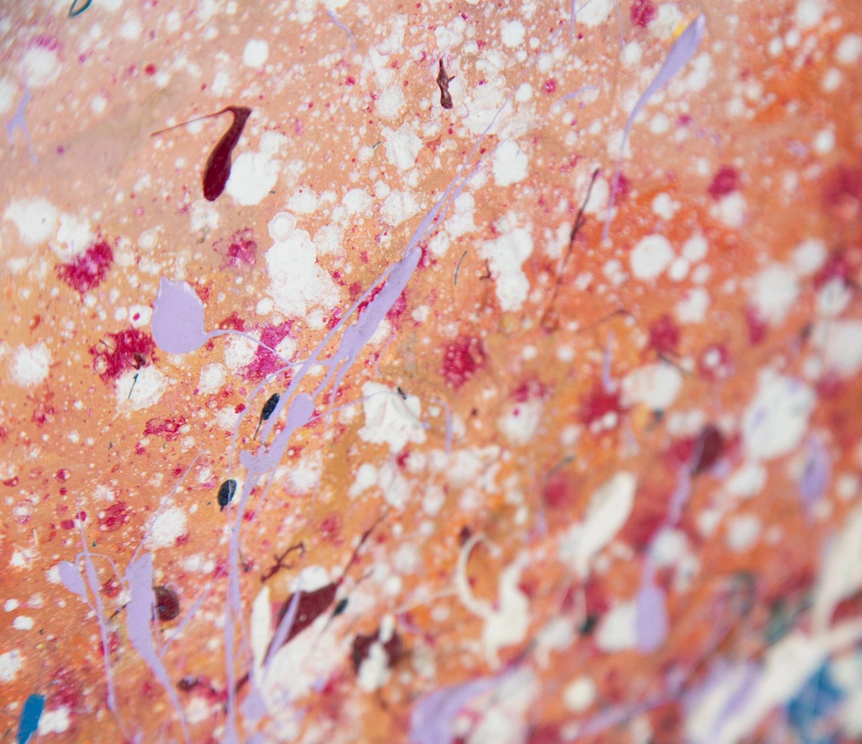 On creating her beautiful landscape artworks that have such fans as Orlando Bloom and Lord Jonathan Marland, Scarlet says: “The paint is thrown on, splattered and flicked. When it lands, it captures the flowers blowing in the wind. The movement must be in every layer, so when you step back you feel like the landscape is alive. It creates a whole world of magic.”