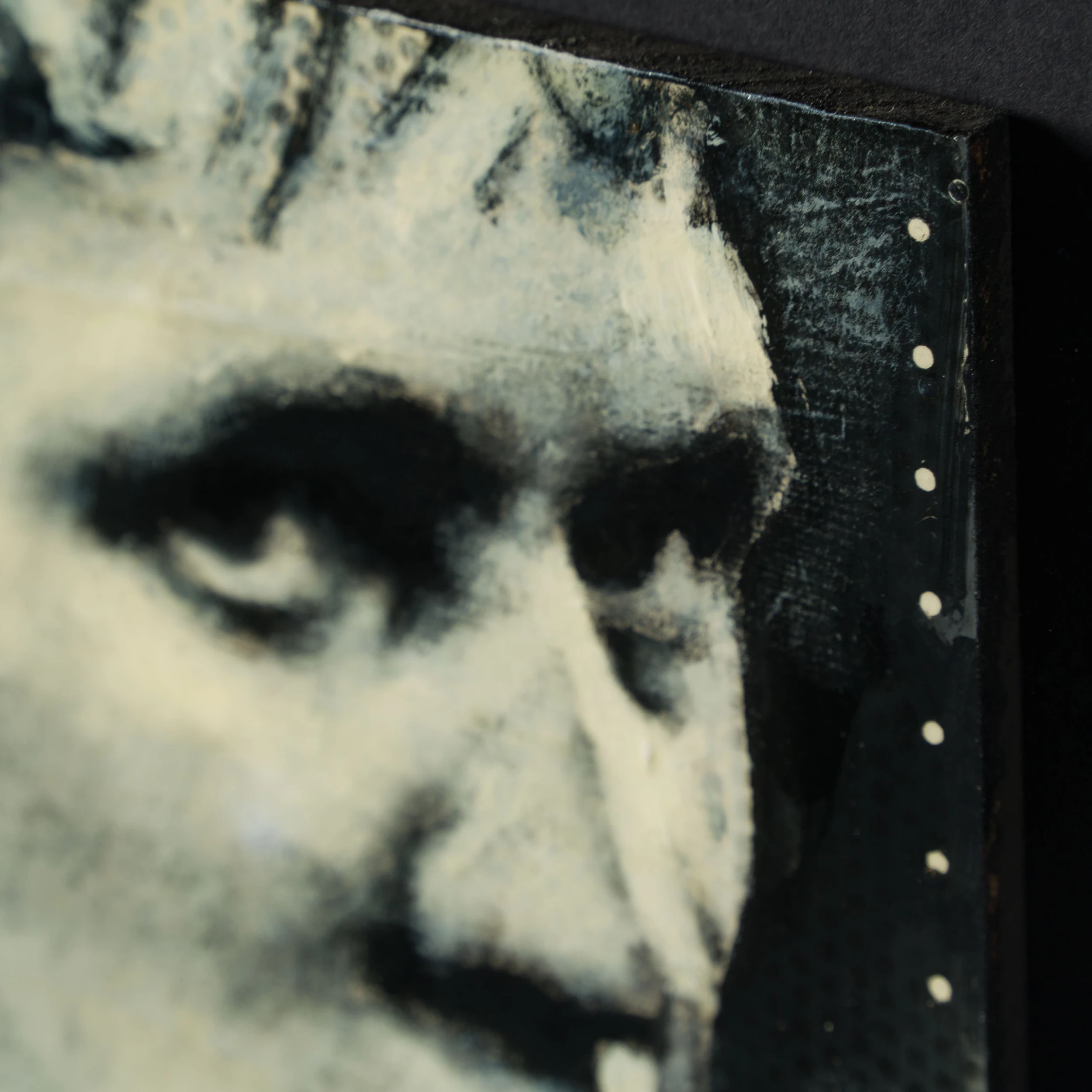 Perplexing, and melancholic, Jon’s work is created from the heart, capturing expressions, moods and feelings. All the individual portraits are from people who have interested or inspired the artist in this case a football scene in 1990. The artist portraited Gary Lineker in a famous game between England and Germany.
