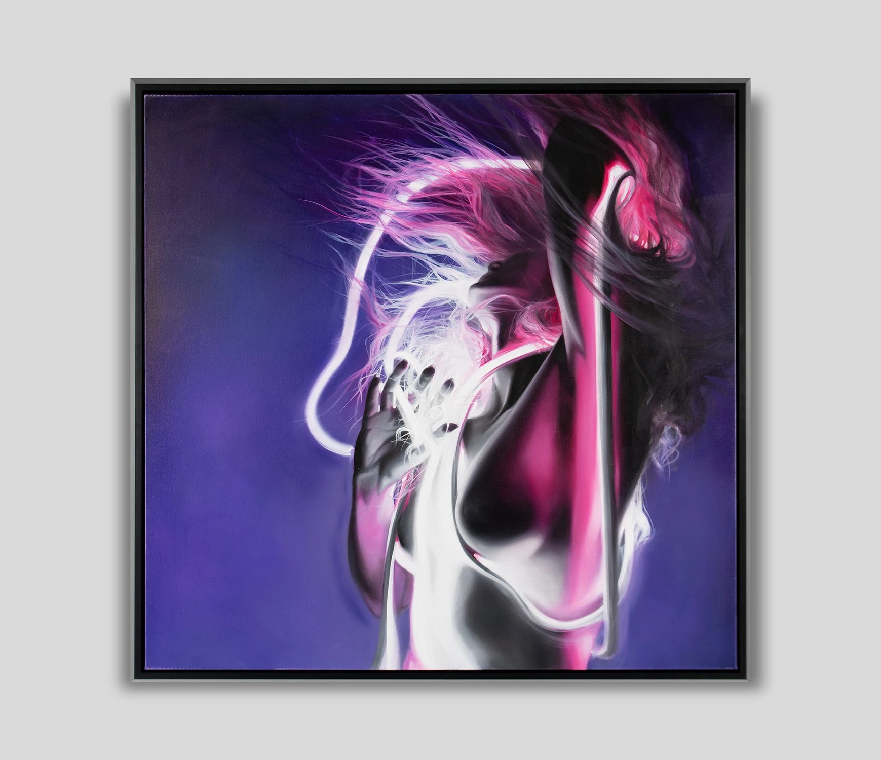 Sharing its name with an elegant Italian musical term, this electric original artwork by Emma-Leone Palmer emerges from her critical Ékstasis collection. Titled after the Greek word for ‘ecstasy’, Ékstasis is defined as a union with the divine or, the experience of an inner god. Connoting feelings of power, independence, passion and peace, this evocative artwork will represent different experiences to every viewer. To the artist, one of the many meanings of this collection is the feeling of listening to music with your friends in the kitchen, ‘somewhere in the singing and dancing you forget yourself and are somewhere in a perfect realm, a rapture.’