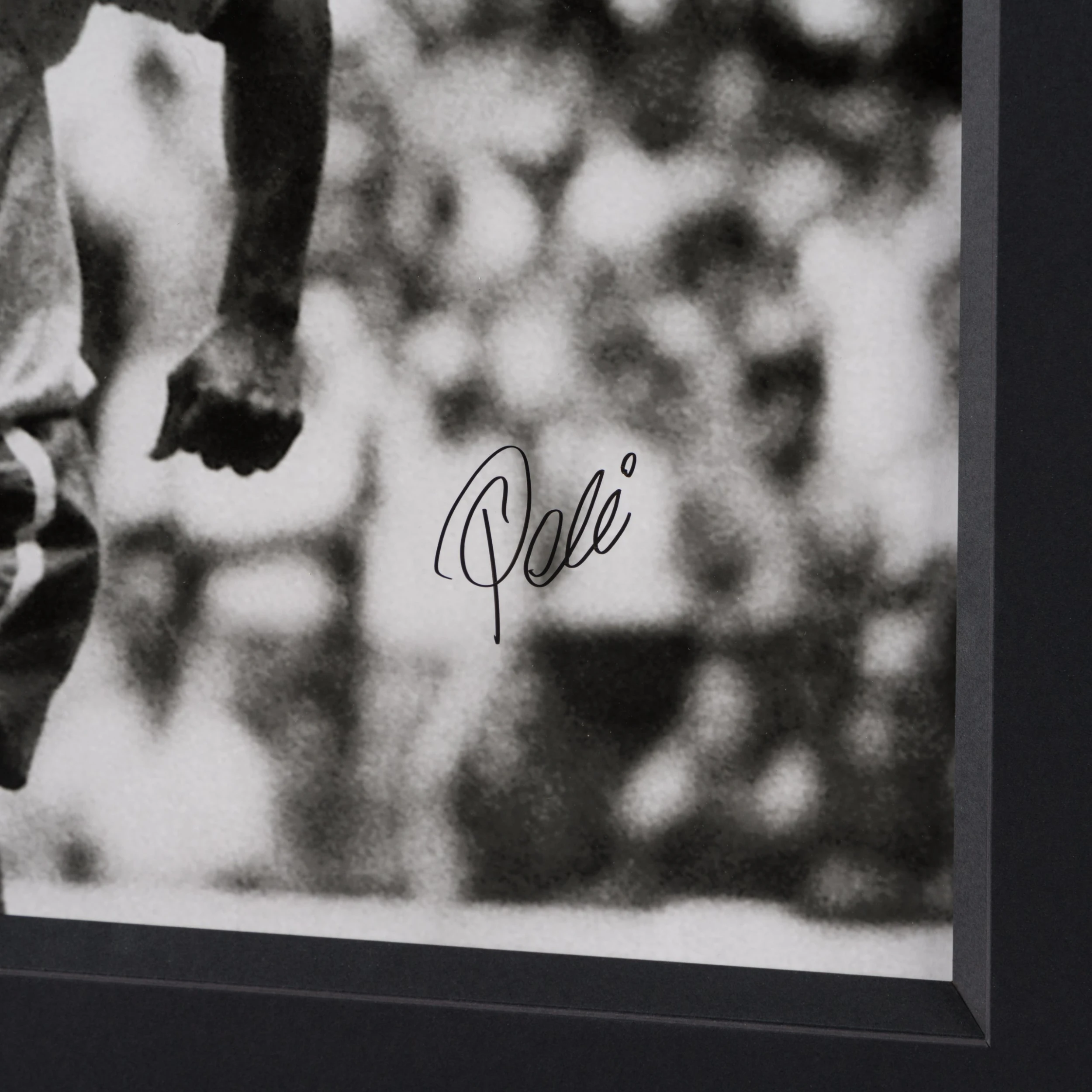 Named ‘Football Player of the Century’ by FIFA, Pelé is one of the most celebrated football players in history. The only man to win the World Cup three times, the Brazilian footballer had tremendous vision and an electrifying pace, having set numerous records at international level. Hand-signed by Pelé himself, this captivating photograph captures not only his skills on the field and as a player, but the passion and humility of the man behind the legend.