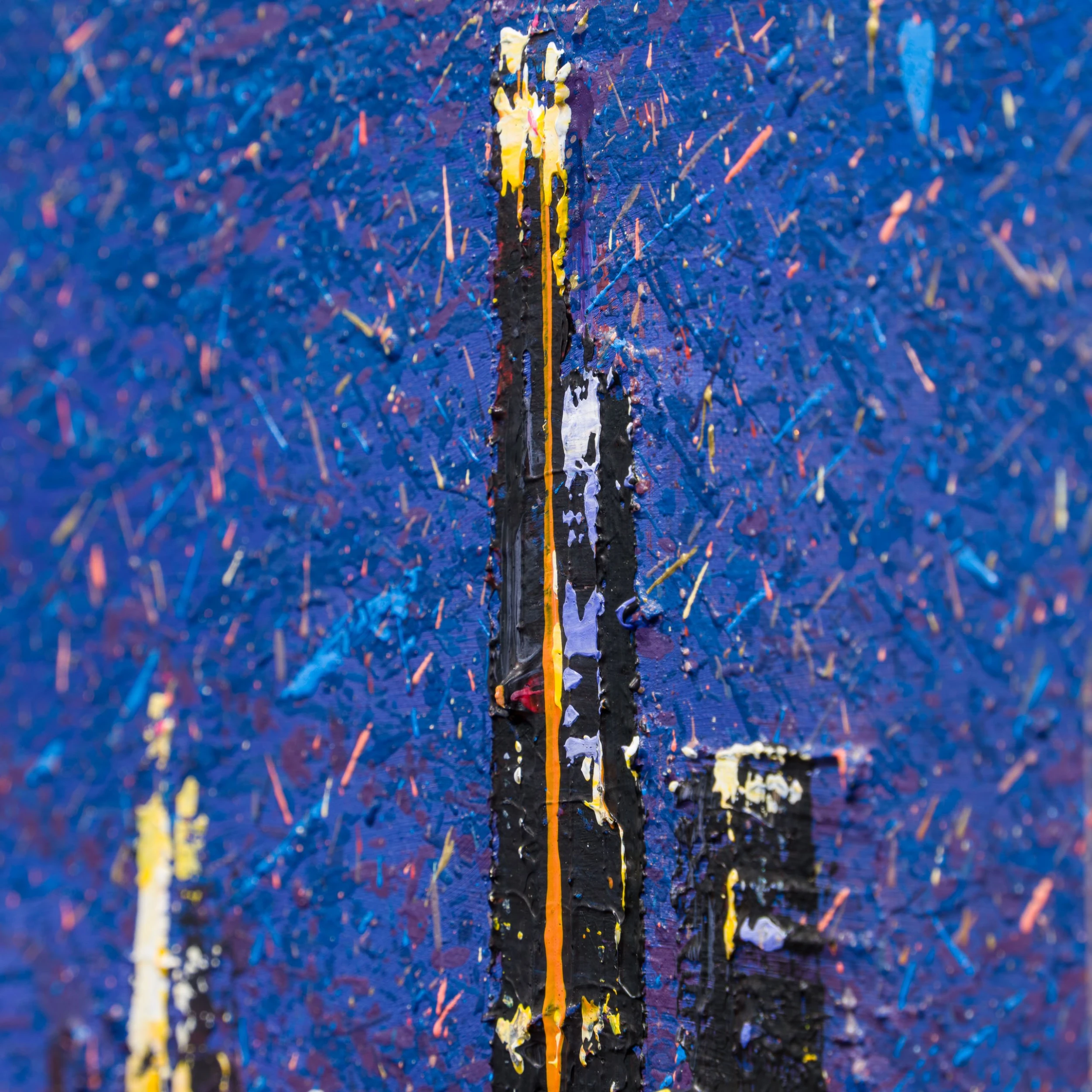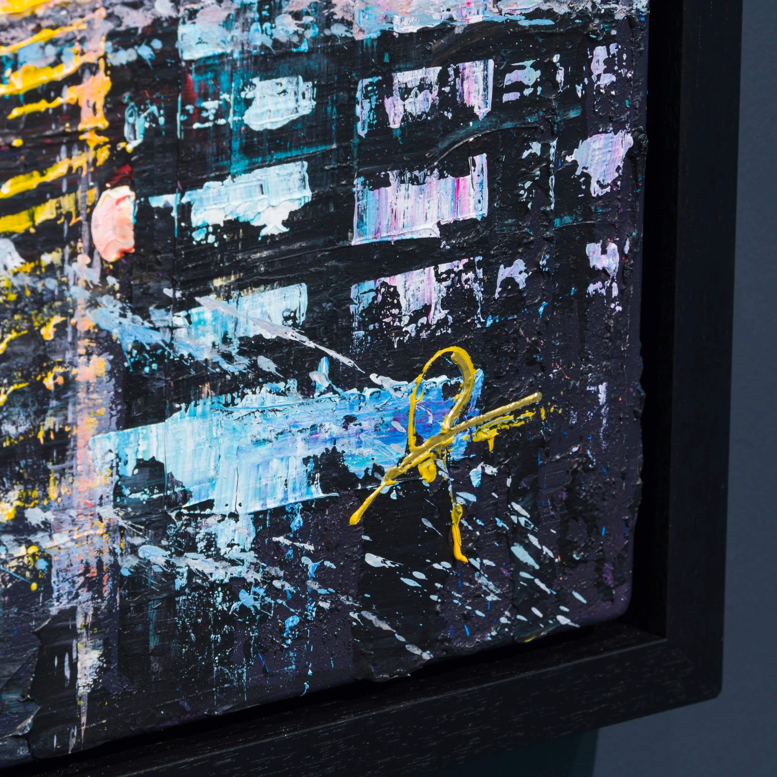 The energetic drips and the bold contrasting hues in the sky draw the eye towards the iconic Burj Khalifa, the tallest building in the world. Combining the busy traffic and electric streets with the serenity of the last hour of sun, this monumental piece of the Dubai skyline comes alive with the lights and warm tones. The piece’s ability to make a statement is unmatched, allowing collectors to have a hypnotising escape in their house.