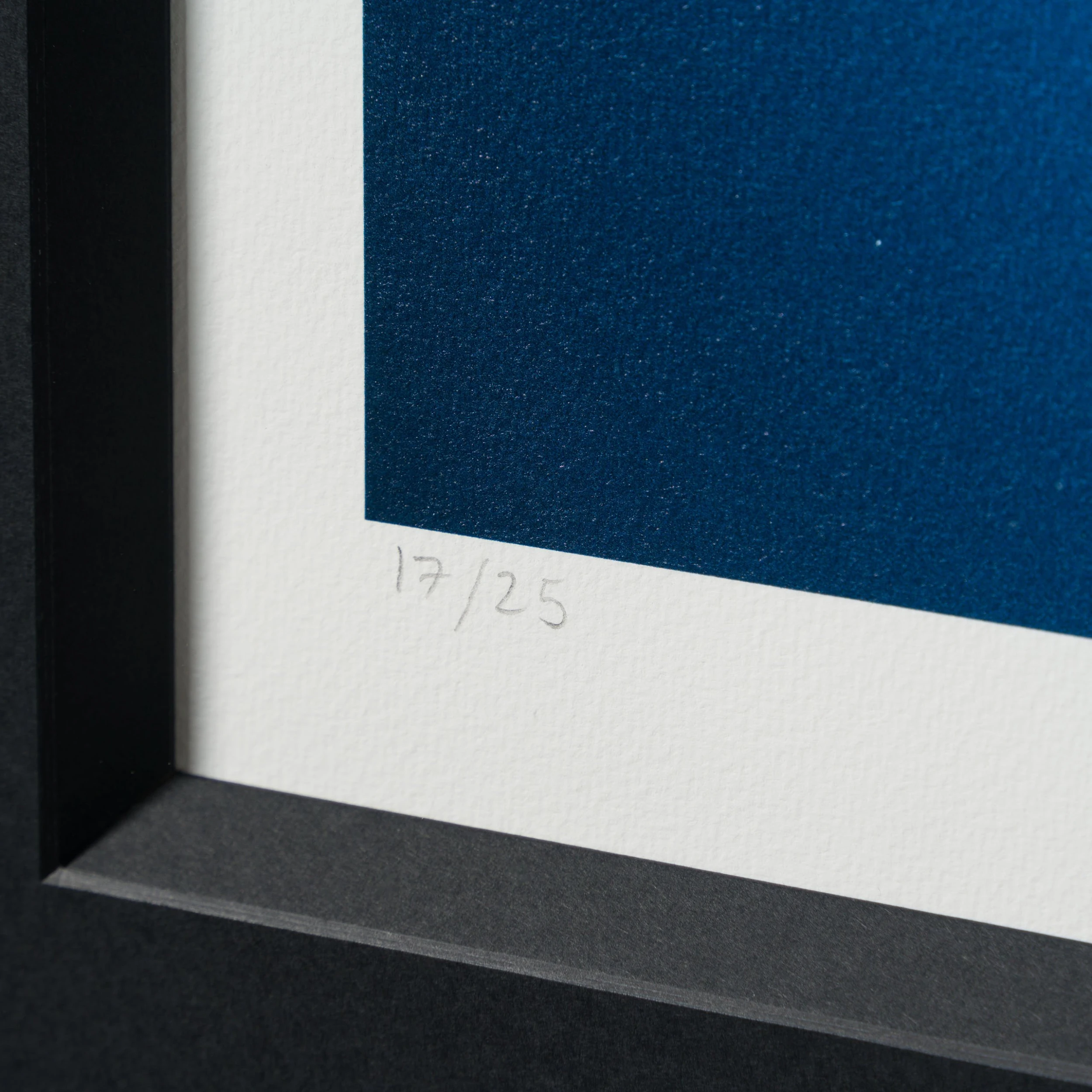 This artwork is a Flat Bed Fine Art Print on Torn Edge Moulin 300 gsm paper which is floated on a black mount.
