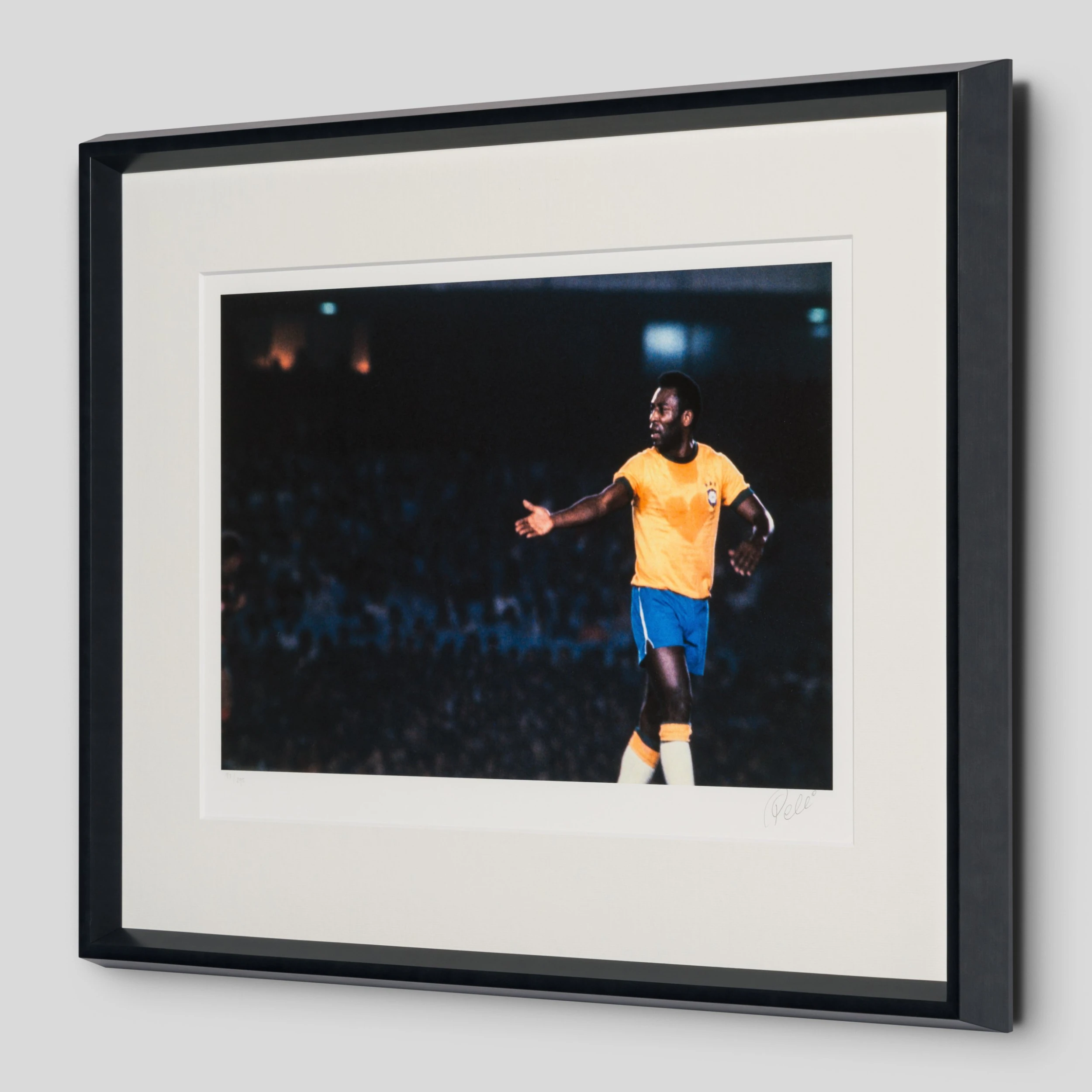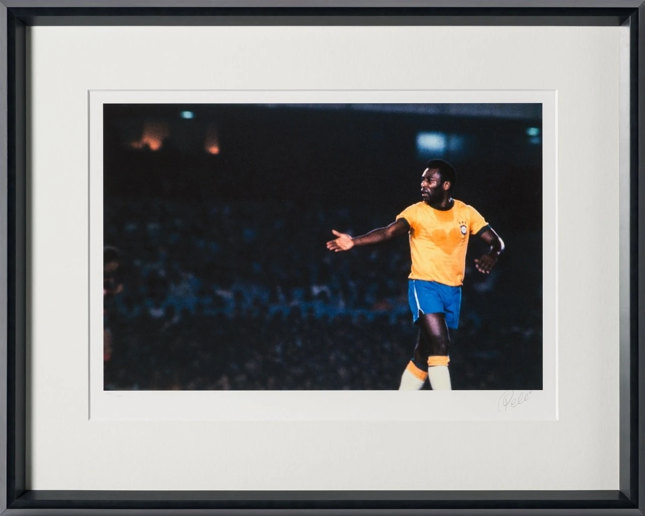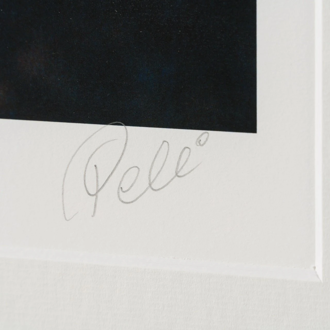 An iconic image of Brazilian footballer Pelé during 1976, translated into a signed, limited edition Giclée on paper.