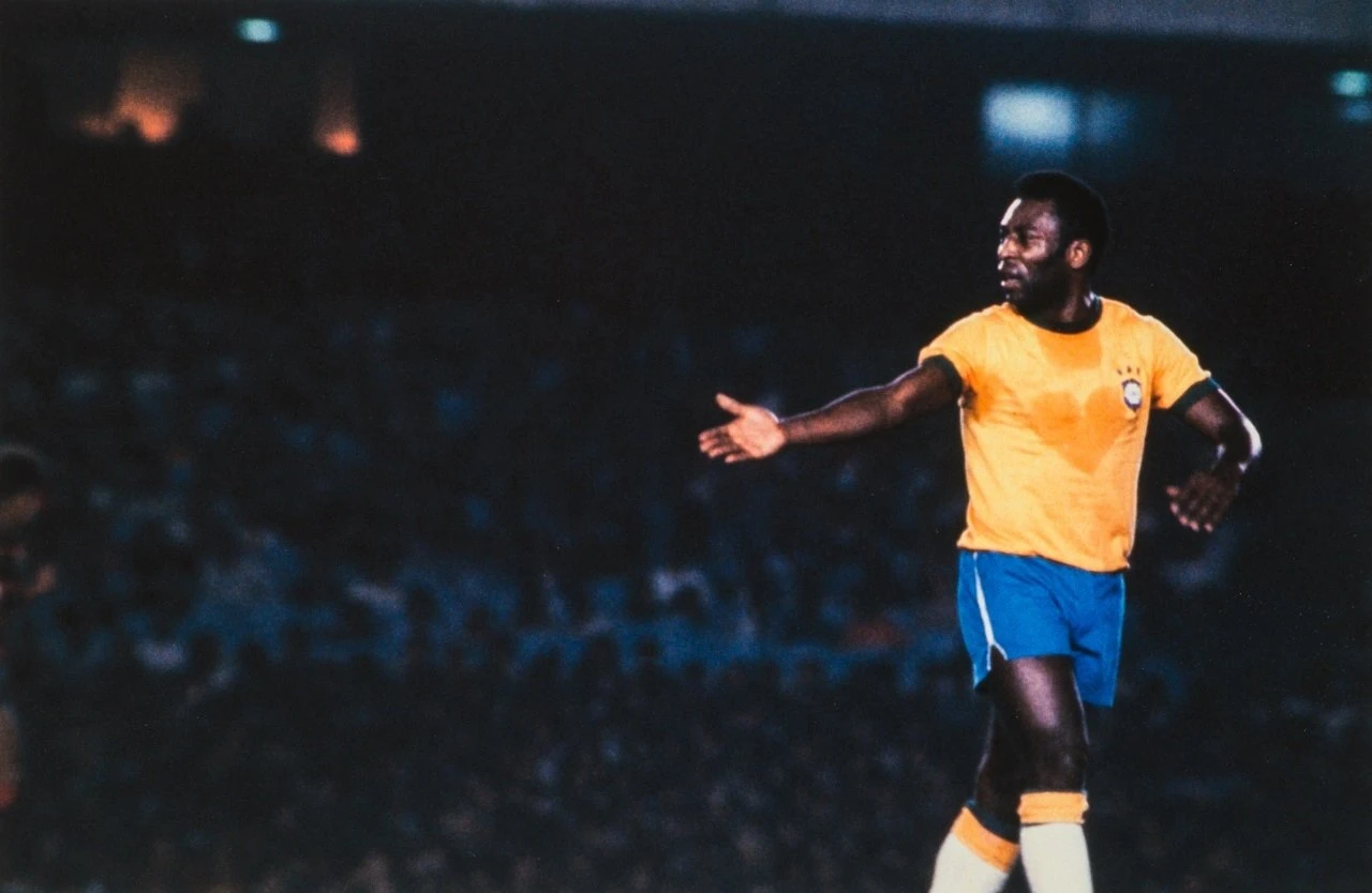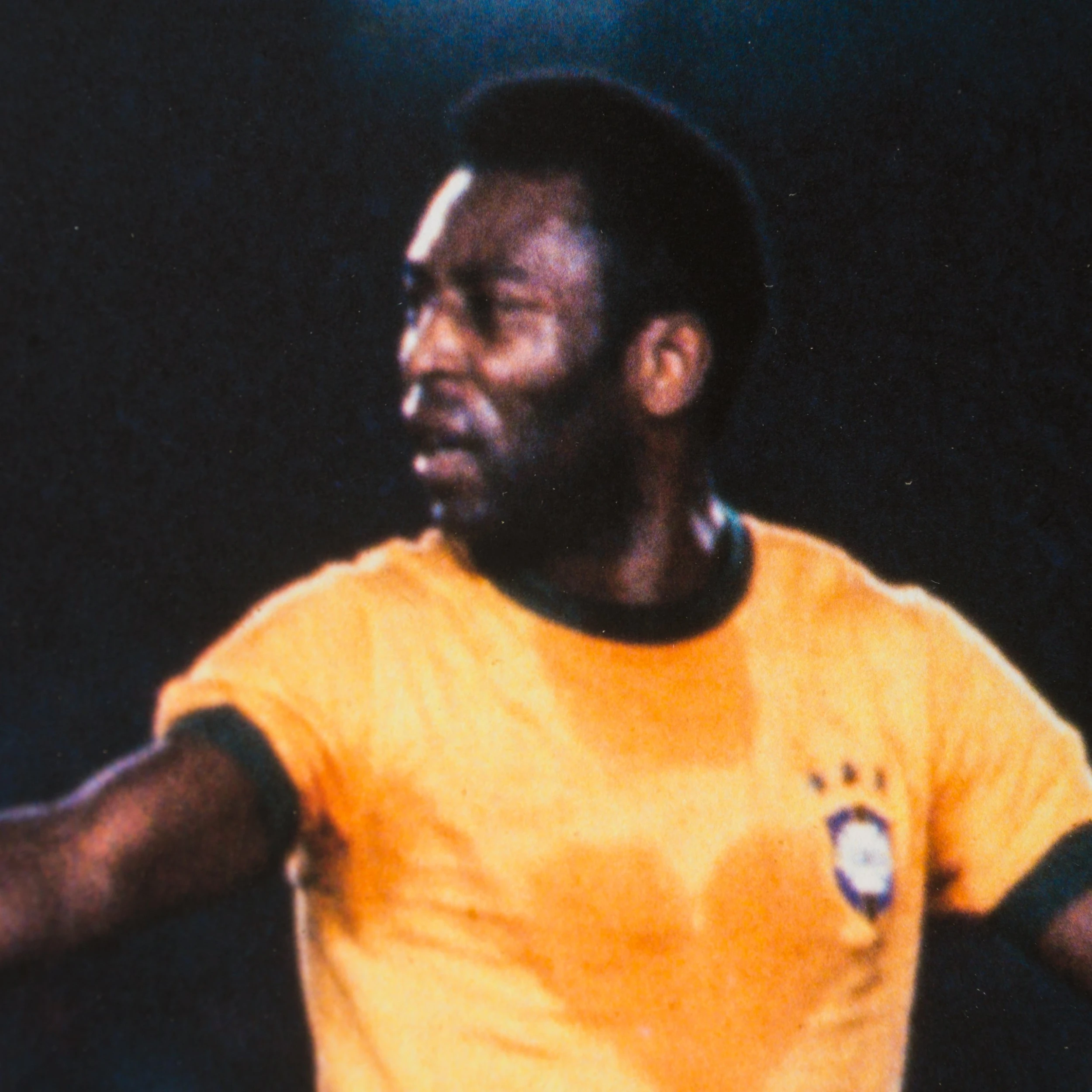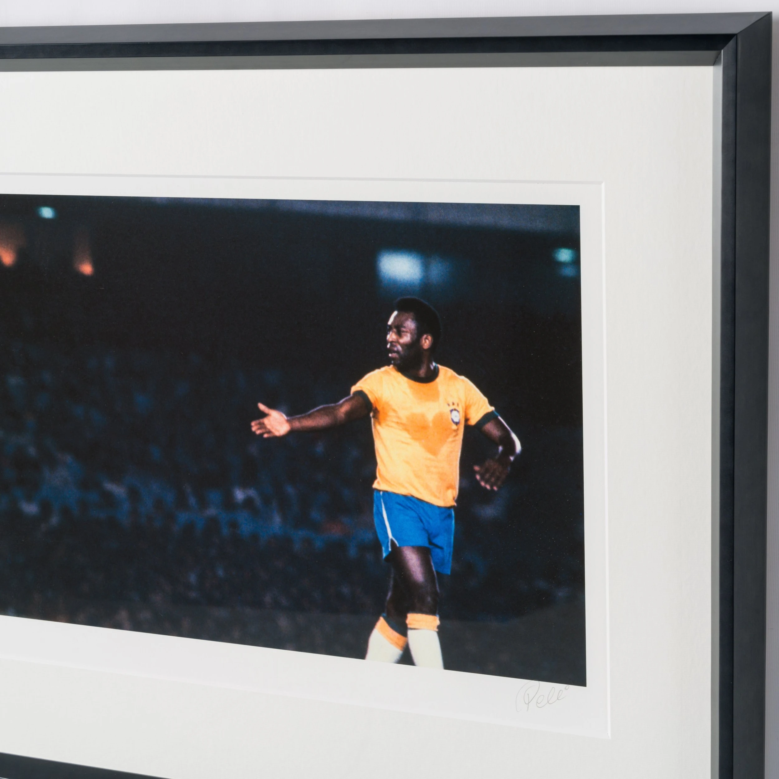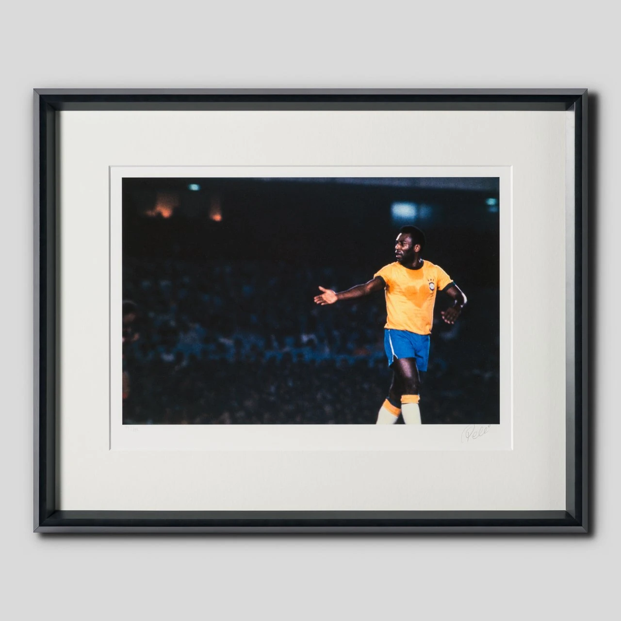An iconic image of Brazilian footballer Pelé during 1976, translated into a signed, limited edition Giclée on paper.