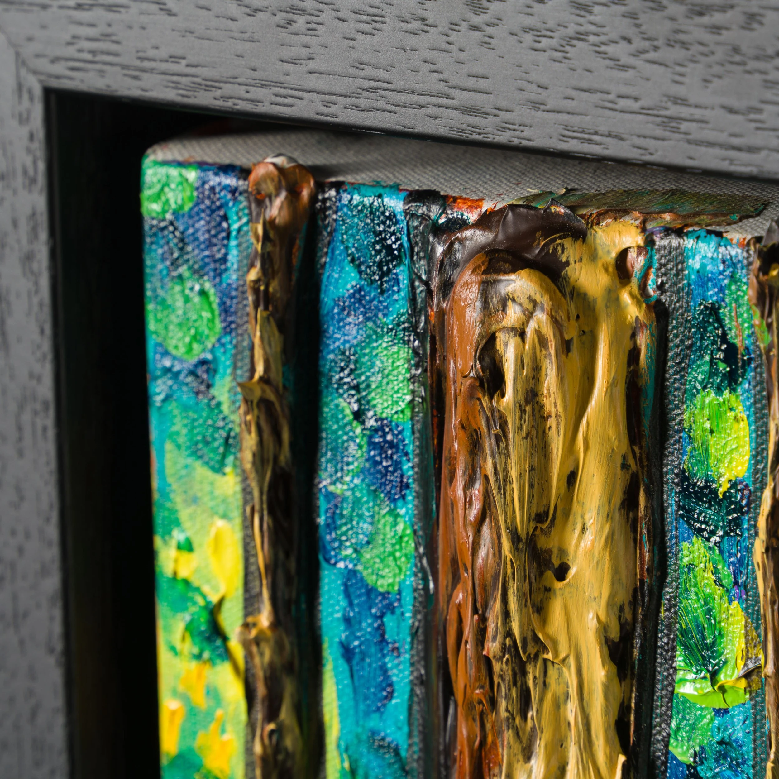 One of the most exciting female artists in the UK today, textured landscape originals are standout pieces in any collection. Bursting with bright colour and incredible texture, this beautiful original artwork not only showcases her own signature style but, also the art historical genre of impasto painting.