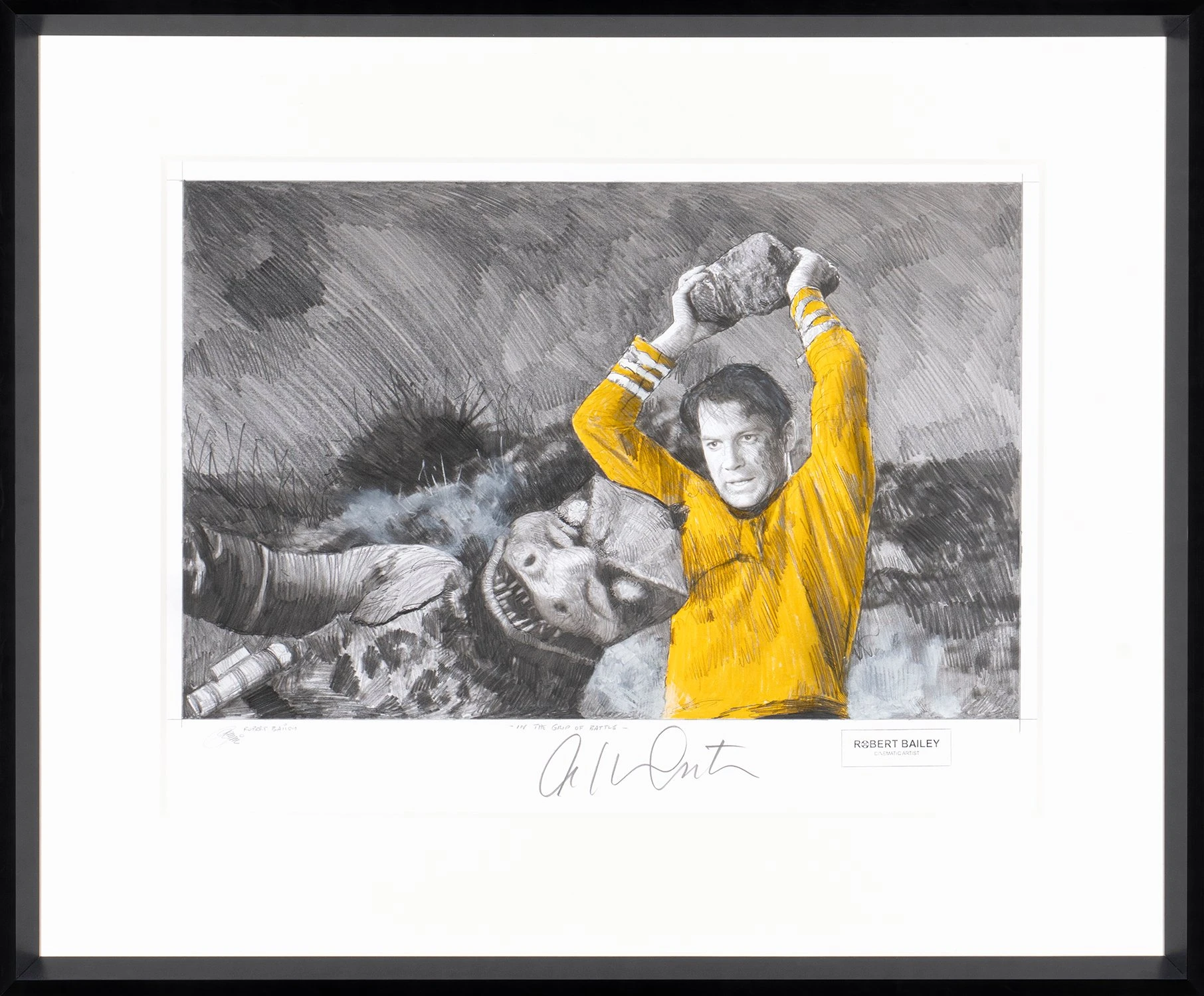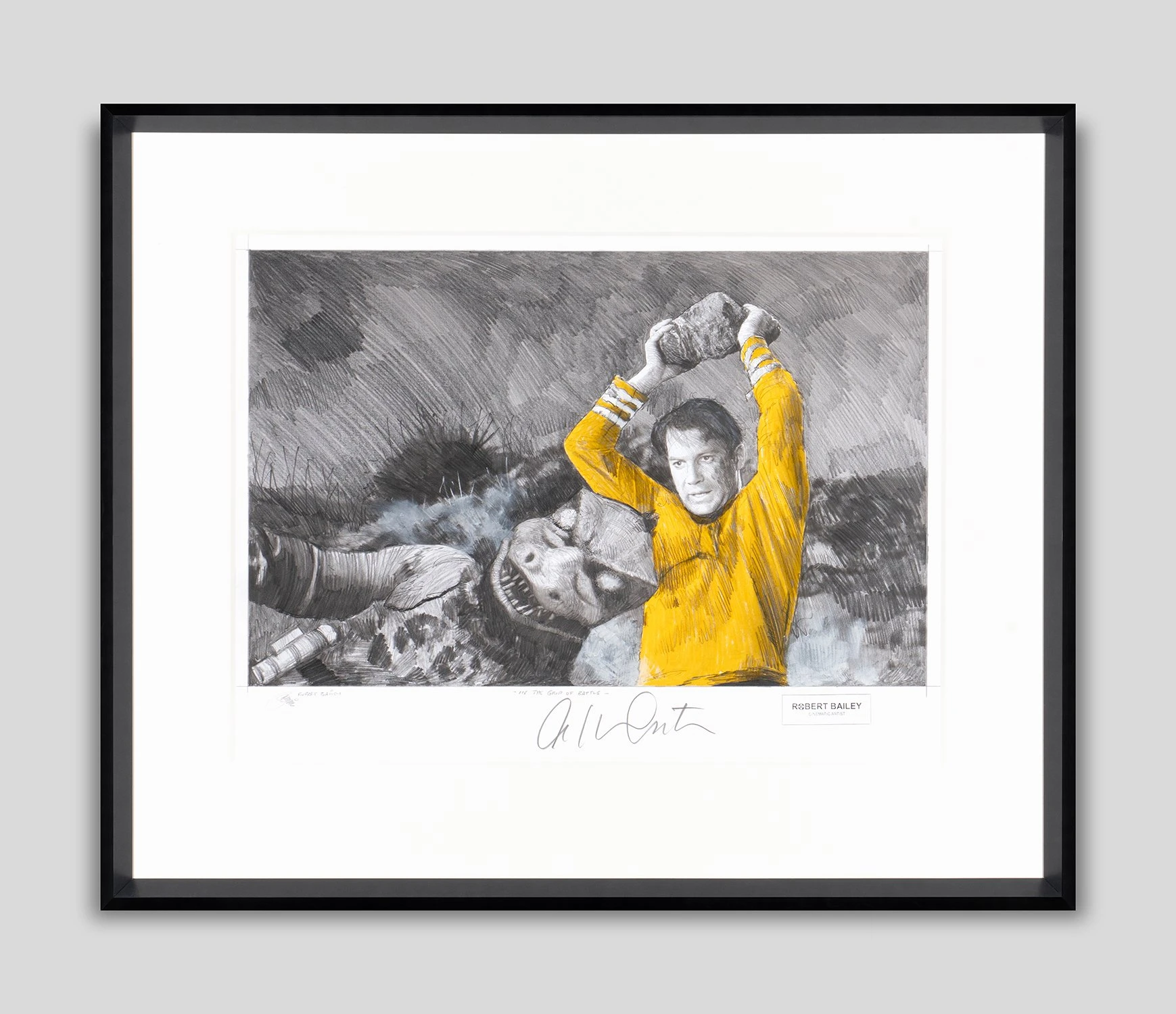 Hand-signed by William Shatner himself, who has since been into real space, this original artwork by Robert Bailey will add a touch of space-age magic into your home through a bold and bright colour palette and bespoke black wooden frame. View our full Robert Bailey portfolio .