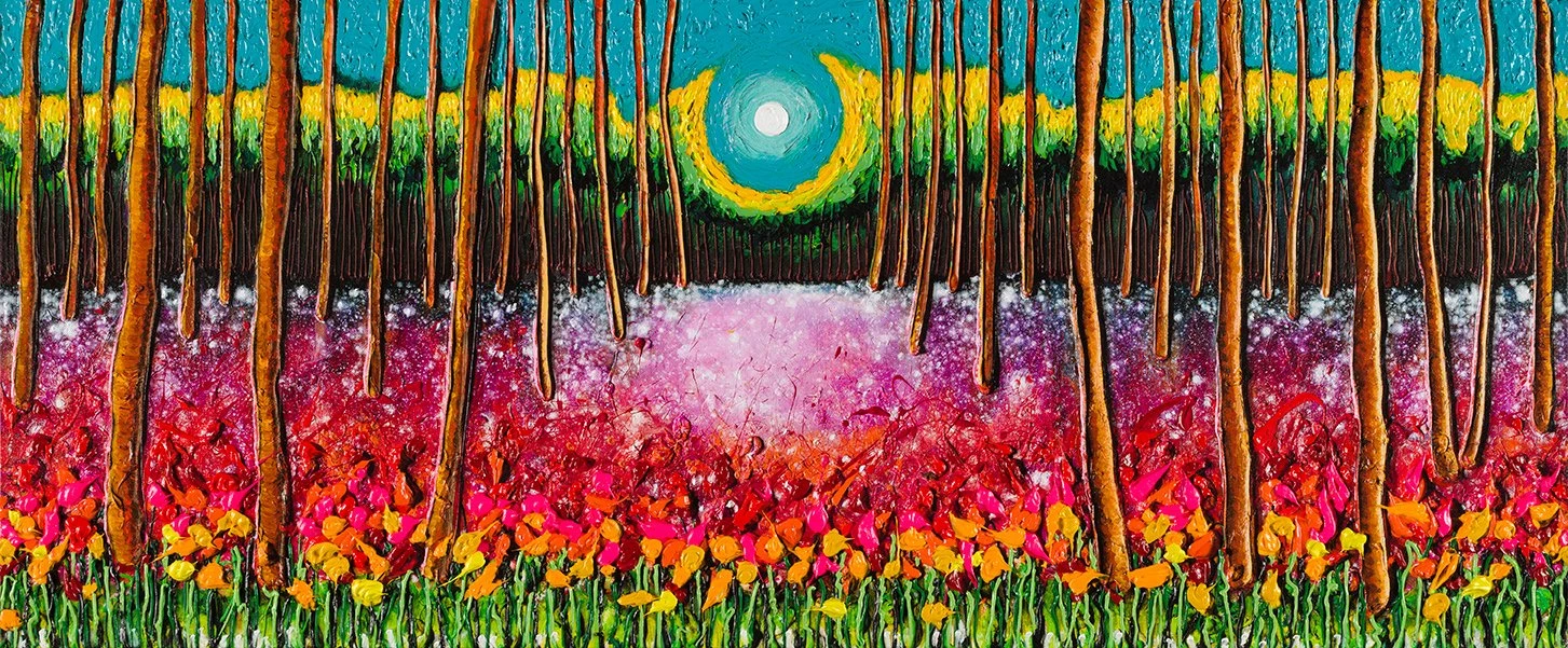 Emboldened by life as a new mother, Scarlett Raven has used bolder and brighter colours than she ever has before in this compact yet impactful artwork. She said, “Having a baby and watching him discover his senses for the first time couldnāt be any more inspiring for my paintings. I experience everything through his first times, and itās magical. Iām rediscovering my senses through him.āĀ