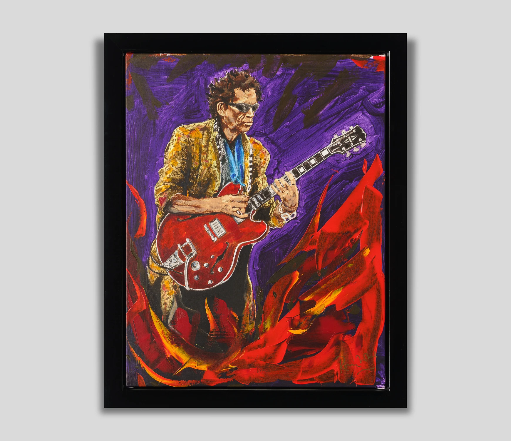 For Ronnie, who counts Damien Hirst amongst his confidants, art is a conduit for musical experience. The self-described “noise” his art evokes can be felt in each confident sweep of colour and fearless segue through artistic genres. Akin to his legendary slide guitar technique, Ronnie jumps from one medium to the next without ever missing a beat.