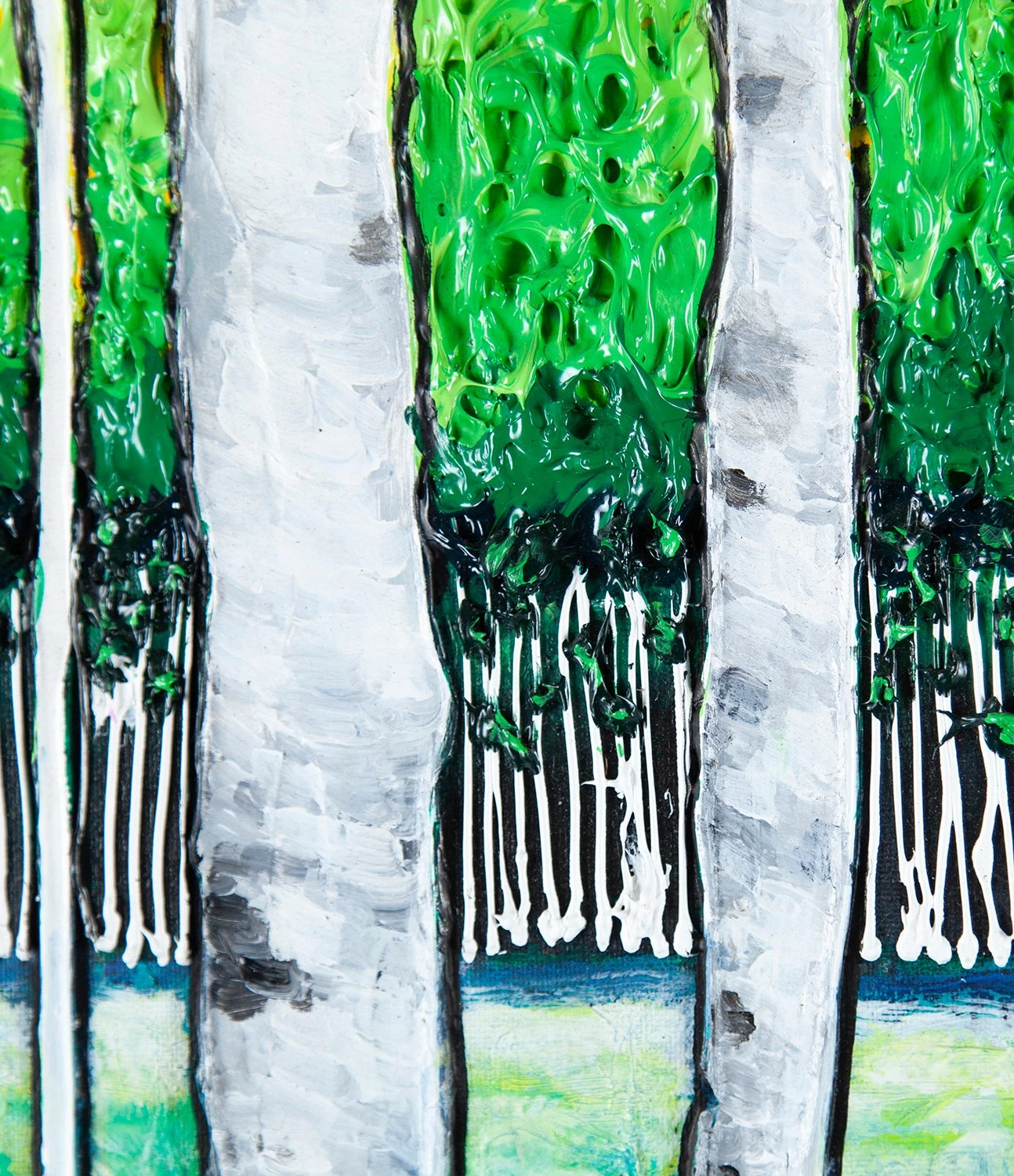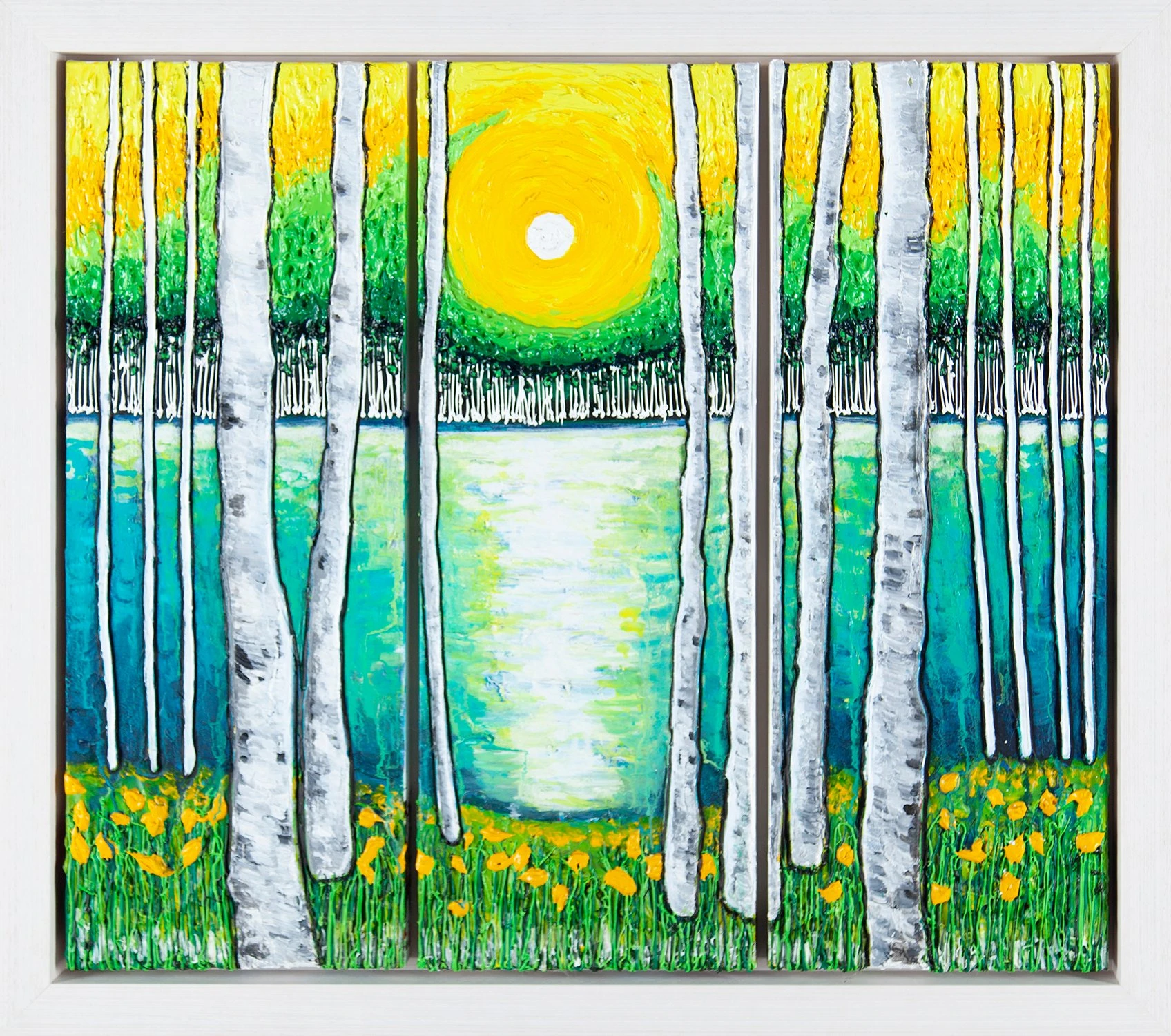 Scarlett’s incredible process also lends itself to impasto painting, invented in the 17th century by Baroque painters and later mastered by artists like Vincent Van Gogh. More recently, Scarlett has coined her own unique style where she combines the impressionistic landscapes of history with the bold black outlines of pop artists like Andy Warhol and Roy Lichenstein. The result is an expressive landscape filled dramatic emotion and movement as can be seen in this beautiful original artwork.