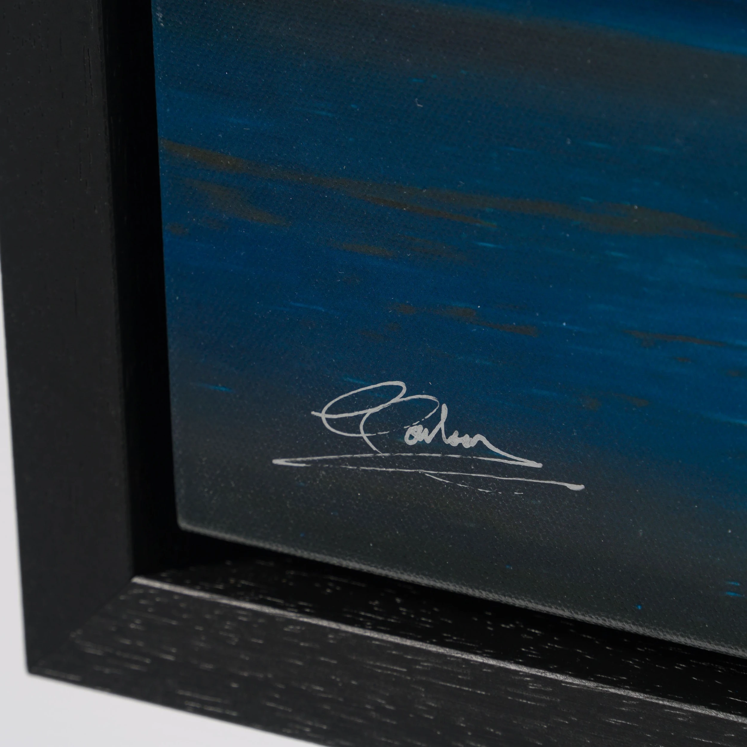In ‘Lightning Man’ the main narrative point is the cracks of lightning, making the painted figure an expressive detail added to the composition and creating the perfect ethereal and dreamlike atmosphere. This evocative painting illustrates the power of nature. The lightning emerges from a dream like quality colour palette with deep purple and blue clouds, adding a beautiful texture and depth to the piece. Placed in opposite directions deliberately, the lightning dancing across the sky shaped to be a human figure echoes the character walking on the shoreline to represent their unawareness of each other.