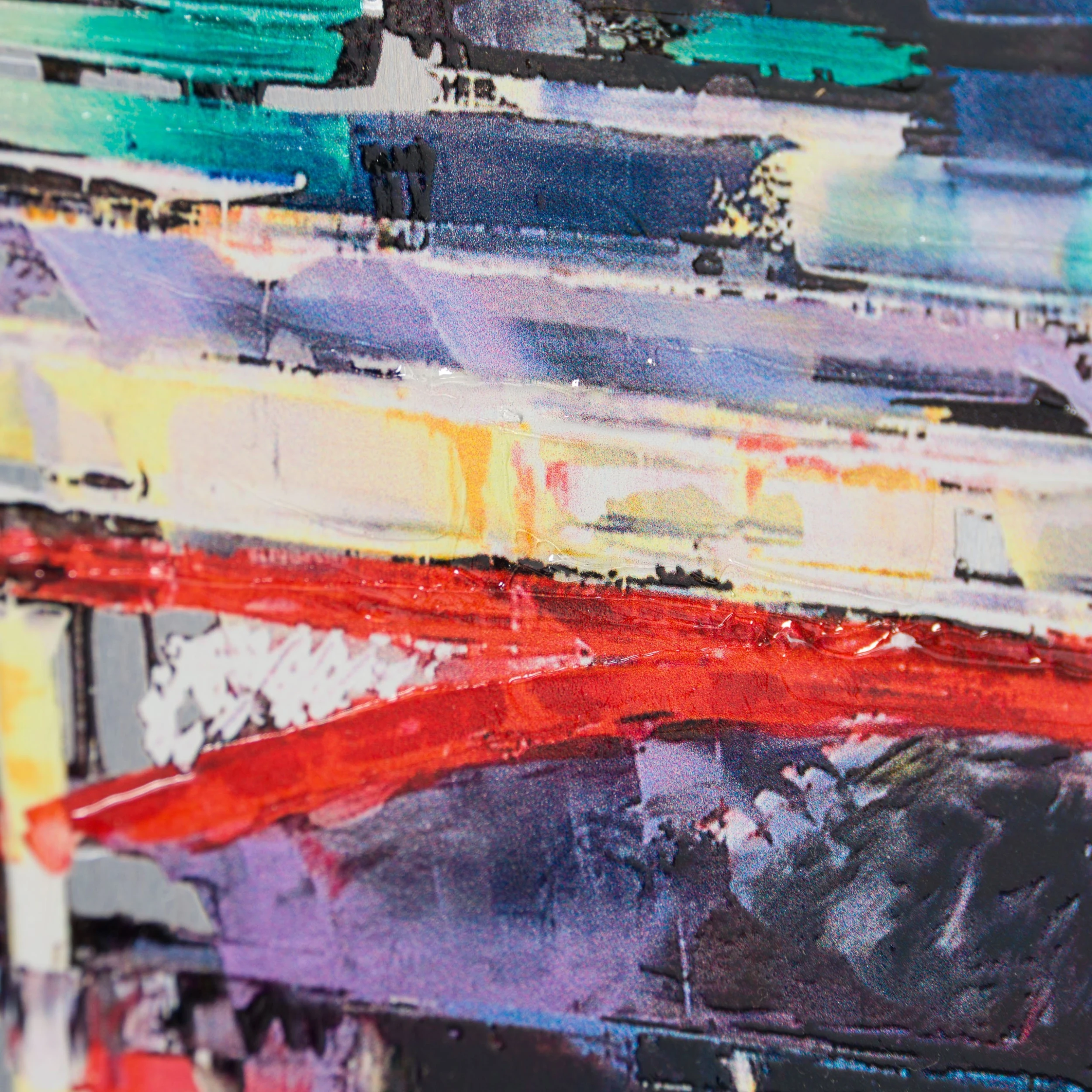 This piece is Hand Embellished Triple Strike Flatbed Print on Aluminium, which best showcases the texture of the different layers of paint used. This piece can also be purchased in a .