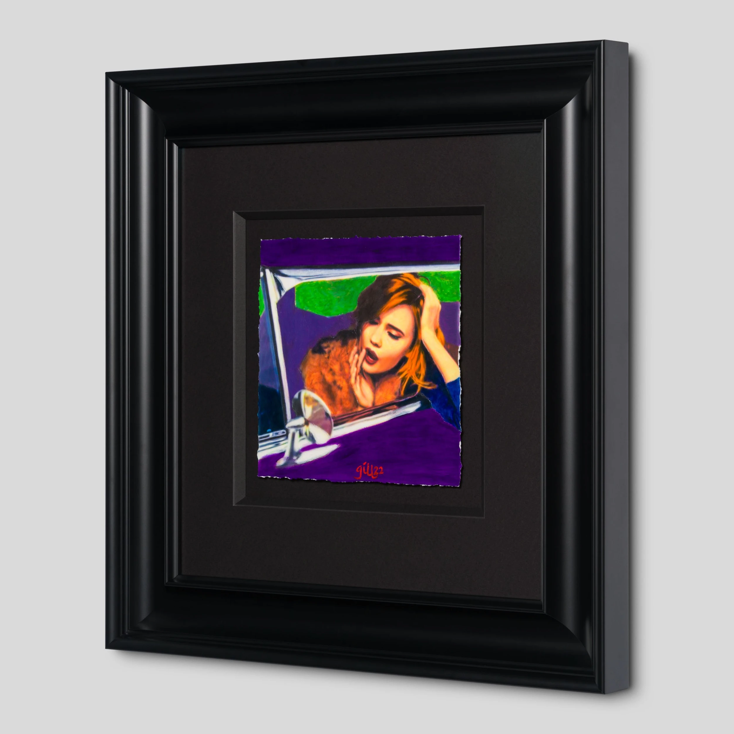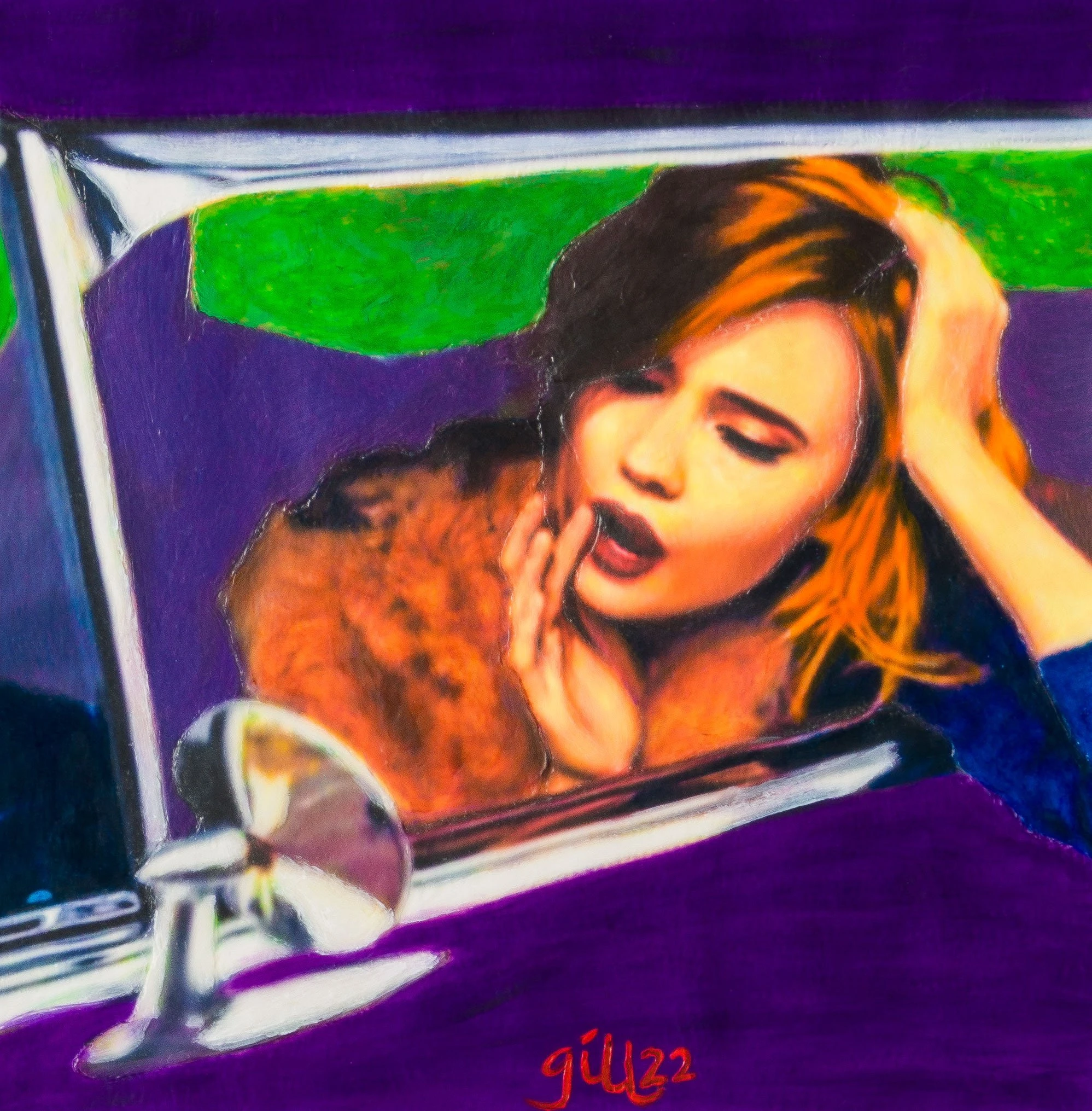 One of Pop Art’s hallmarks is its obsession with popular culture, and Gill’s Women in Cars series is firmly rooted in this. He began making the works in the 1960’s, when American magazines LIFE and TIME began printing paparazzi shots of film stars getting out of their cars. Women in Cars could offer something the magazines couldn’t – colour – and when the pieces began appearing in galleries, they were the epitome of cool modernity, and gave the public a chance to see celebrity in a new light. One of the earliest versions of the series, ‘Laughing Woman in car and Close Up’ was purchased by and exhibited in MoMa between works by Picasso and Odilon Redon. In the years 2020 to 2022, almost sixty years after his first works, at the age of over 85 years, acrylic paintings and studies are created which show the “Women In Cars” manifested in all their colourfulness and timeless presence. These acrylic originals and studies are modern embodiments of an idea that was ahead of its time, anticipating the omnipresence of social media and the struggle to protect a personal and private space of existing. These modern pieces are steeped in the history of the pop art movement and bring a fresh and exciting insight into the workings of one of the last living pioneers of the subject. artwork from this collection .