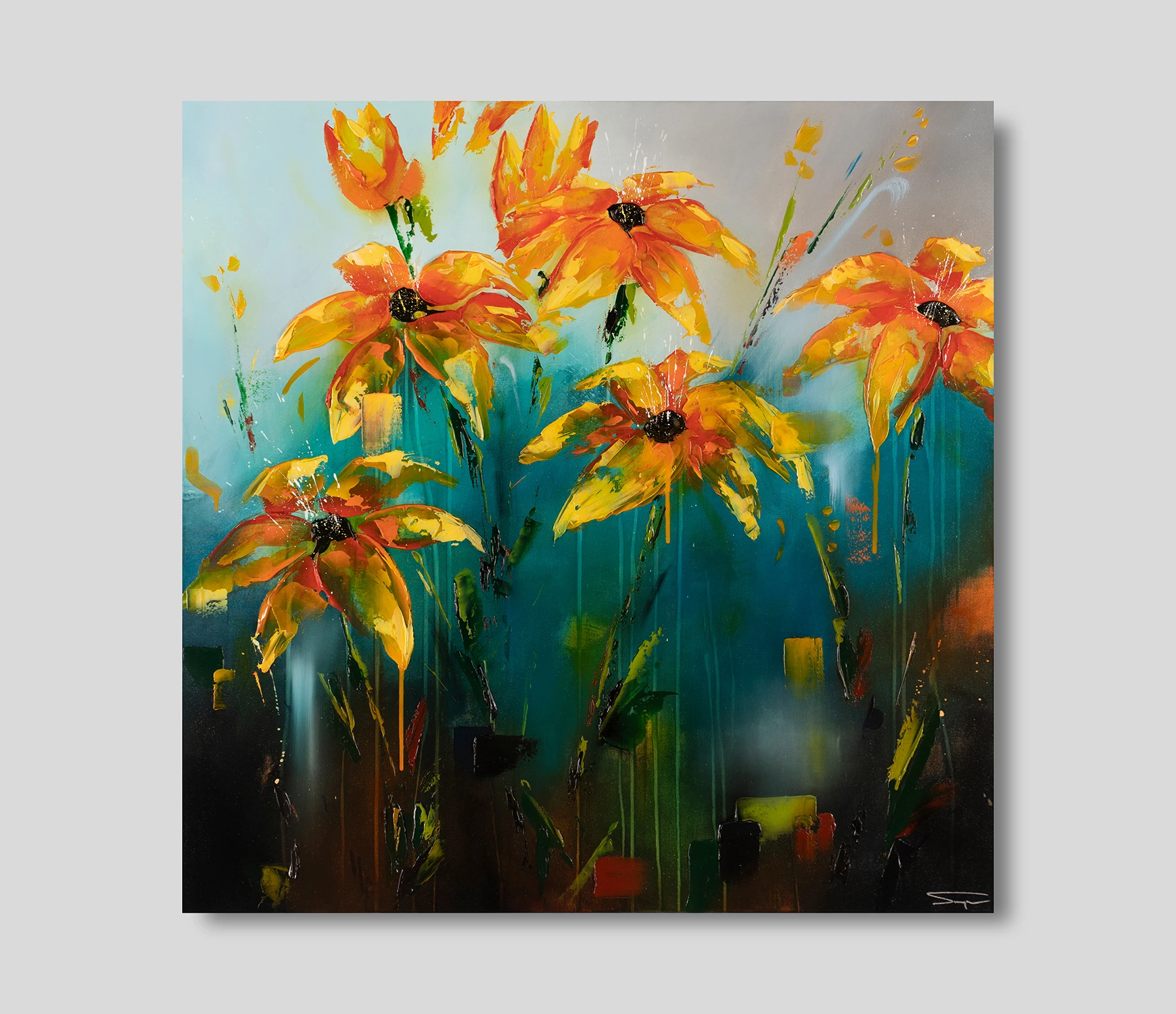 Full of bold colour, heavy texture, and abstract brush strokes, this wonderful original artwork is from Stephen Simpson’s Opus collection. Cheerful, romantic, and uplifting, this stunning artwork is also a contemporary take on one of the oldest genres of art history!