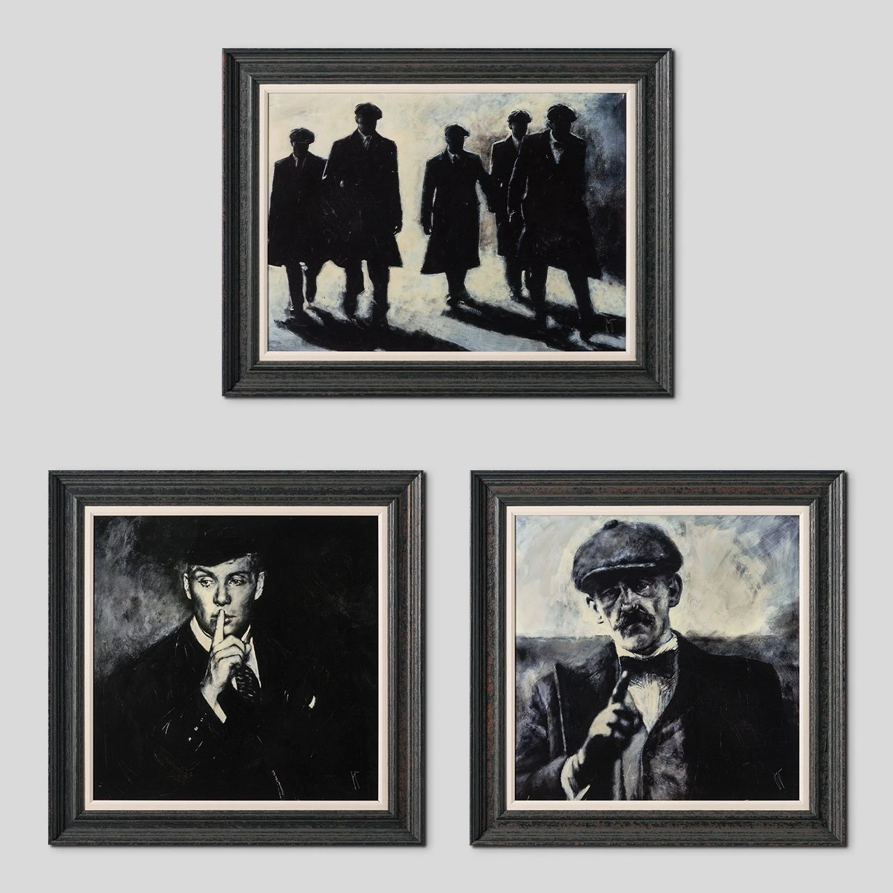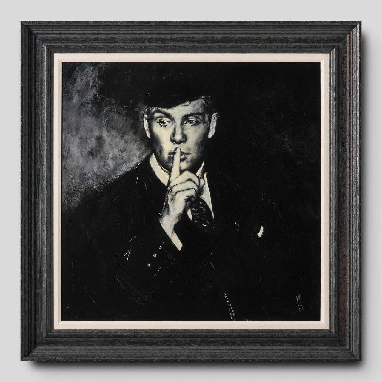 Using conflicting tones of cream white, black and grey to create a highly atmospheric artwork with an essence of realism capturing a monochrome scene. This piece takes inspiration from the Birmingham based gang The Peaky Blinders, bringing us a hand varnished giclee on canvas board.