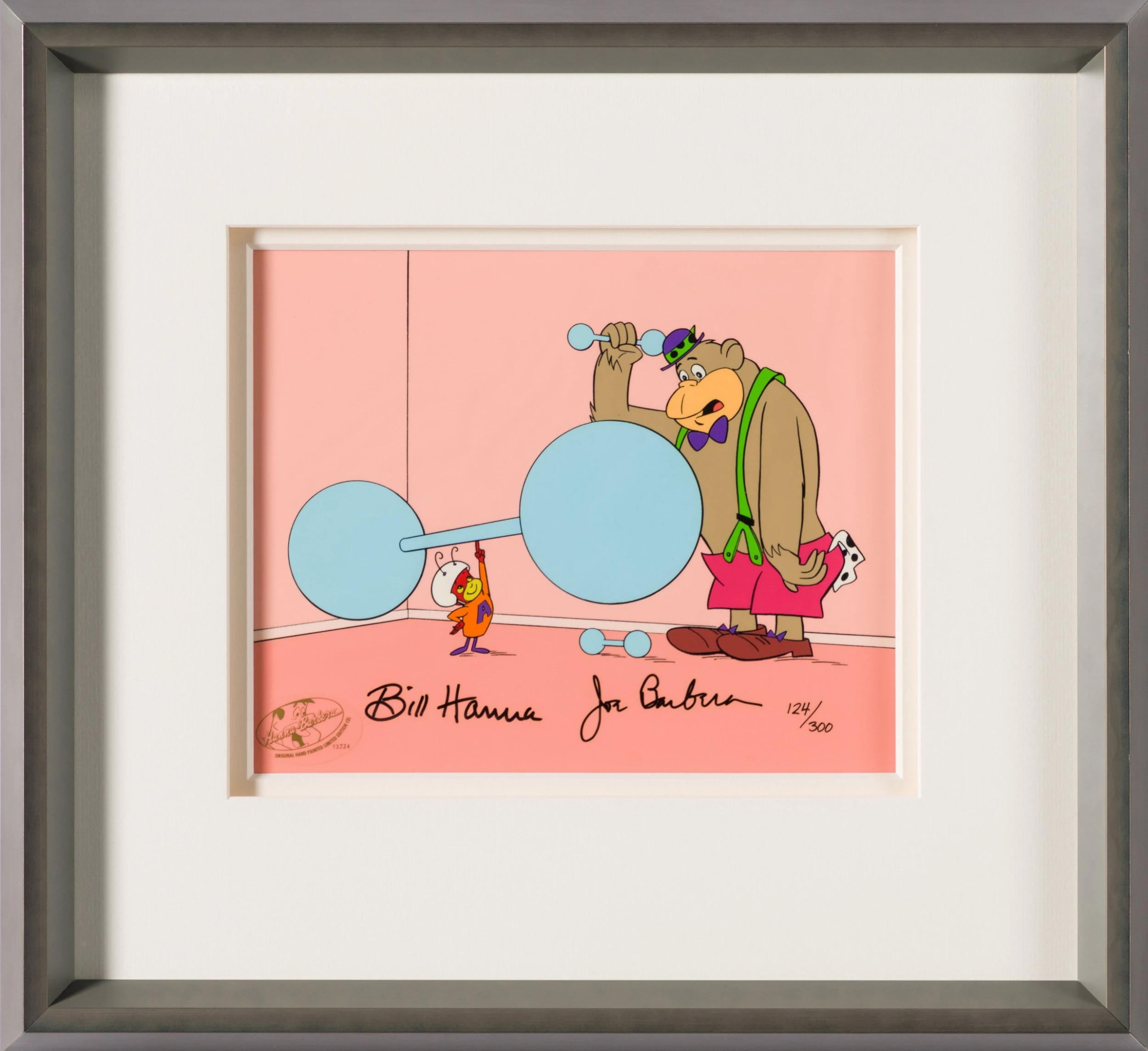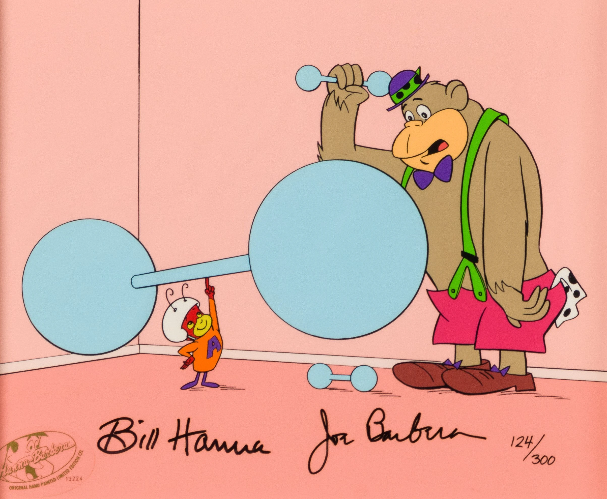 A hand-painted, limited edition animation cel, hand-signed by William Hanna and Joseph Barbera.