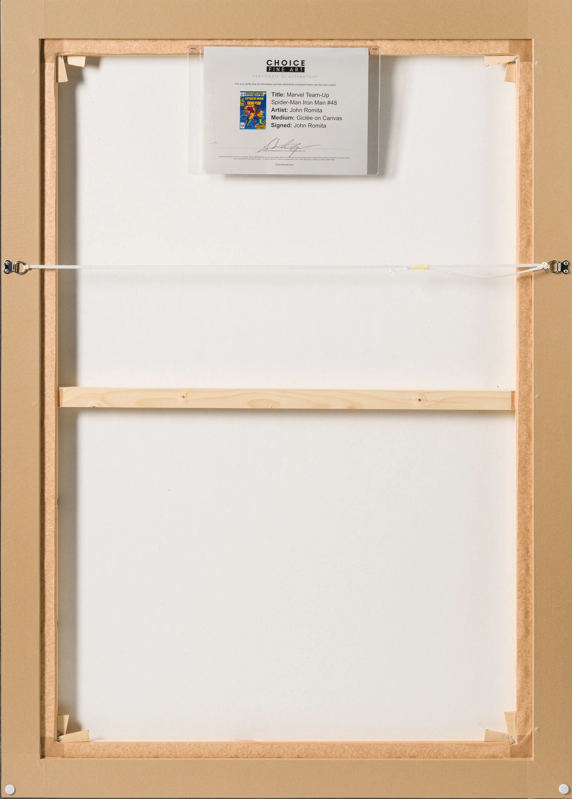 Published in 1976, “Marvel Team-Up Spider-Man Iron Man #48” is a Marvel Superhero unique edition of the issue’s cover, hand-signed by John Romita Sr.