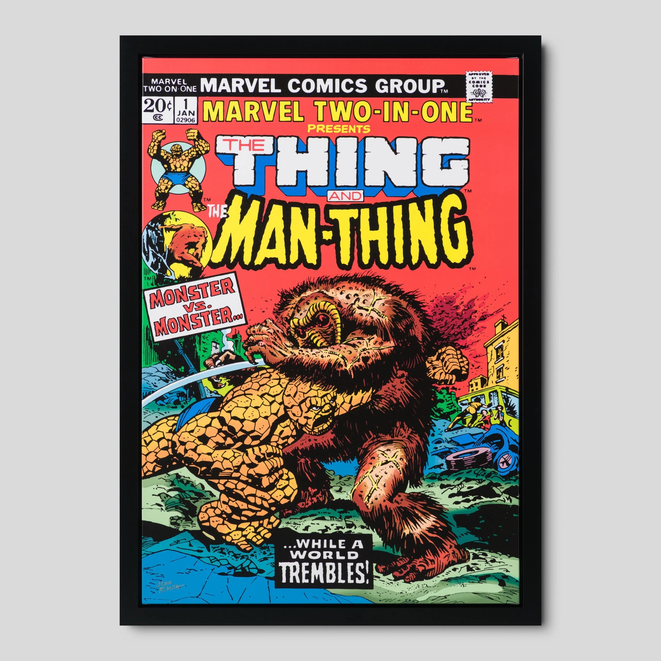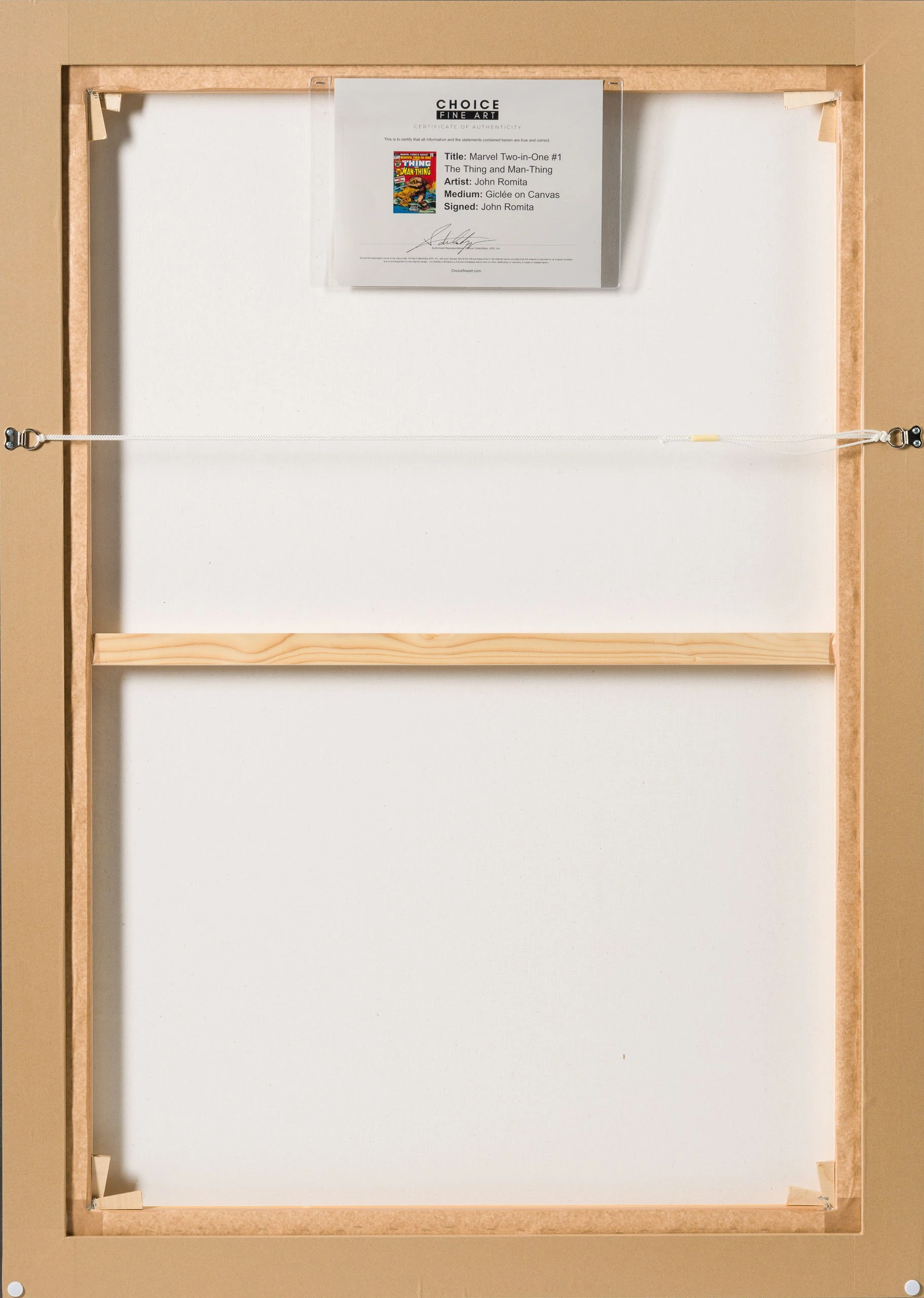Published in 1973, “Marvel Two-In-One #1 The Thing and Man-Thing” is a Marvel Superhero unique edition of the issue’s cover, hand-signed by John Romita Sr.